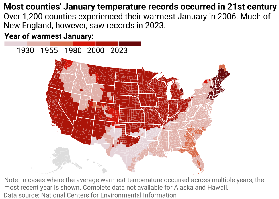 This frosty January comes after nearly 14% of counties experienced their warmest December on record. For another 20%, it was the second-warmest December they've experienced.
