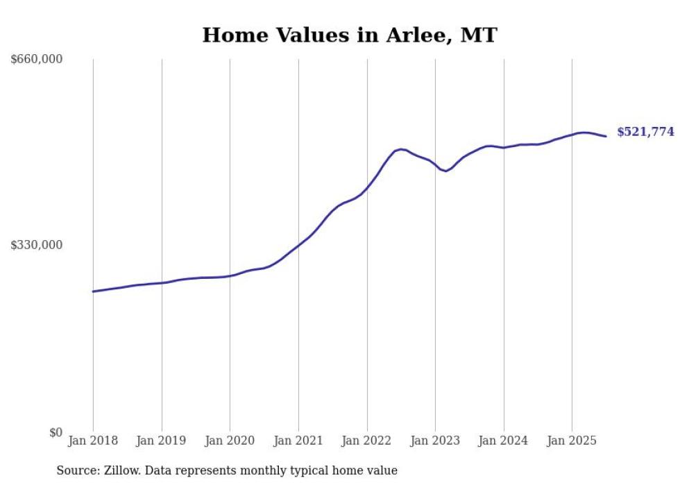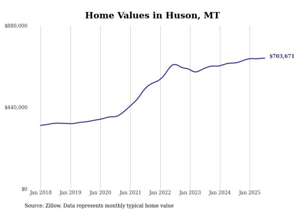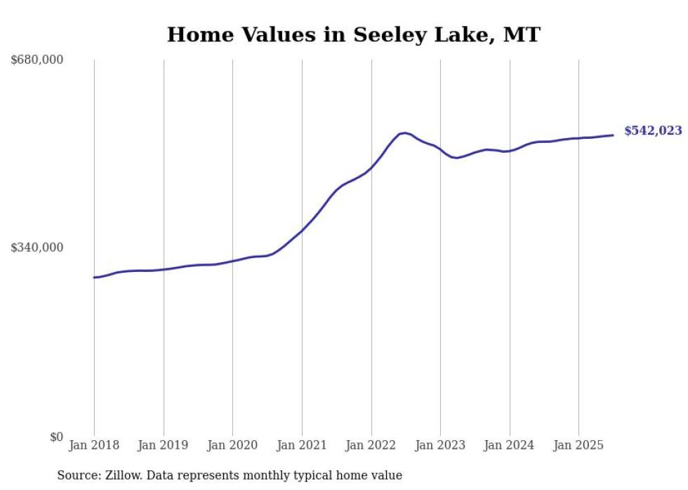 Stacker compiled a list of cities with the most expensive homes in the Missoula metro area using data from Zillow. Charts show the monthly typical home value since January 2018. All 11 cities and towns with data available were included in the list.