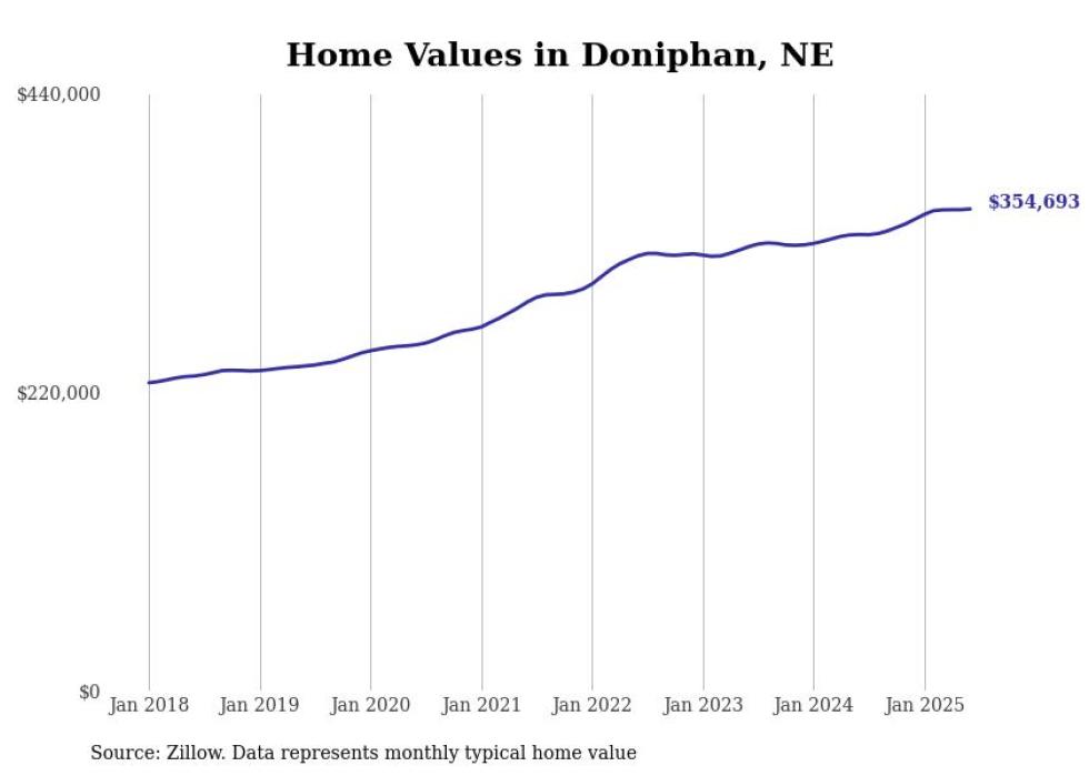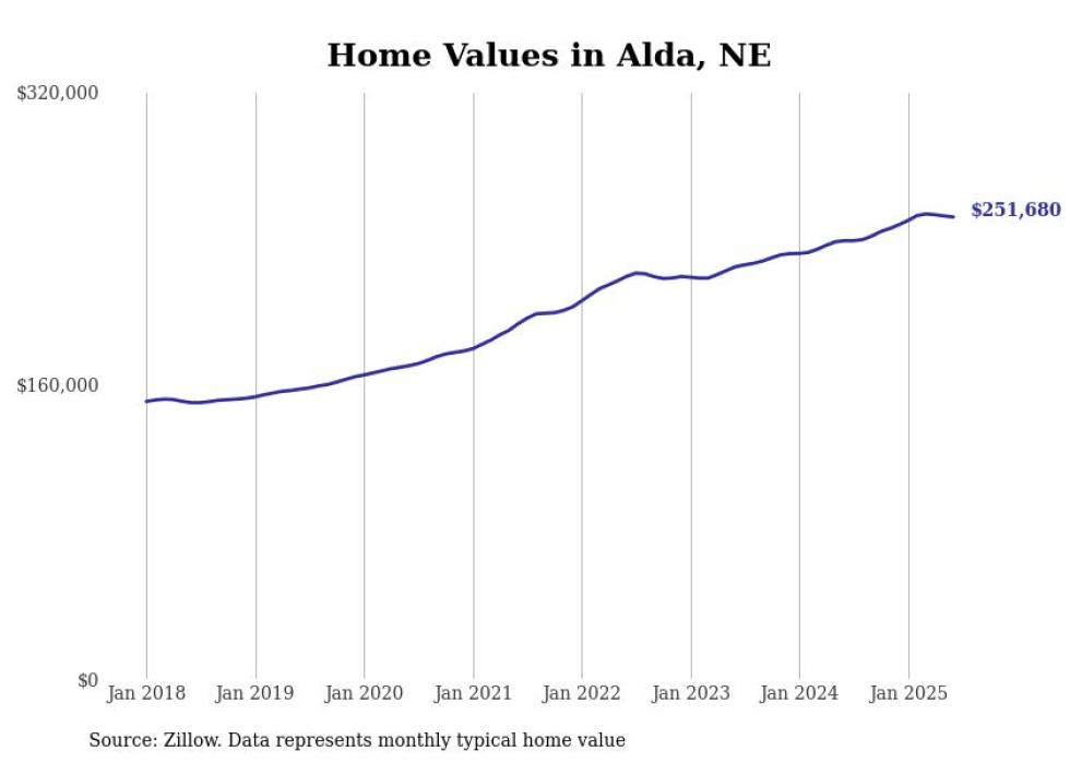 Stacker compiled a list of cities with the most expensive homes in the Grand Island, NE metro area using data from Zillow. Charts show the monthly typical home value since January 2018.
