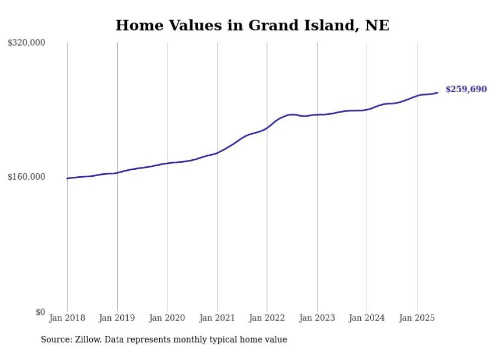Cities with the fastest-growing home prices in the Grand Island metro area