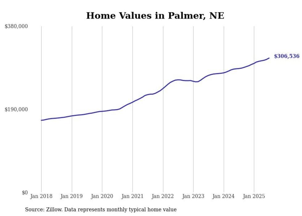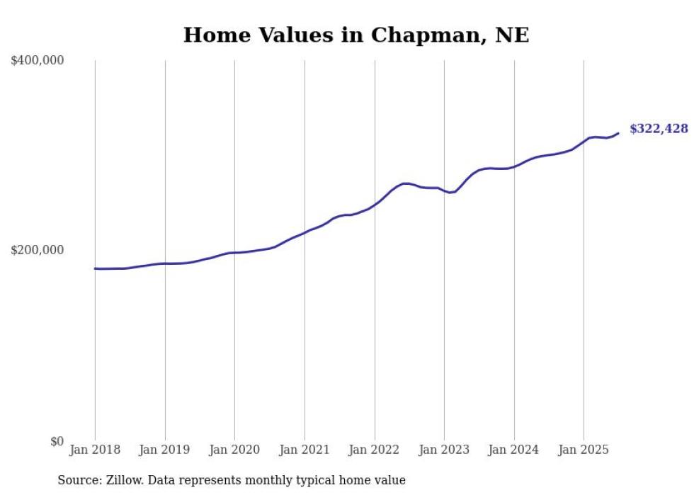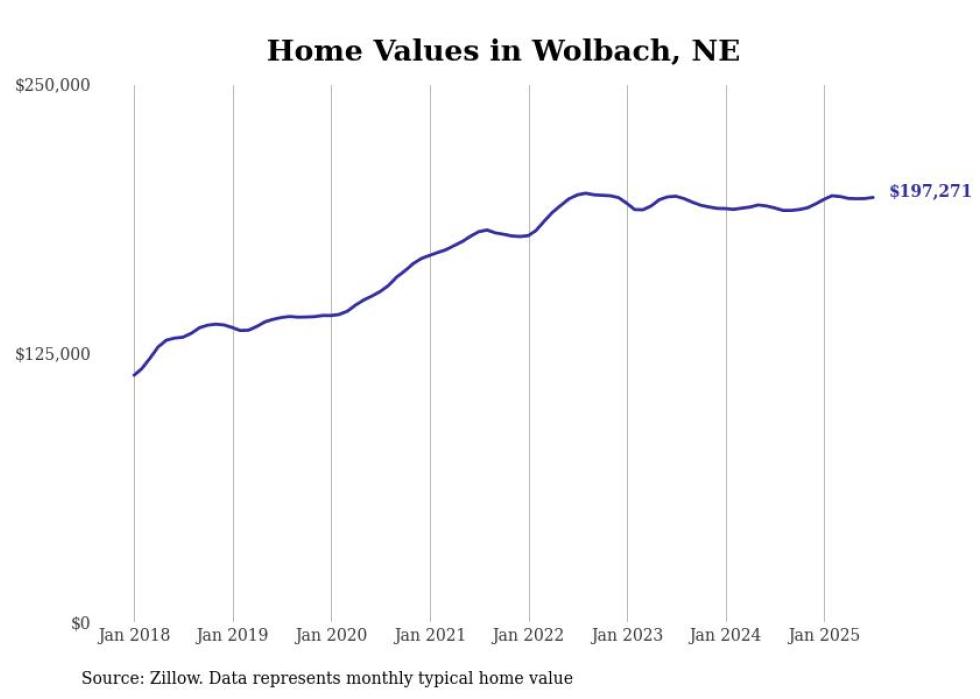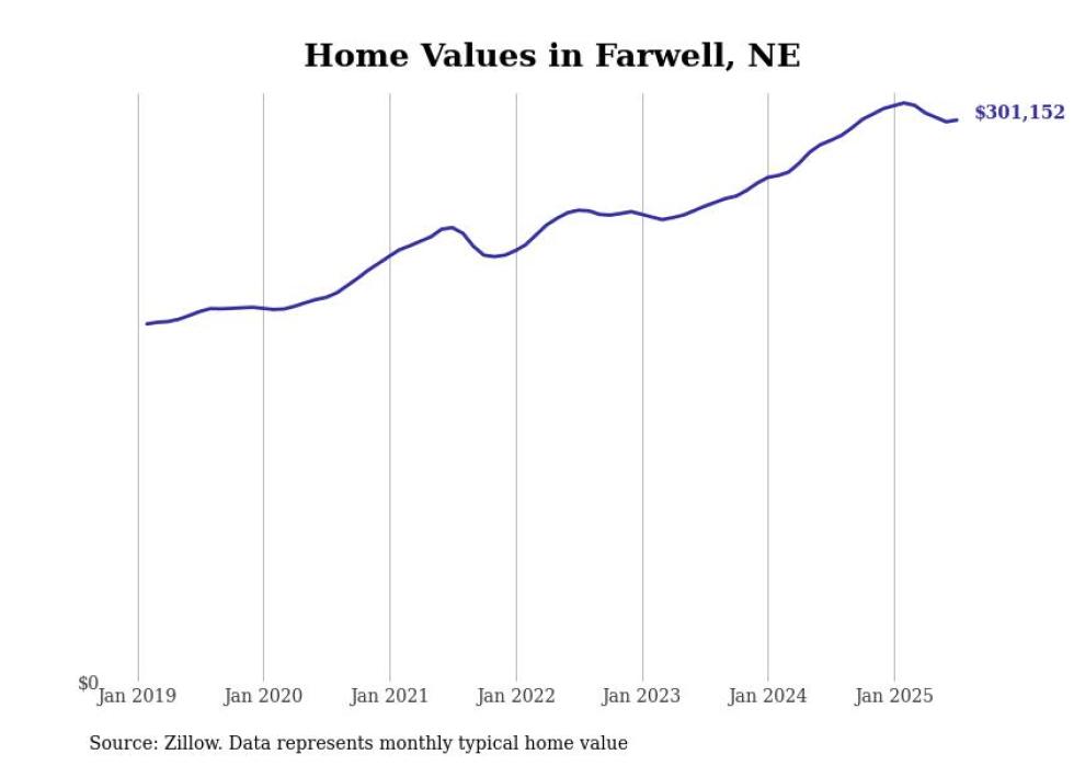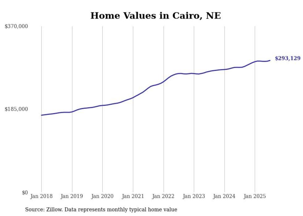 Stacker compiled a list of cities with the most expensive homes in the Grand Island metro area using data from Zillow. Charts show the monthly typical home value since January 2018. All 14 cities and towns with data available were included in the list.