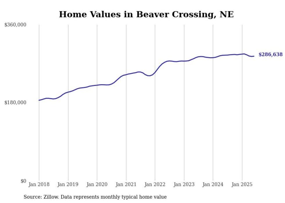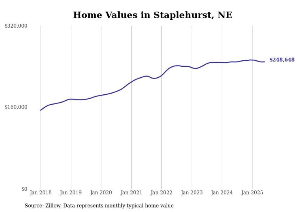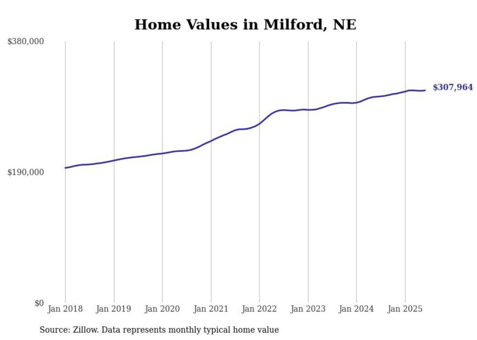 Stacker compiled a list of cities with the most expensive homes in the Lincoln, NE metro area using data from Zillow. Charts show the monthly typical home value since January 2018.