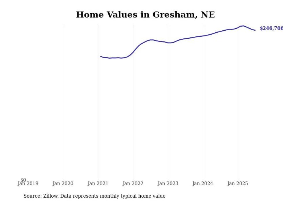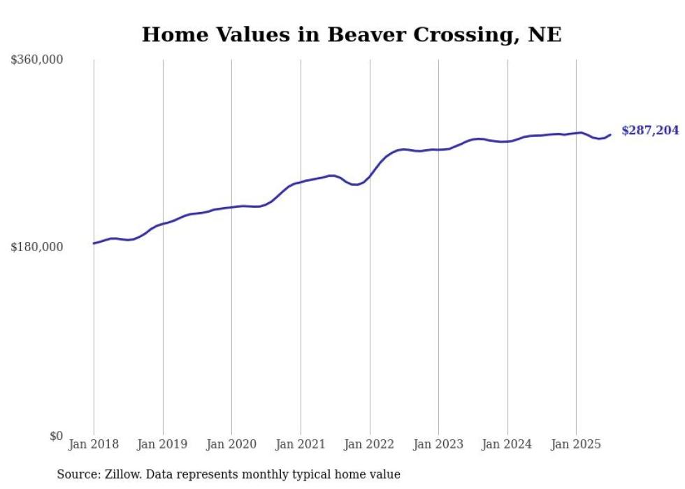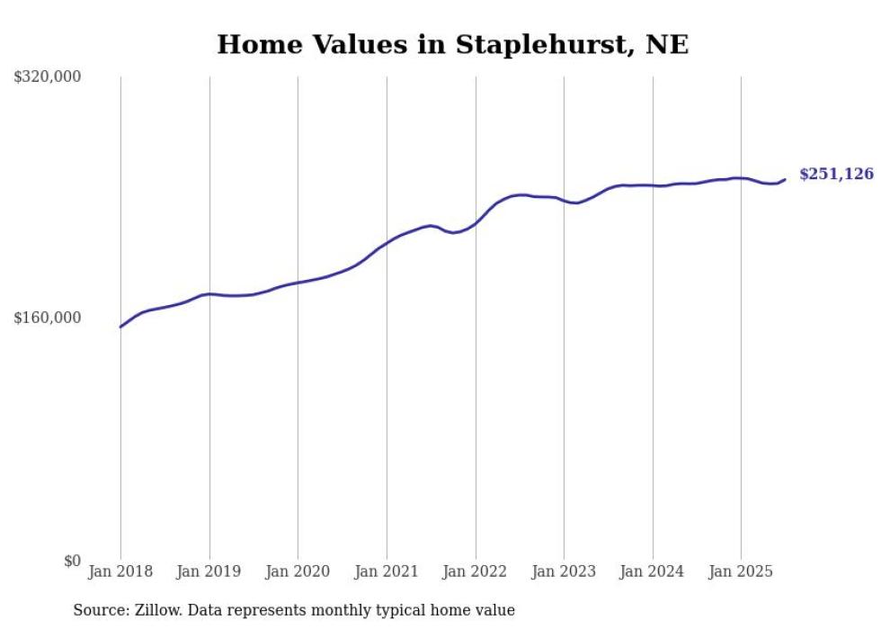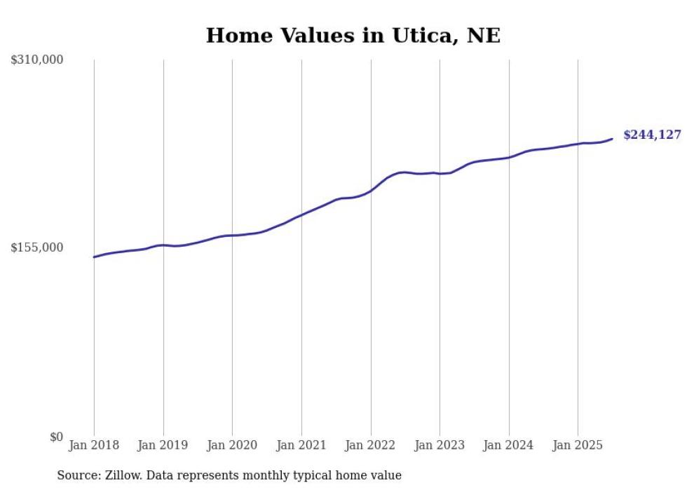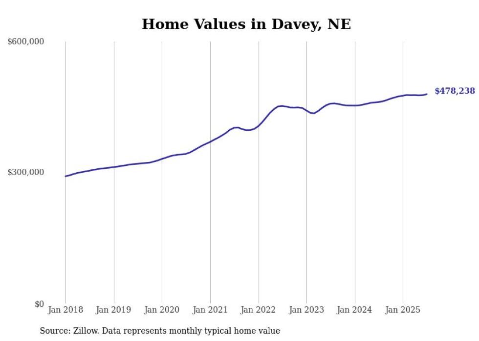 Stacker compiled a list of cities with the most expensive homes in the Lincoln metro area using data from Zillow. Charts show the monthly typical home value since January 2018. All 25 cities and towns with data available were included in the list.