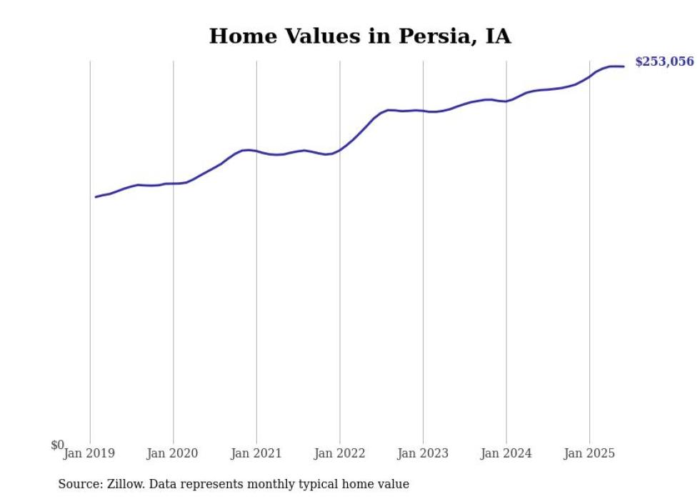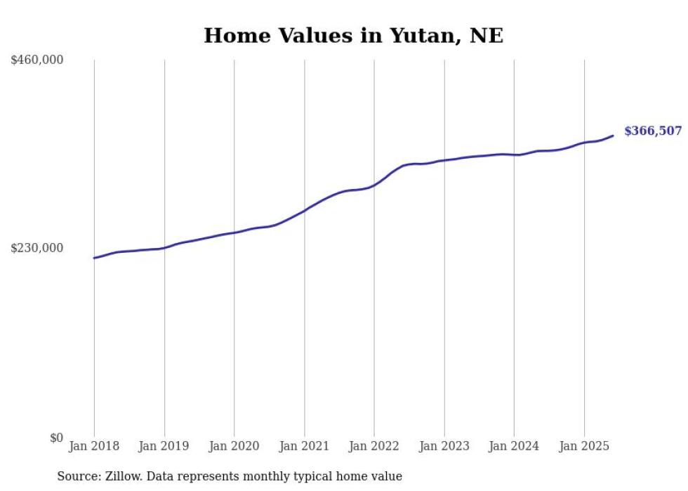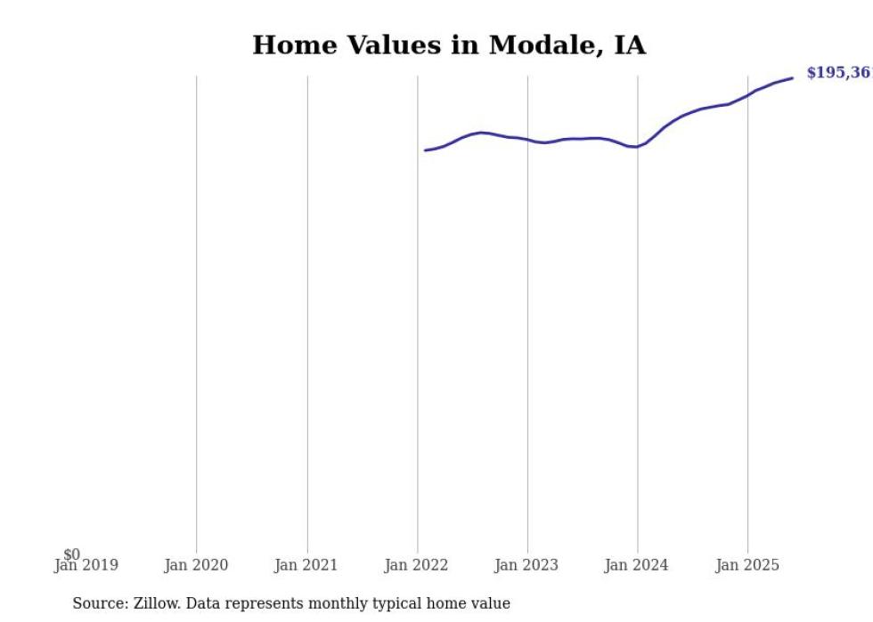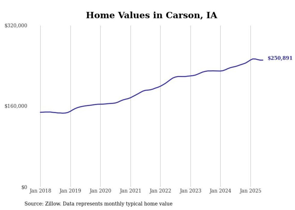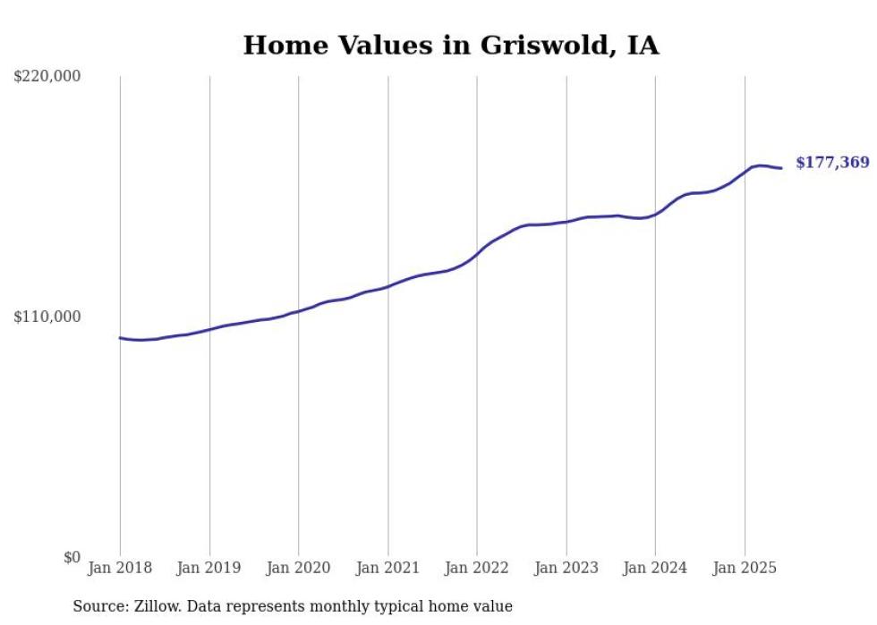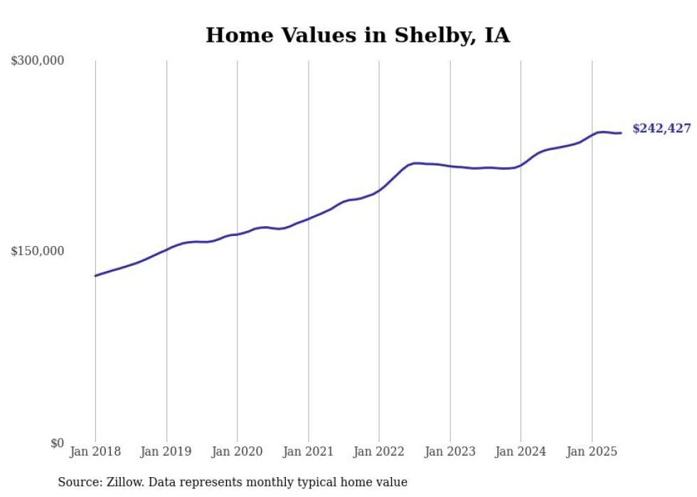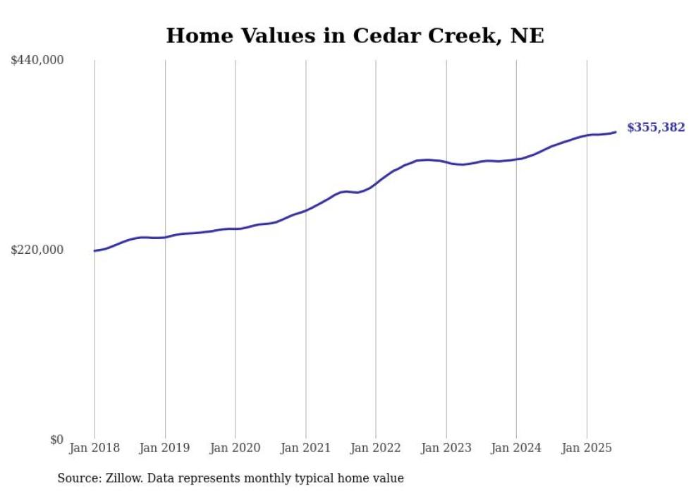 Stacker compiled a list of cities with the most expensive homes in the Omaha-Council Bluffs, NE-IA metro area using data from Zillow. Charts show the monthly typical home value since January 2018.