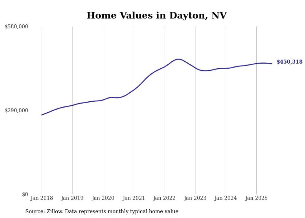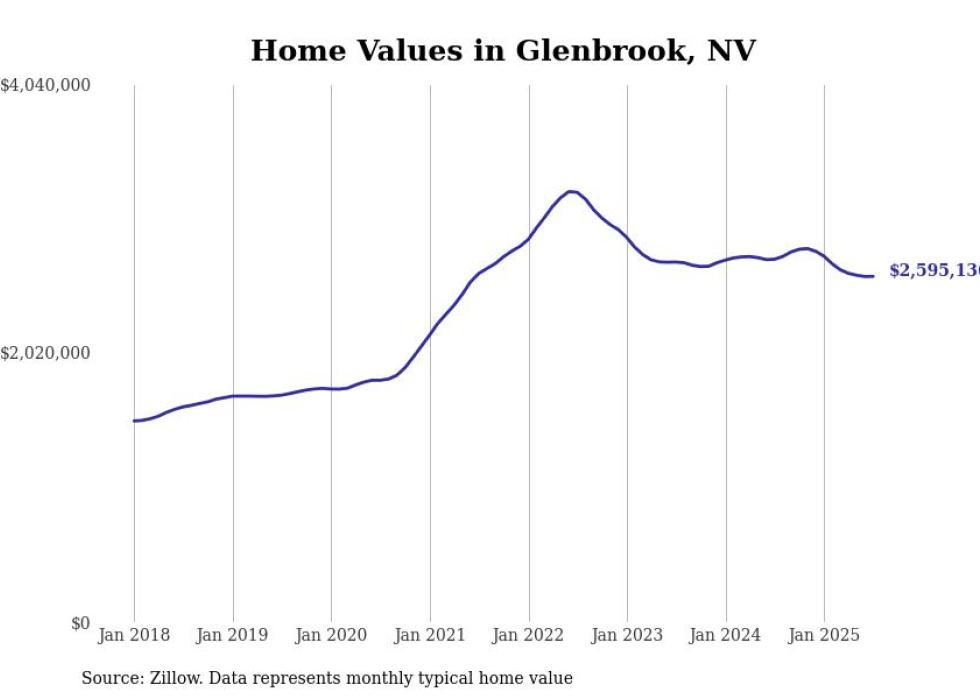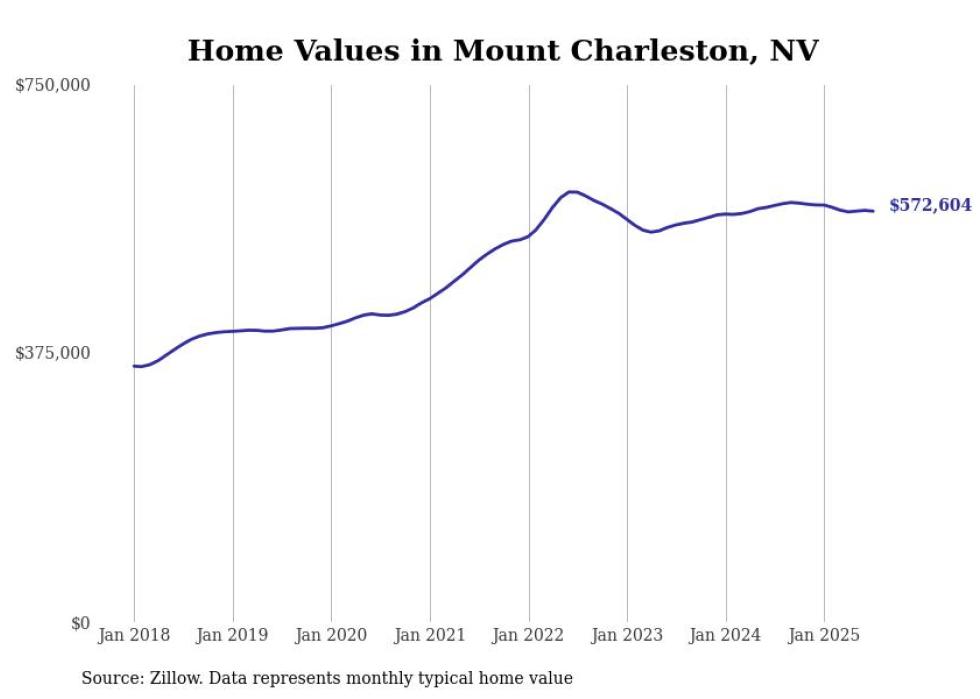 Stacker compiled a list of cities with the most expensive homes in Nevada using data from Zillow. Cities are ranked by the Zillow Home Values Index for all homes as of July 2025. The charts in this story were created automatically using Matplotlib.