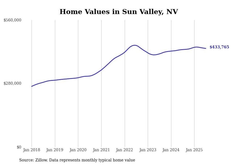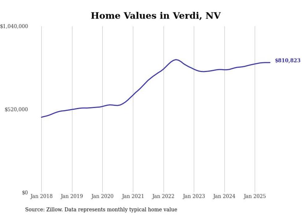 Stacker compiled a list of cities with the most expensive homes in the Reno metro area using data from Zillow. Charts show the monthly typical home value since January 2018. All 5 cities and towns with data available were included in the list.
