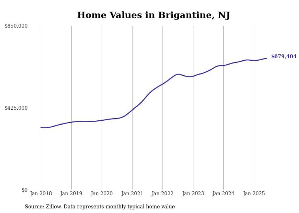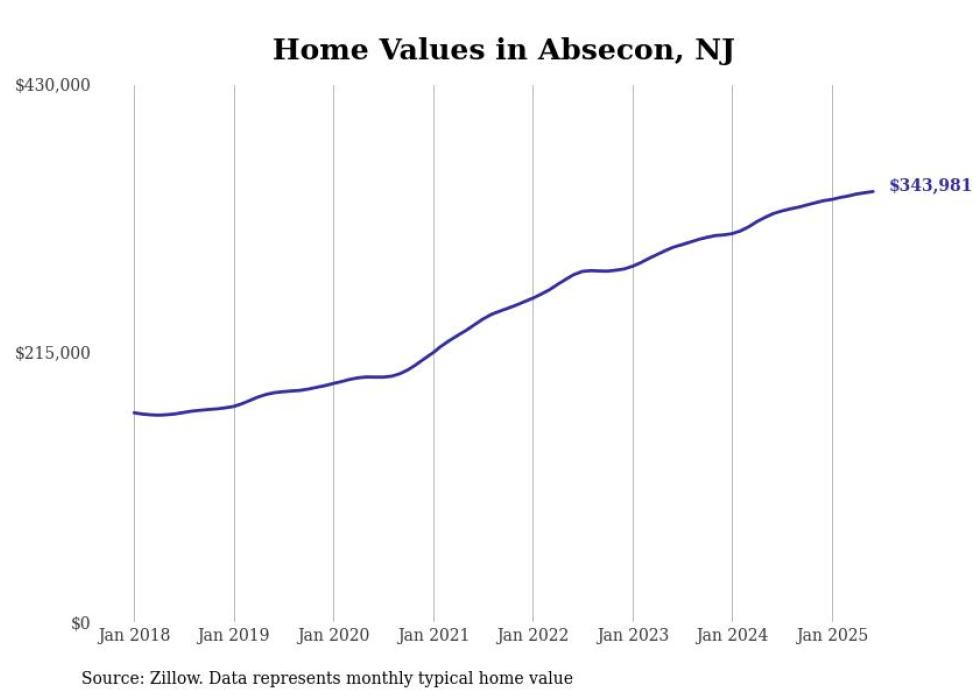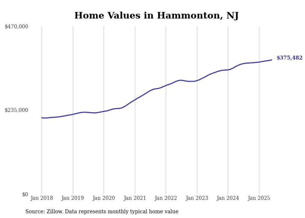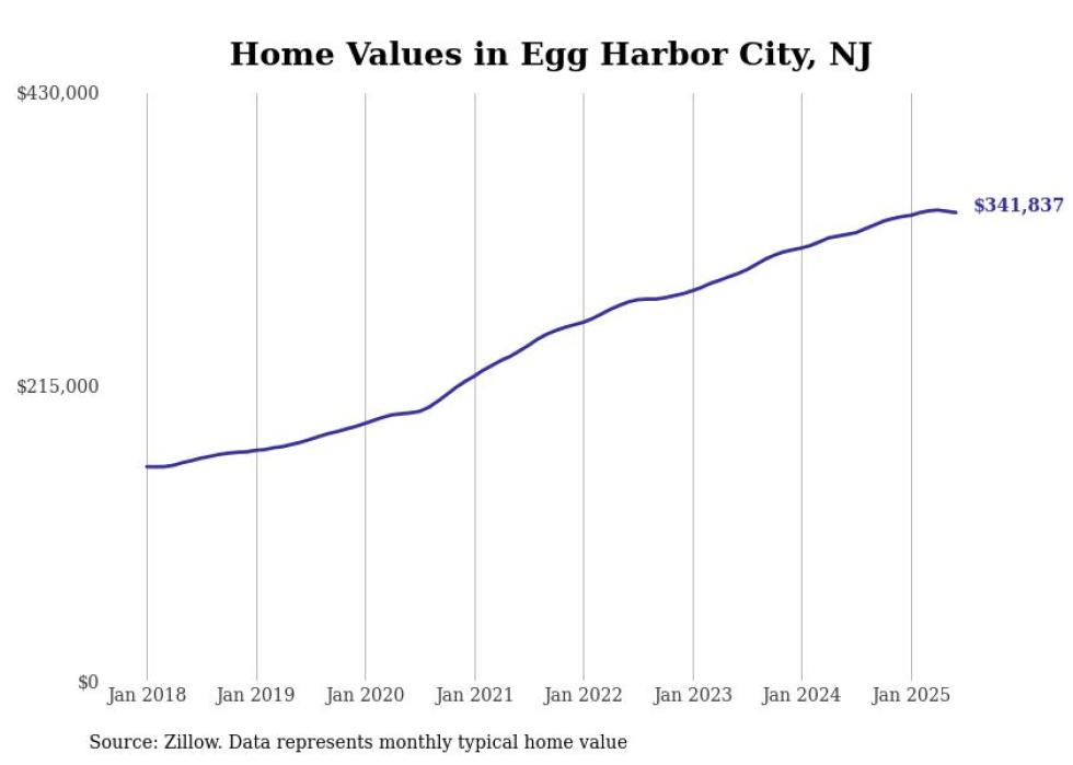 Stacker compiled a list of cities with the most expensive homes in the Atlantic City-Hammonton, NJ metro area using data from Zillow. Charts show the monthly typical home value since January 2018.