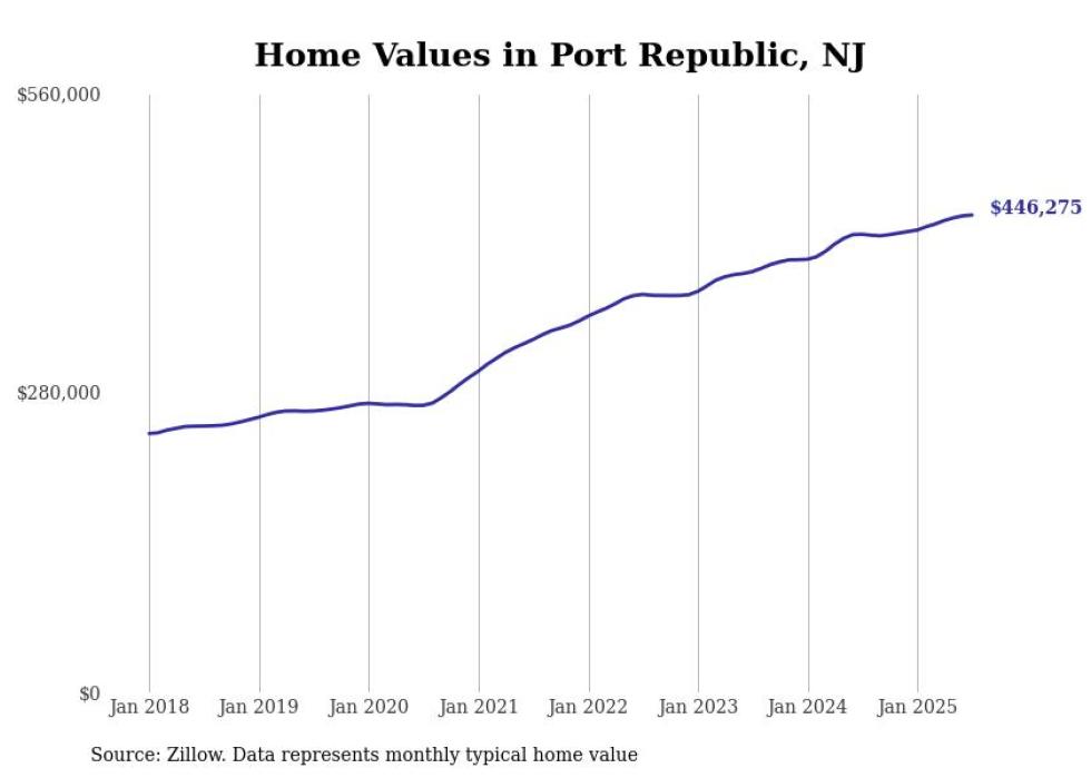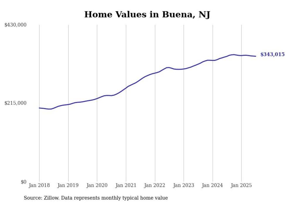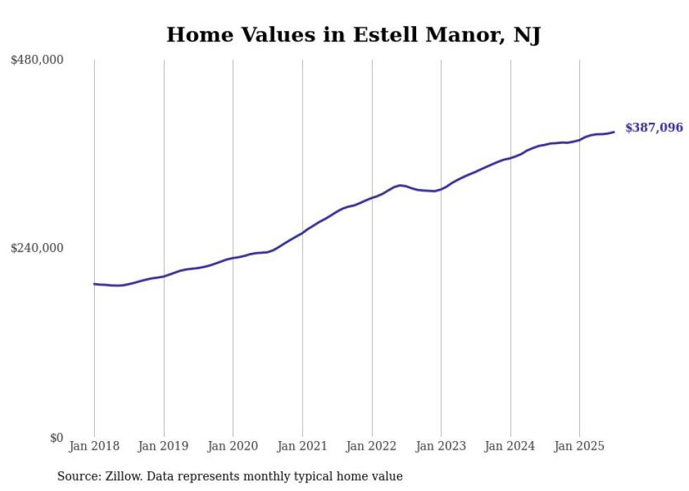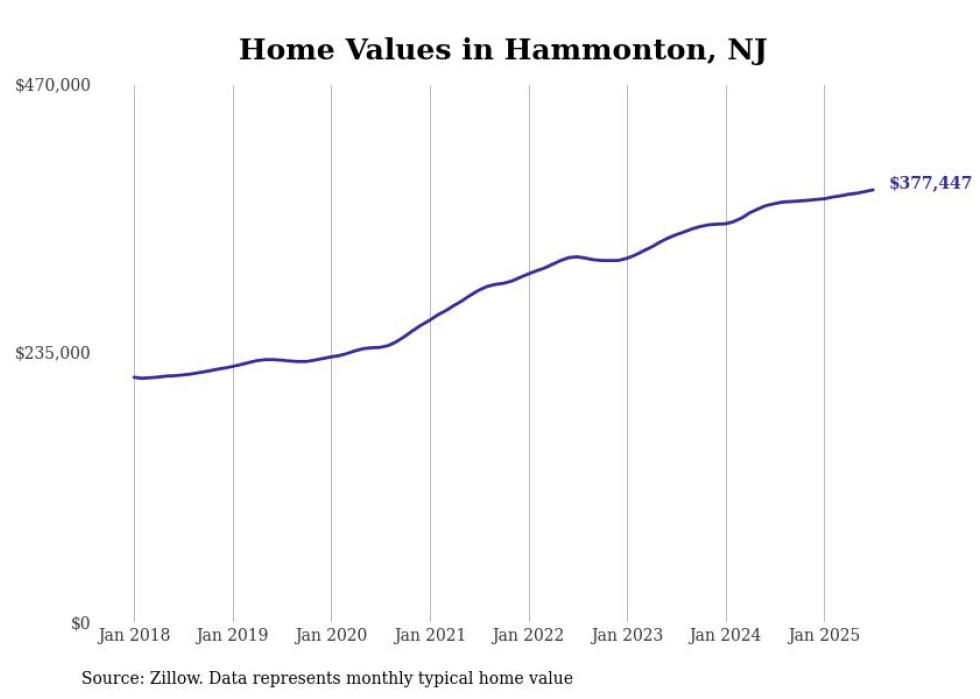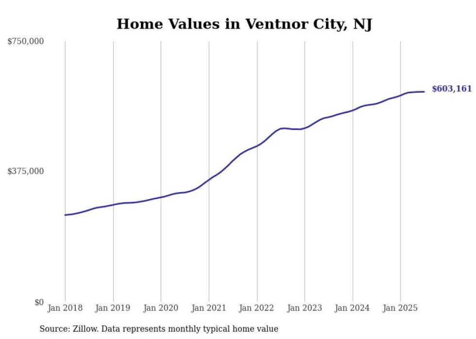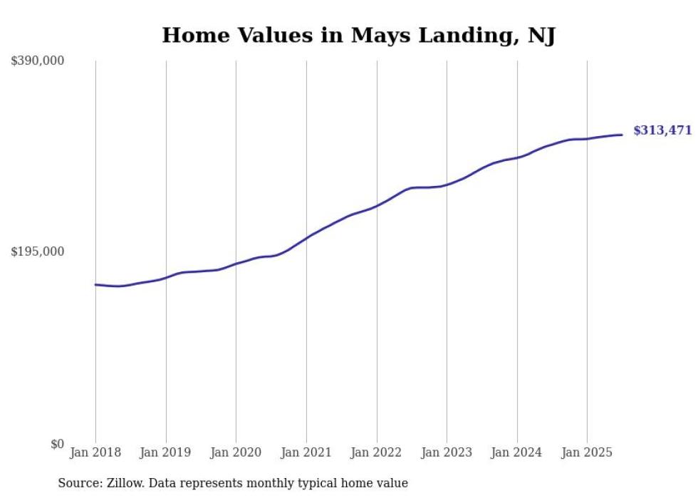 Stacker compiled a list of cities with the most expensive homes in the Atlantic City metro area using data from Zillow. Charts show the monthly typical home value since January 2018. All 18 cities and towns with data available were included in the list.