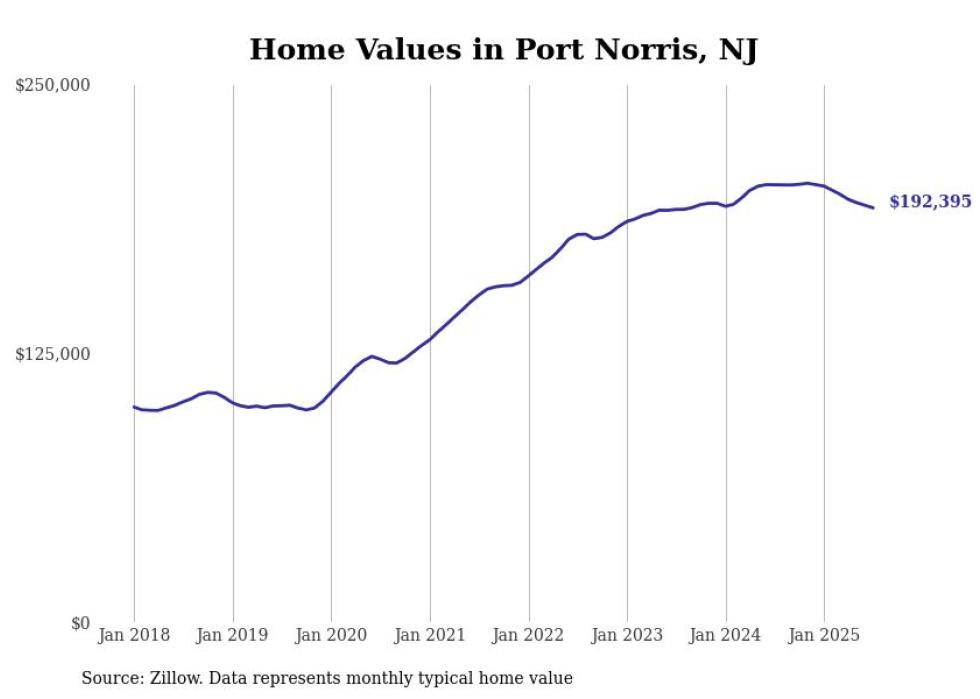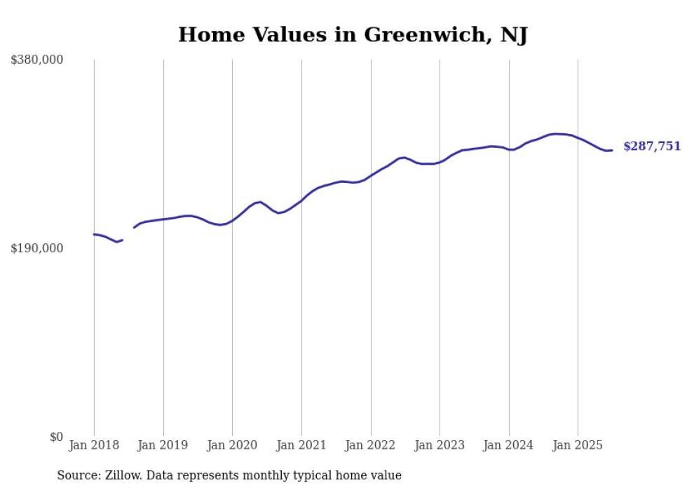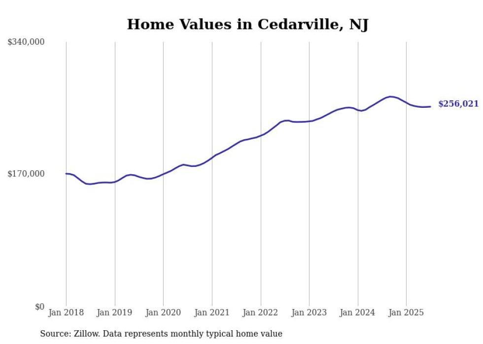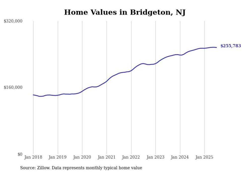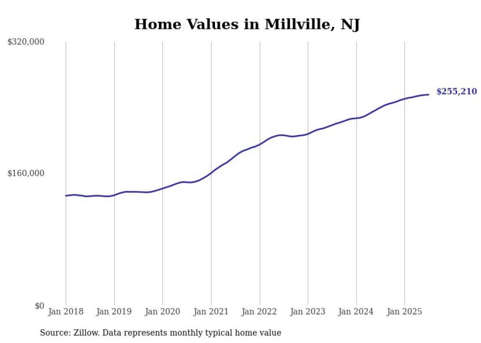 Stacker compiled a list of cities with the most expensive homes in the Vineland metro area using data from Zillow. Charts show the monthly typical home value since January 2018. All 7 cities and towns with data available were included in the list.