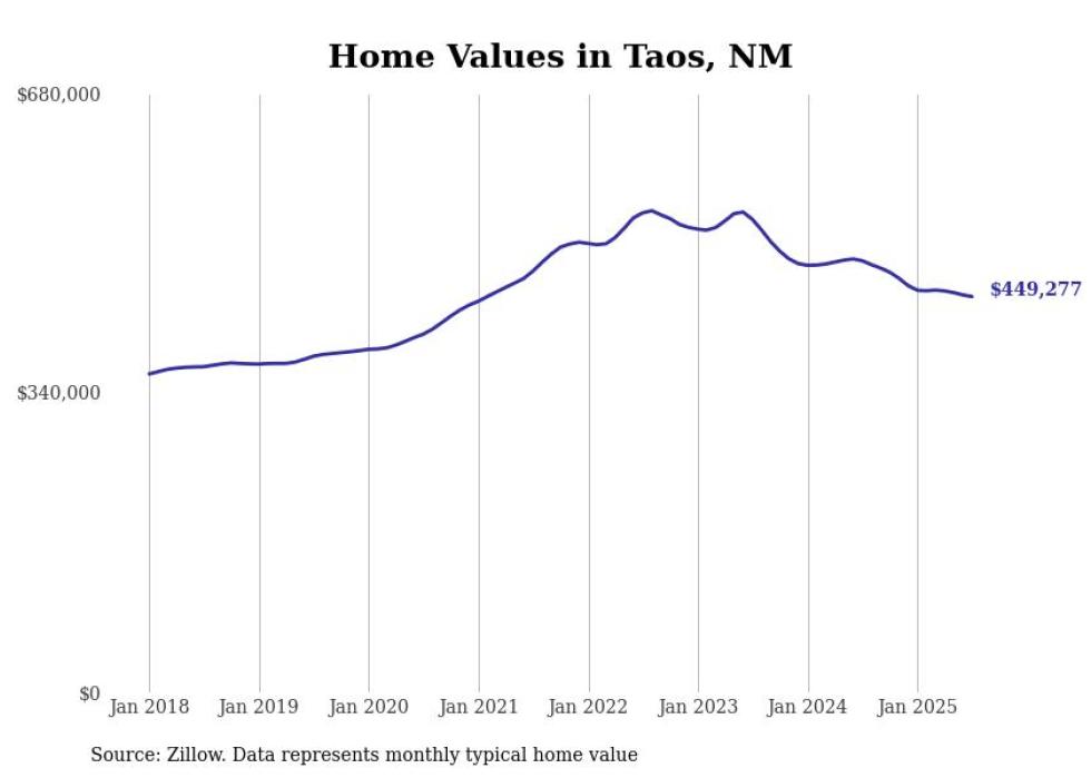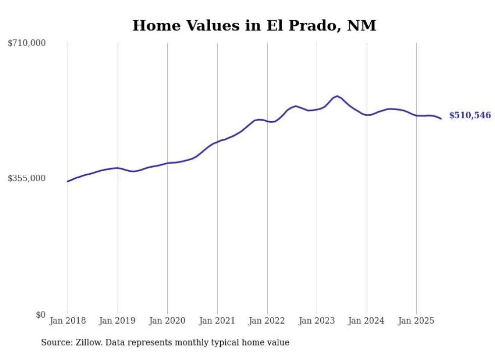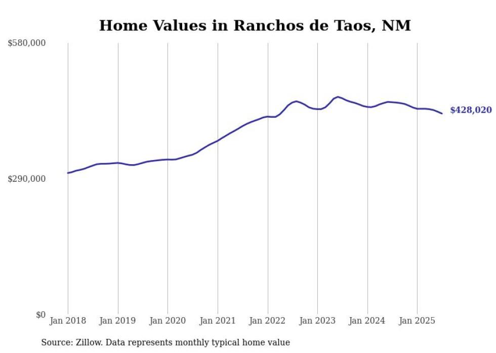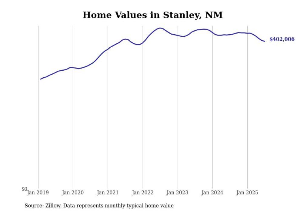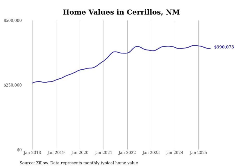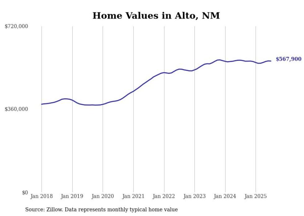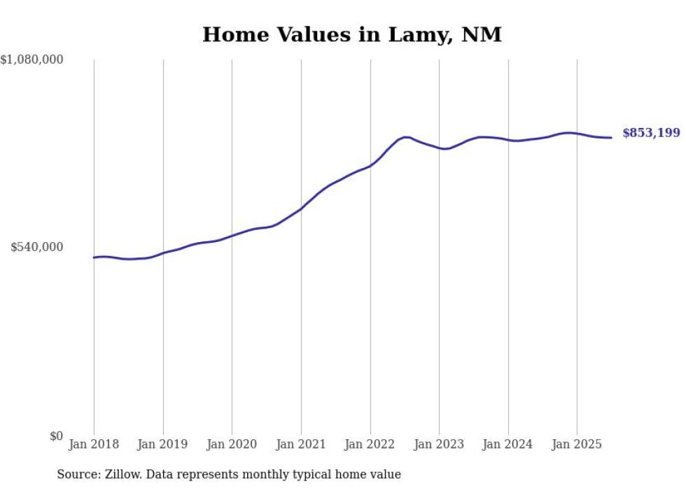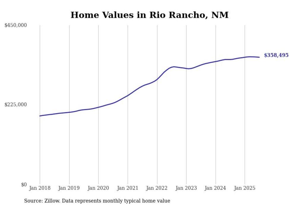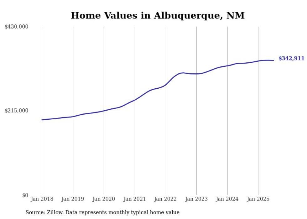 Stacker compiled a list of cities with the most expensive homes in New Mexico using data from Zillow. Cities are ranked by the Zillow Home Values Index for all homes as of July 2025. The charts in this story were created automatically using Matplotlib.