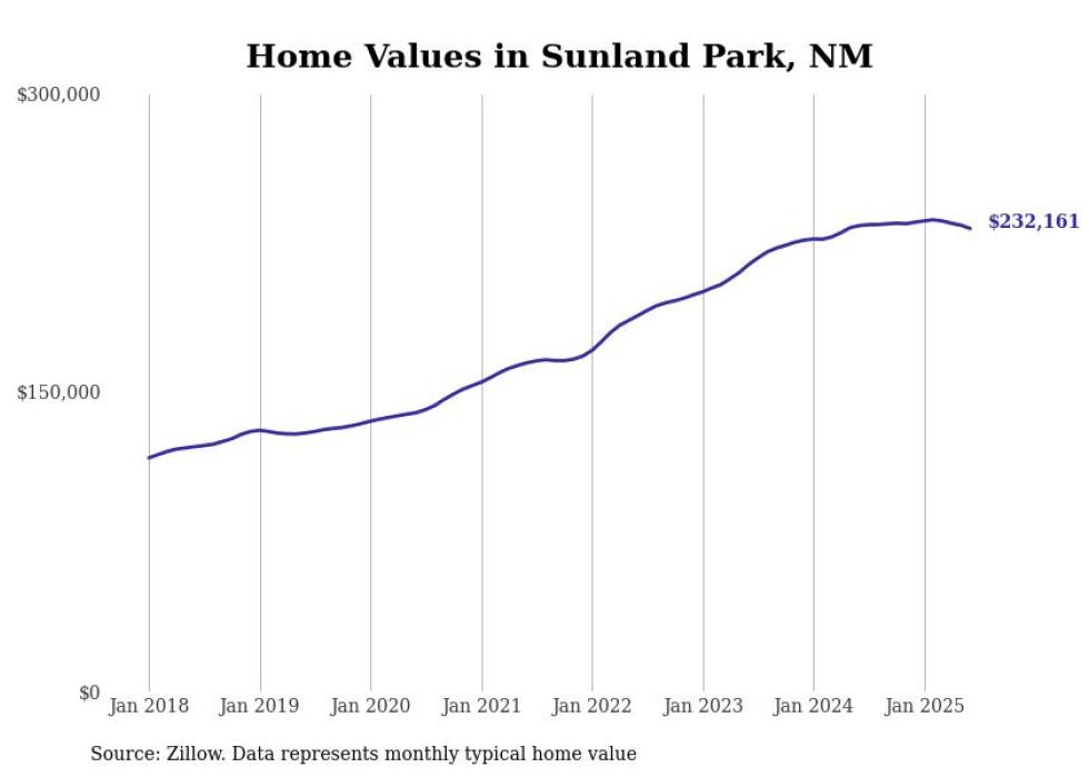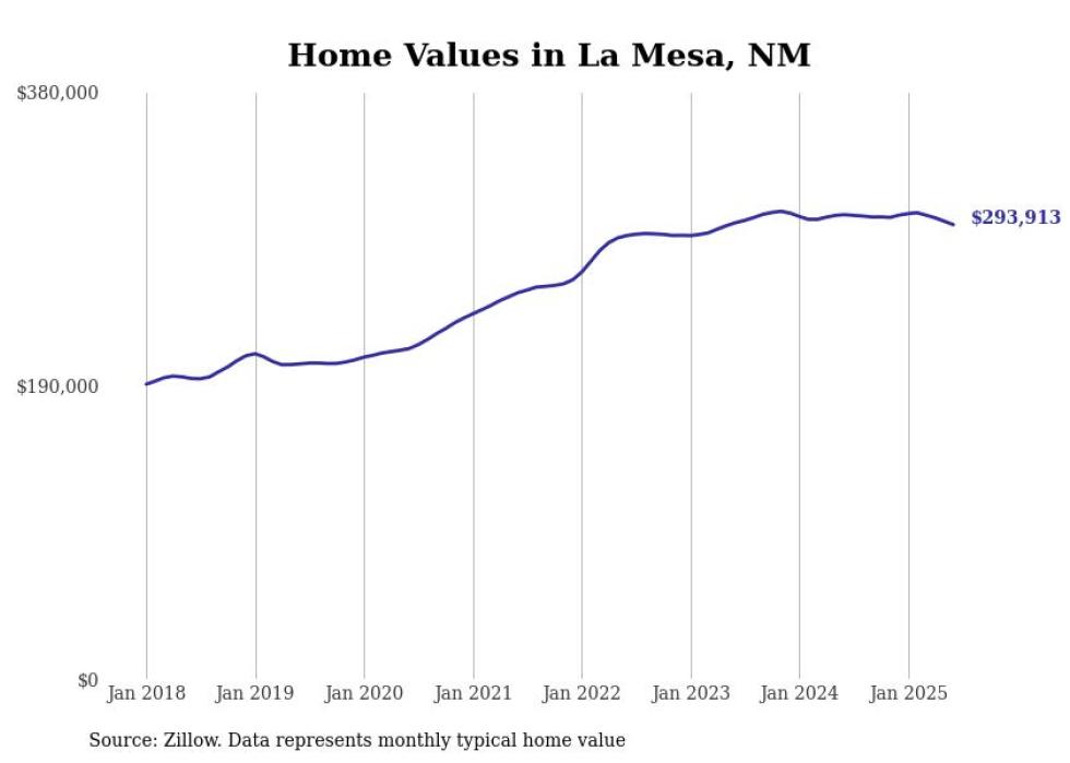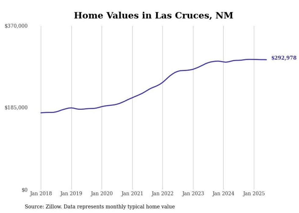 Stacker compiled a list of cities with the most expensive homes in the Las Cruces, NM metro area using data from Zillow. Charts show the monthly typical home value since January 2018.