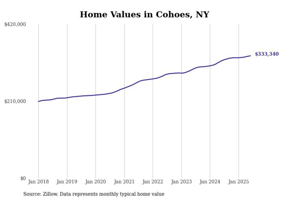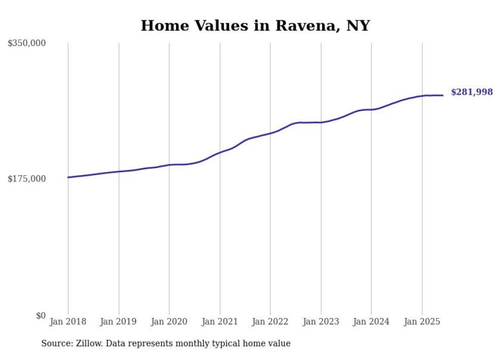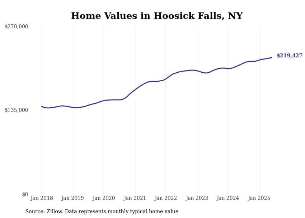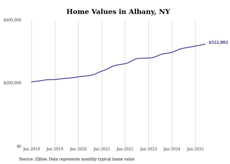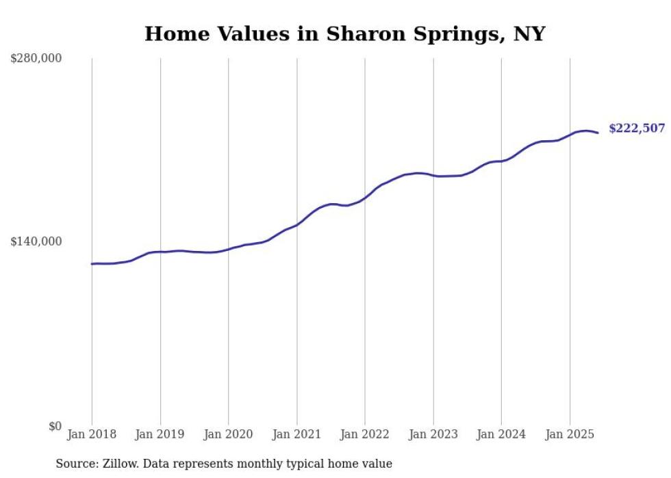 Stacker compiled a list of cities with the most expensive homes in the Albany-Schenectady-Troy, NY metro area using data from Zillow. Charts show the monthly typical home value since January 2018.