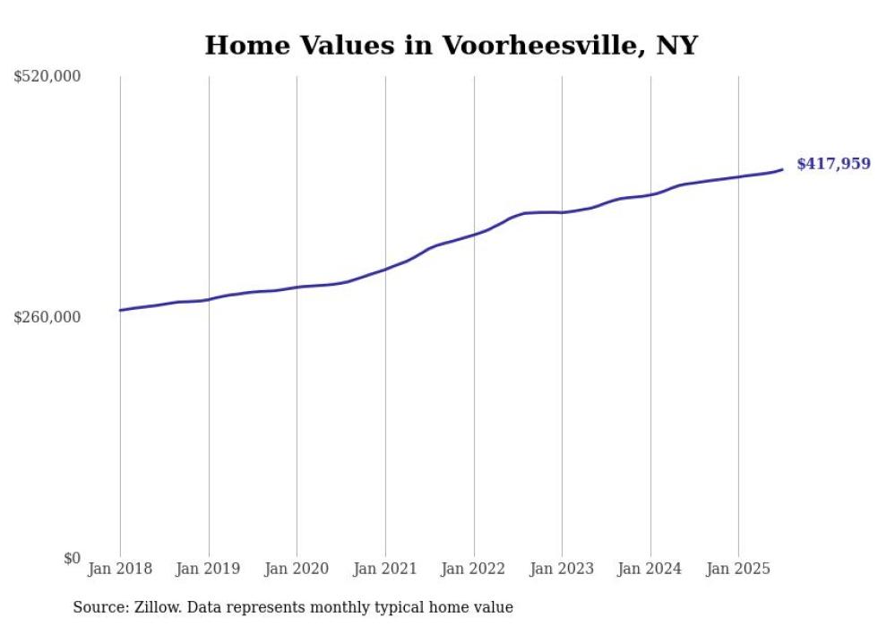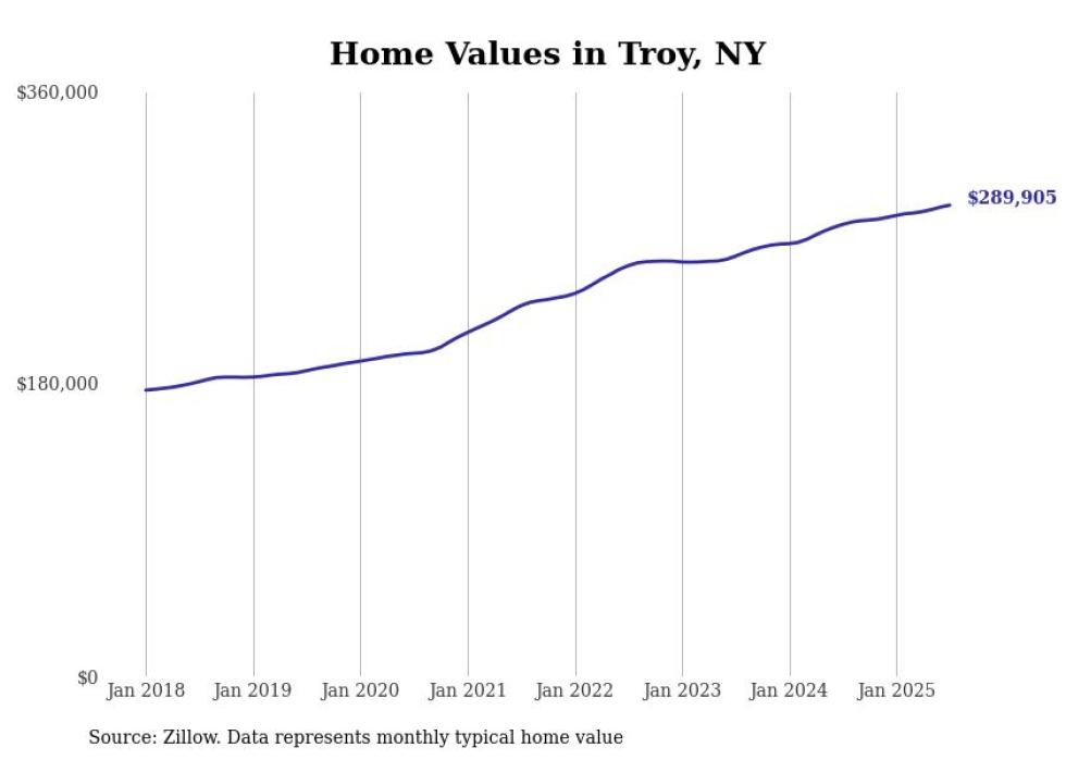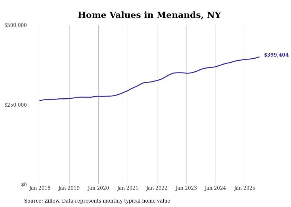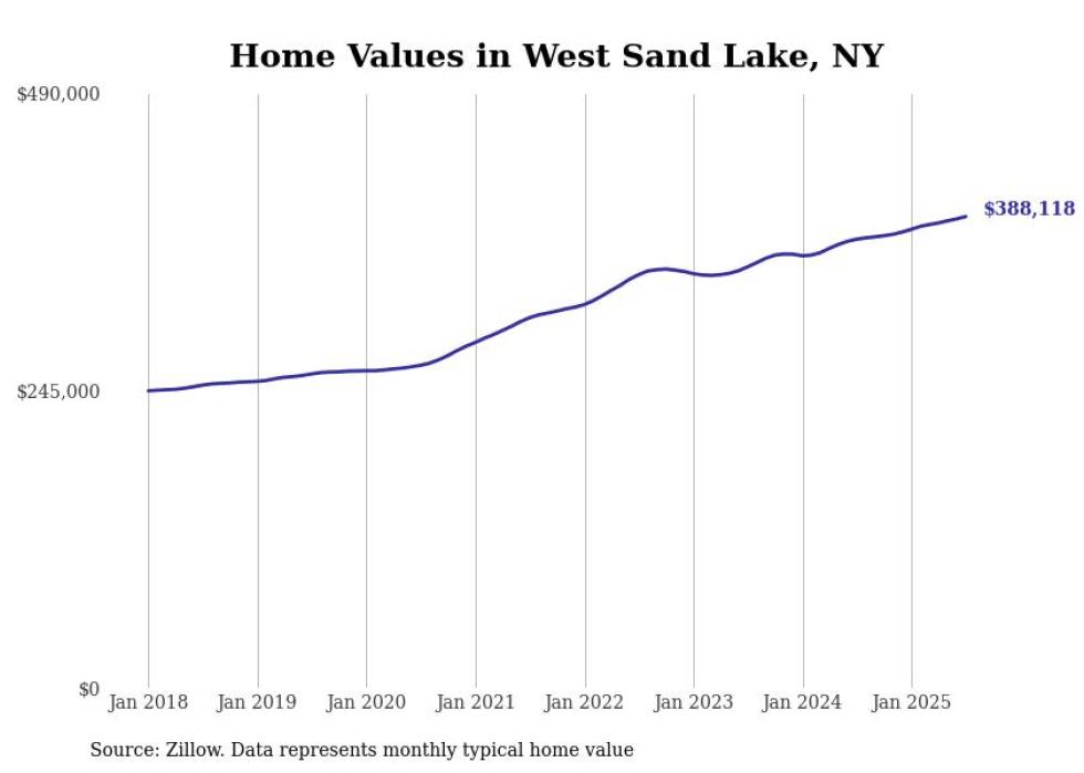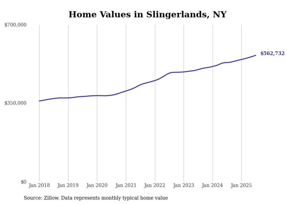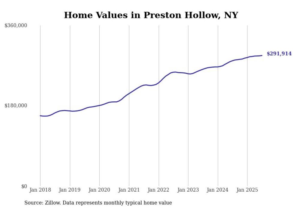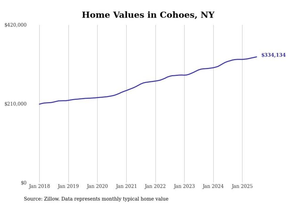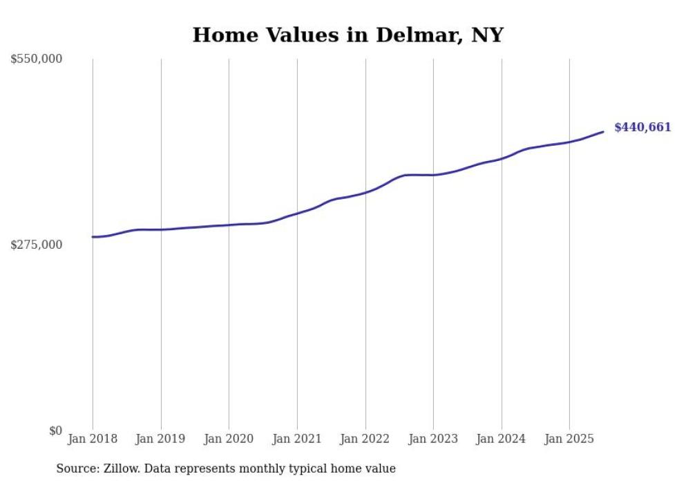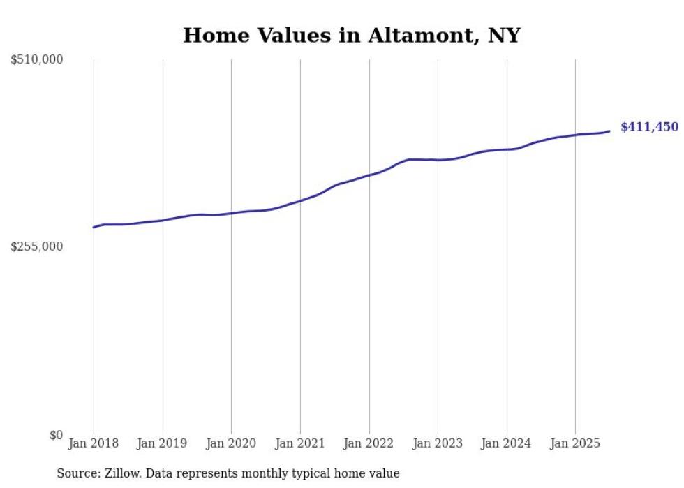 Stacker compiled a list of cities with the most expensive homes in the Albany metro area using data from Zillow. Charts show the monthly typical home value since January 2018. Data was available for 34 cities and towns.