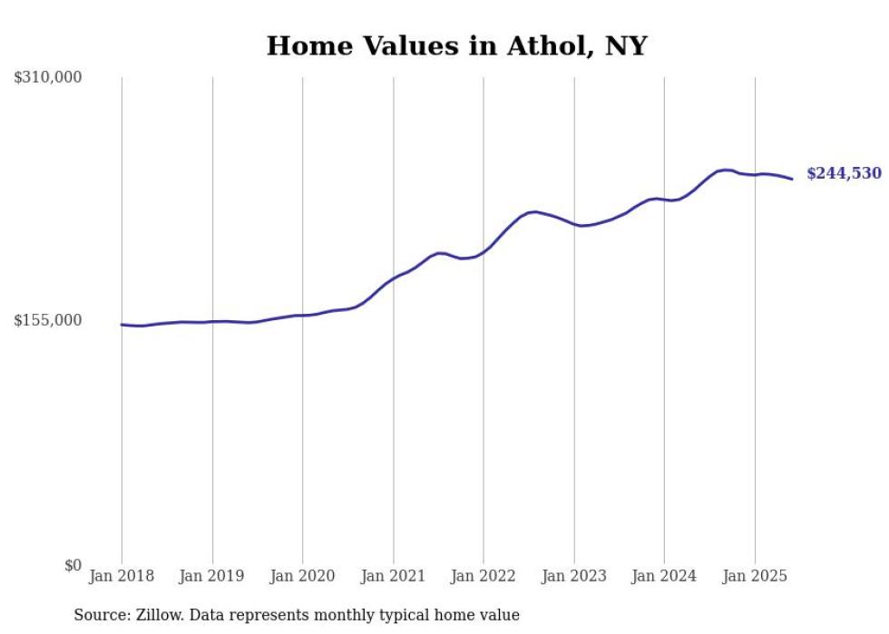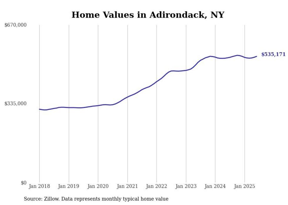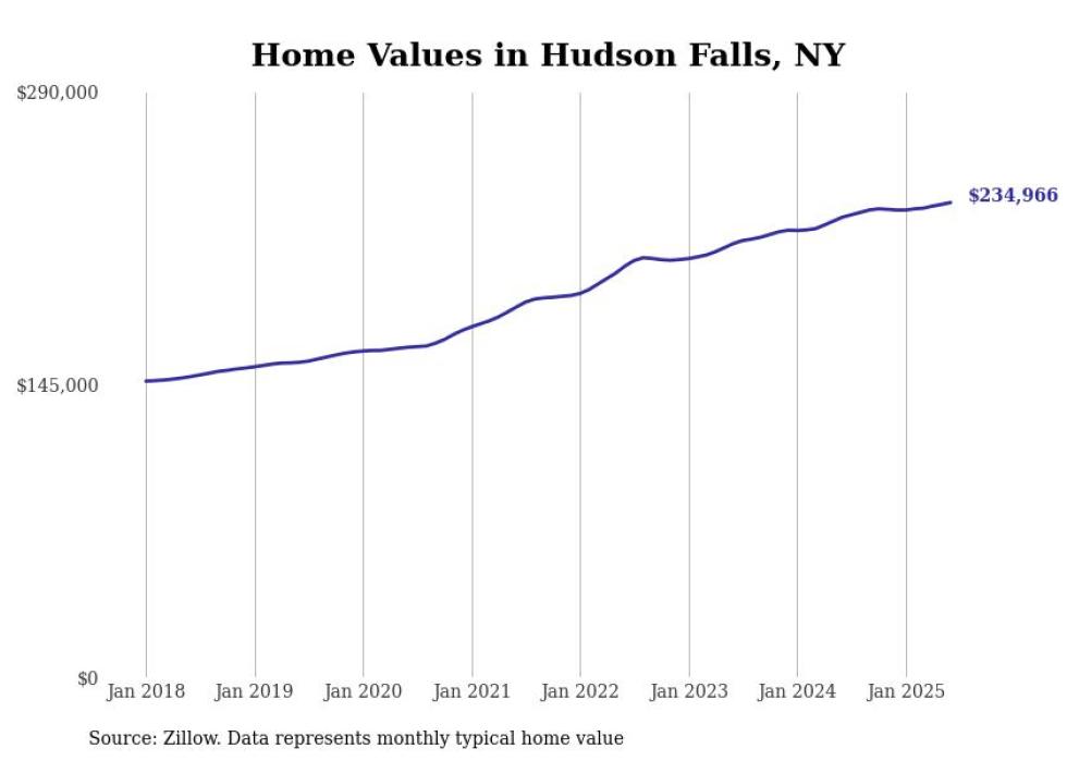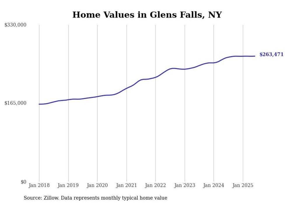 Stacker compiled a list of cities with the most expensive homes in the Glens Falls, NY metro area using data from Zillow. Charts show the monthly typical home value since January 2018.