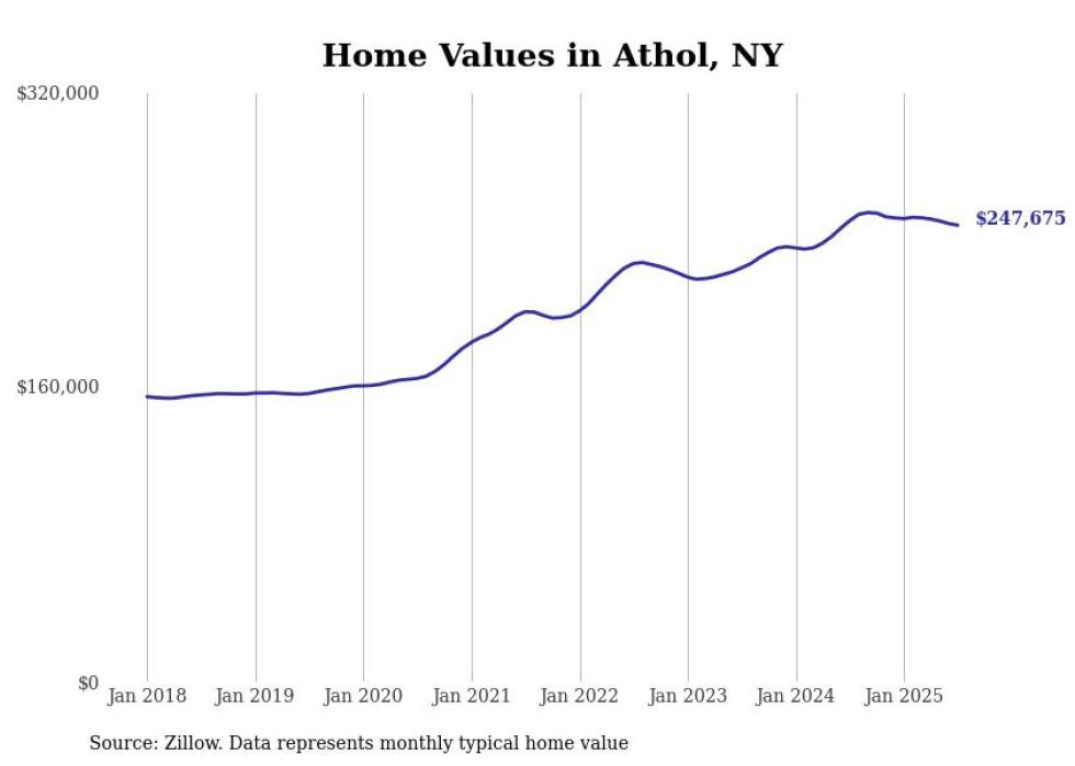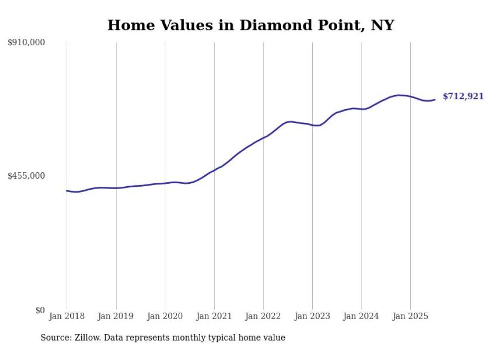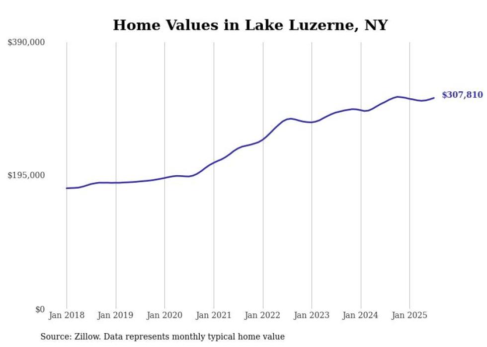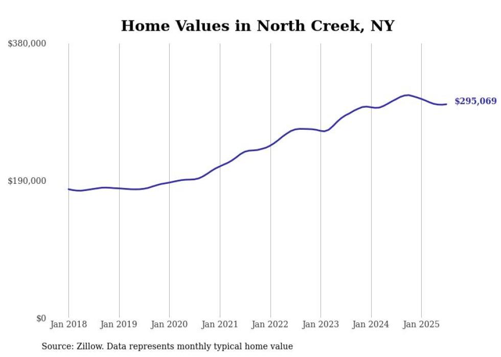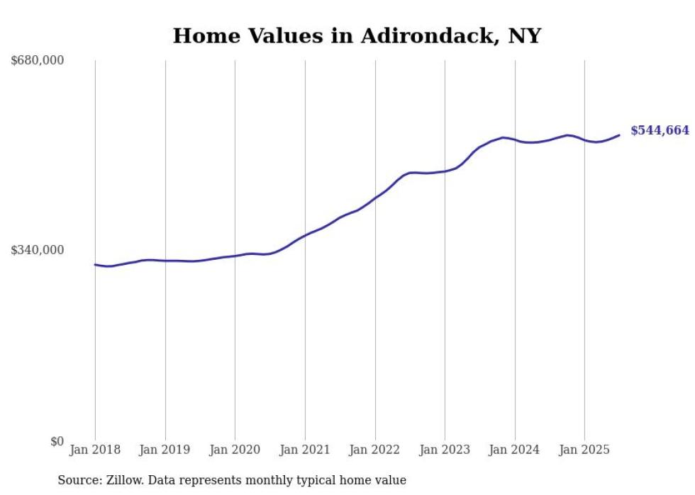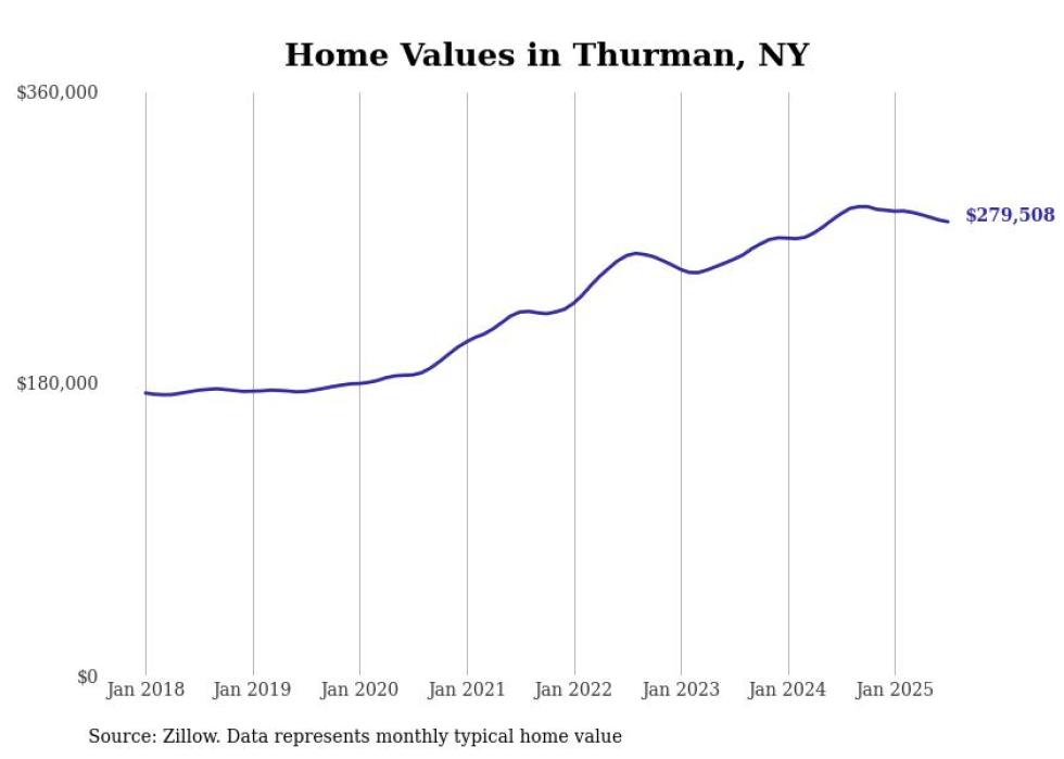 Stacker compiled a list of cities with the most expensive homes in the Glens Falls metro area using data from Zillow. Charts show the monthly typical home value since January 2018. All 21 cities and towns with data available were included in the list.
