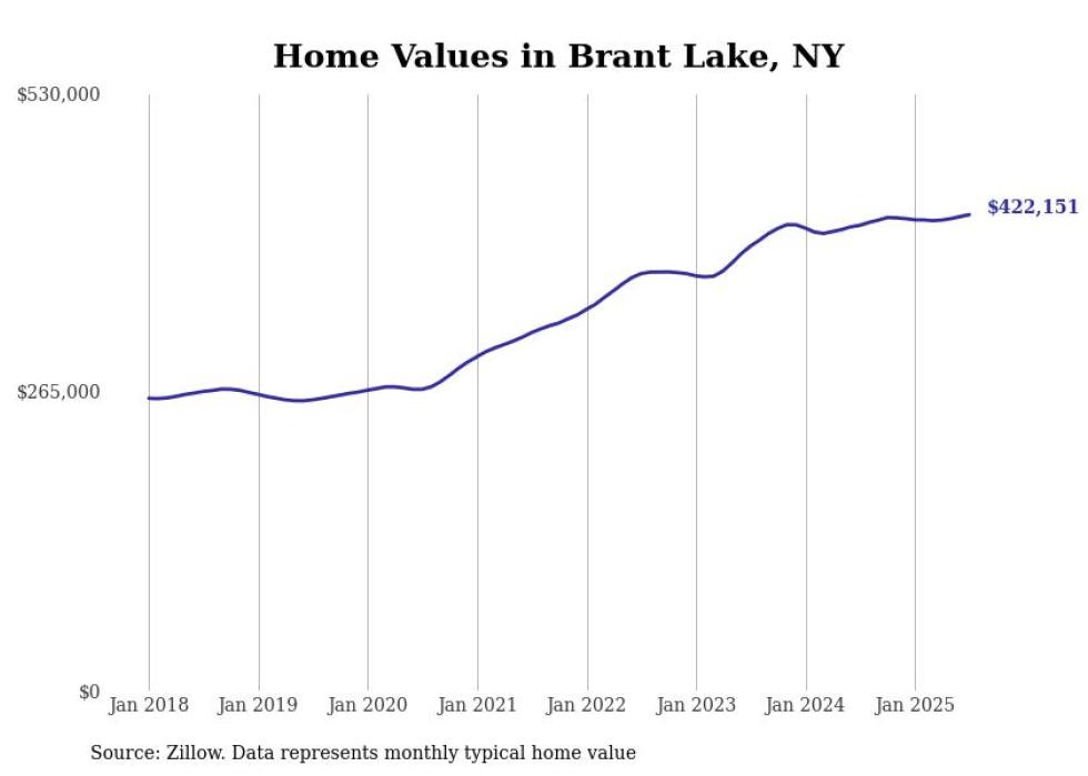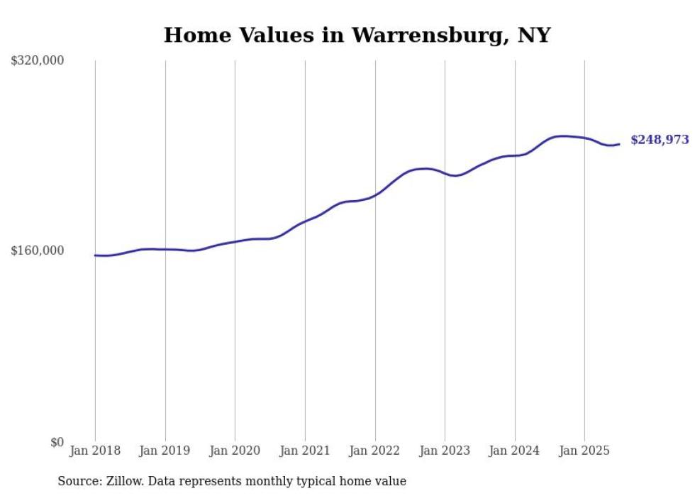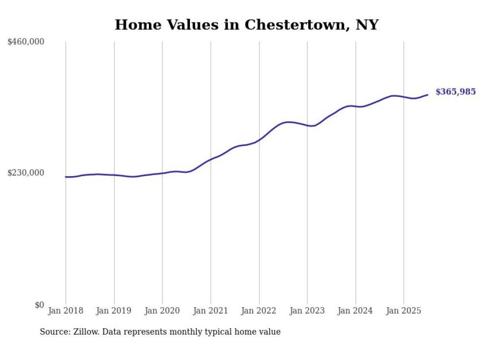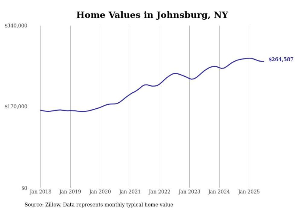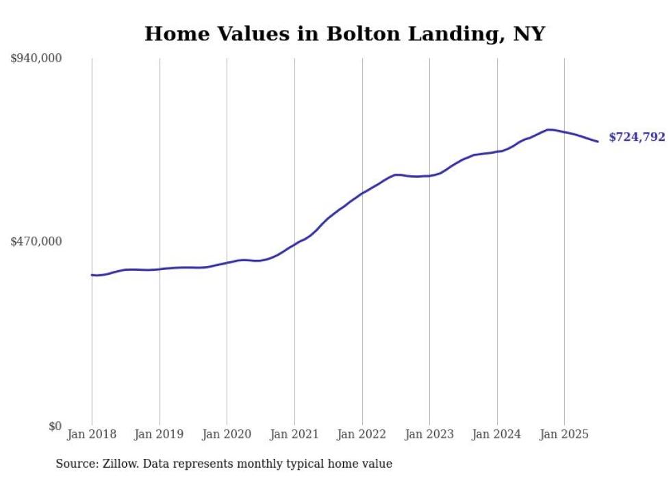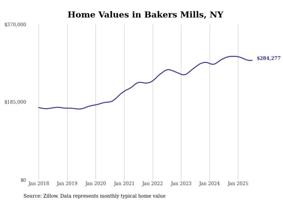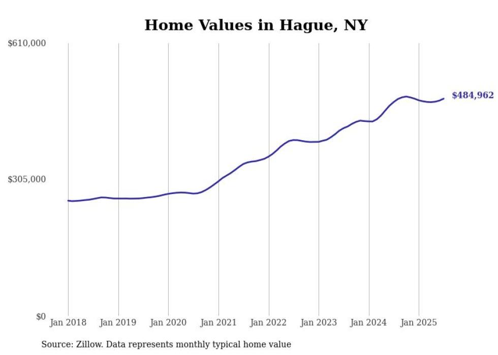 Stacker compiled a list of cities with the most expensive homes in the Glens Falls metro area using data from Zillow. Charts show the monthly typical home value since January 2018. All 21 cities and towns with data available were included in the list.