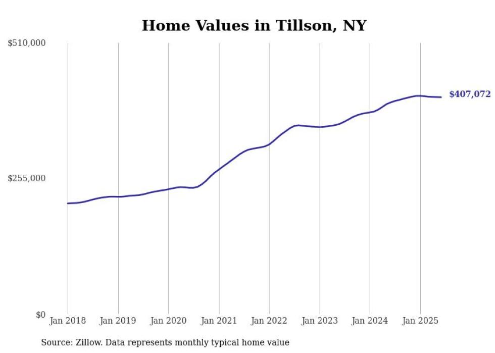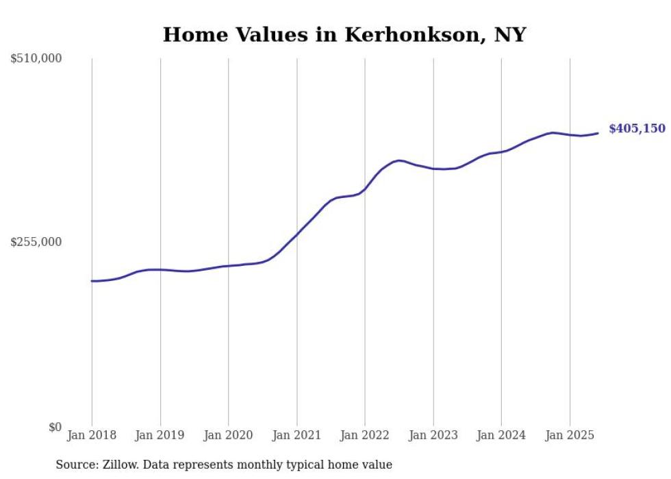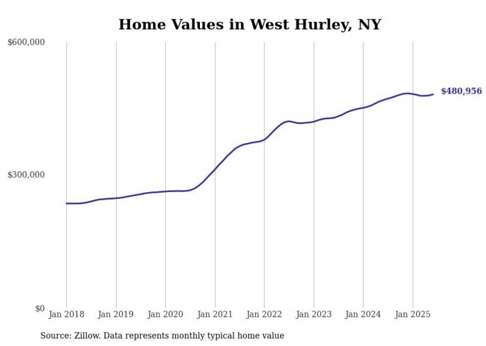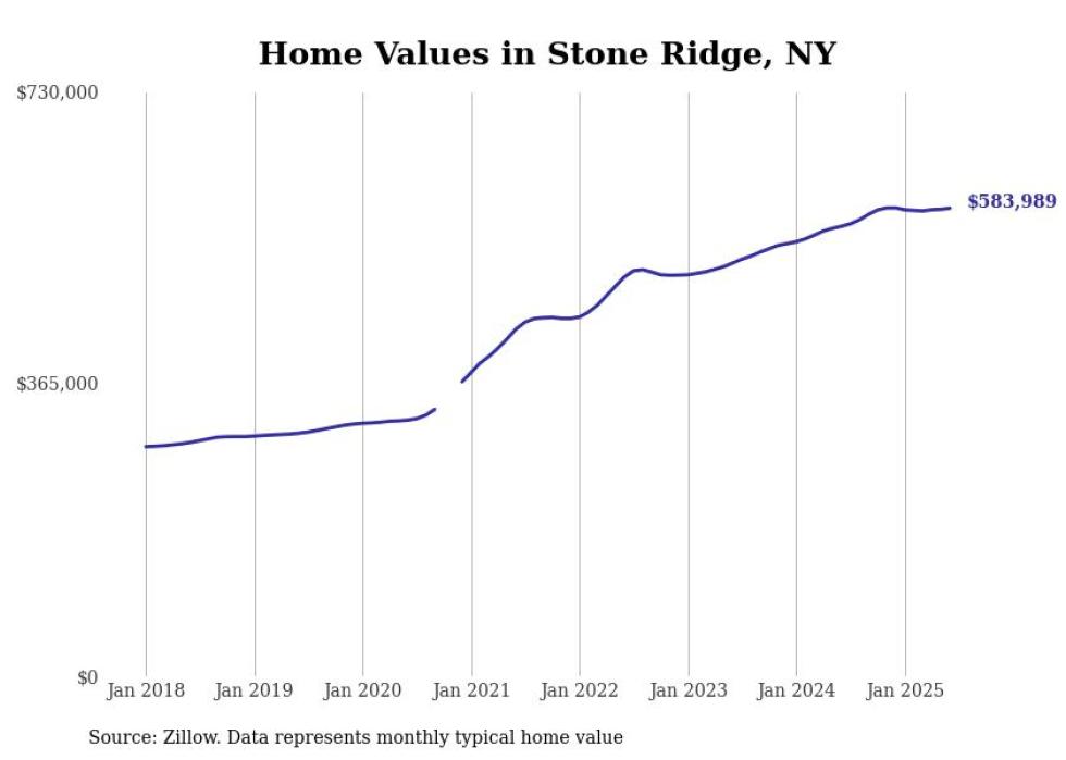 Stacker compiled a list of cities with the most expensive homes in the Kingston, NY metro area using data from Zillow. Charts show the monthly typical home value since January 2018.