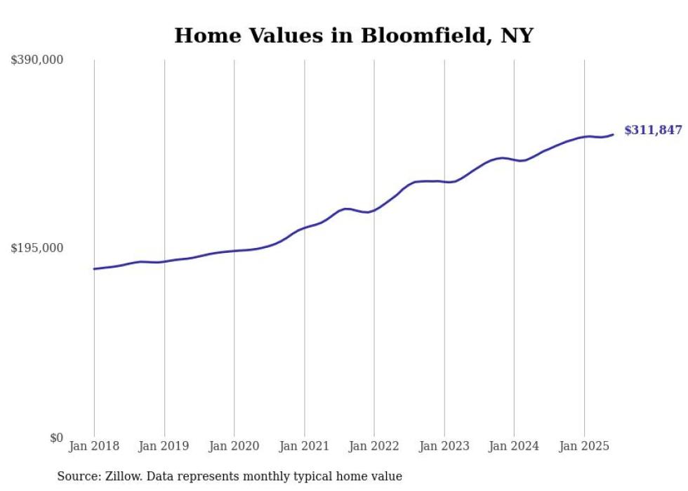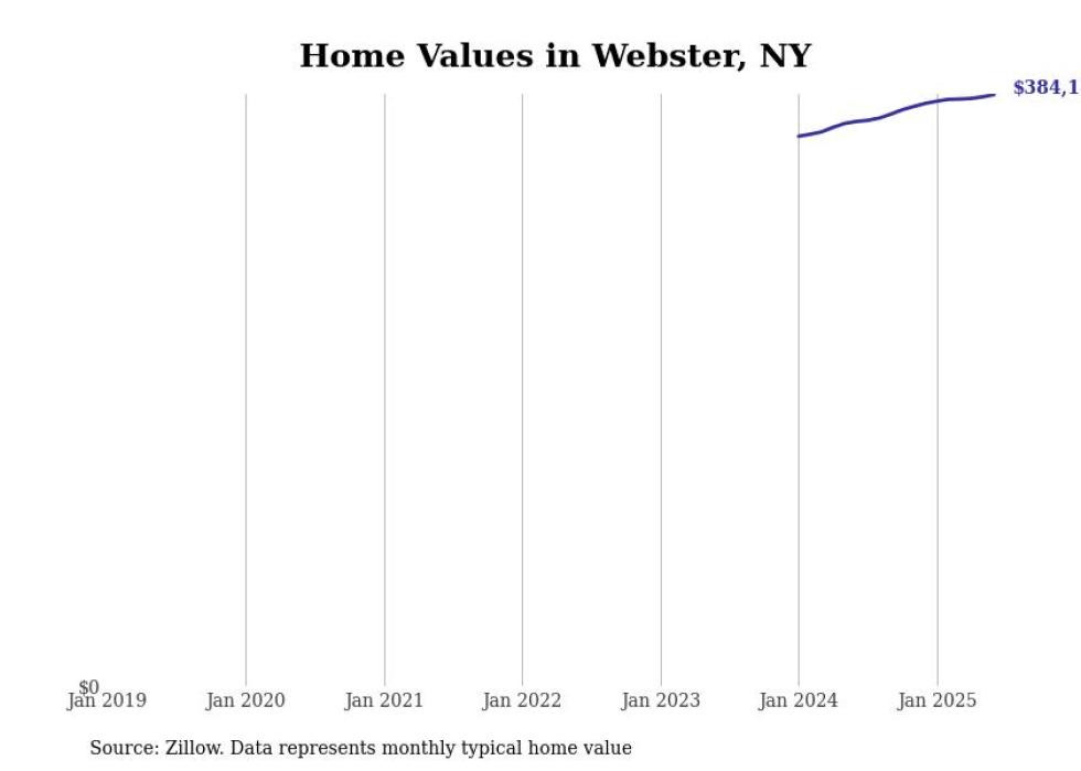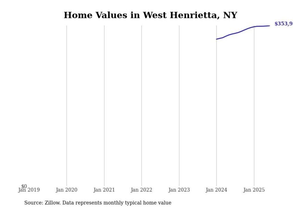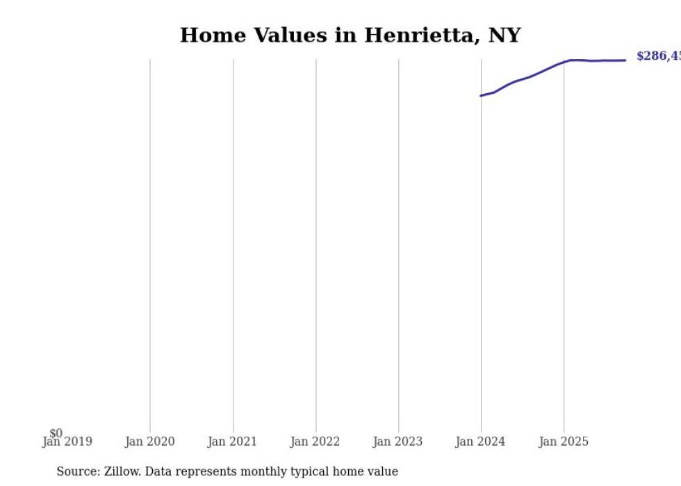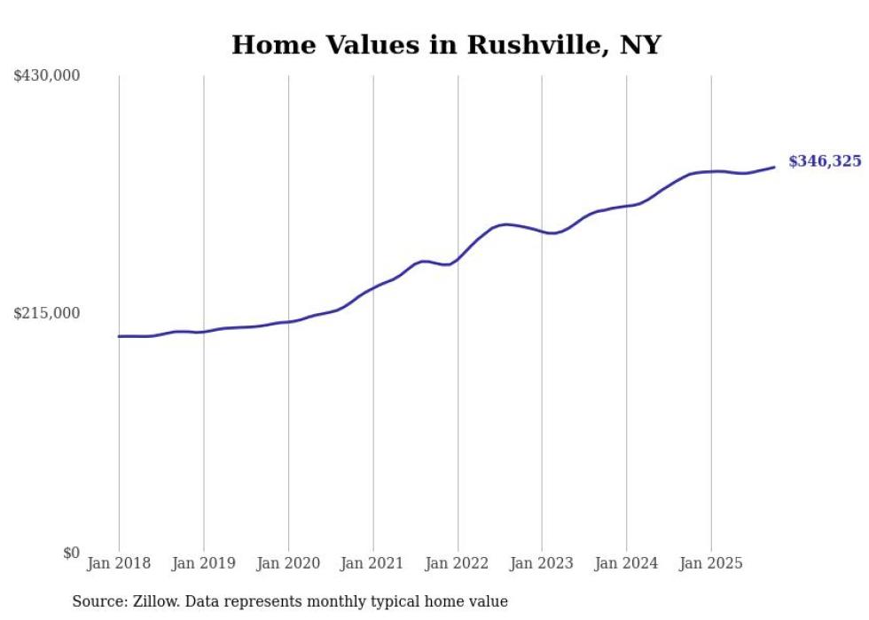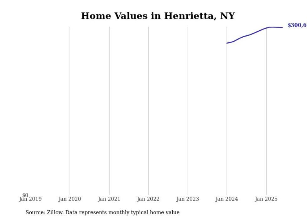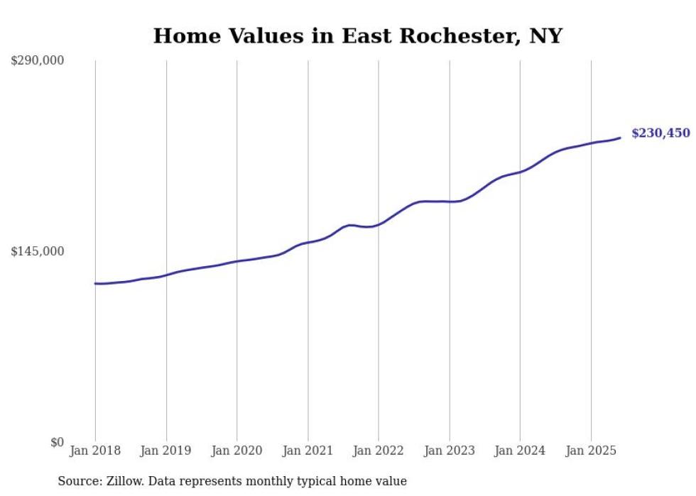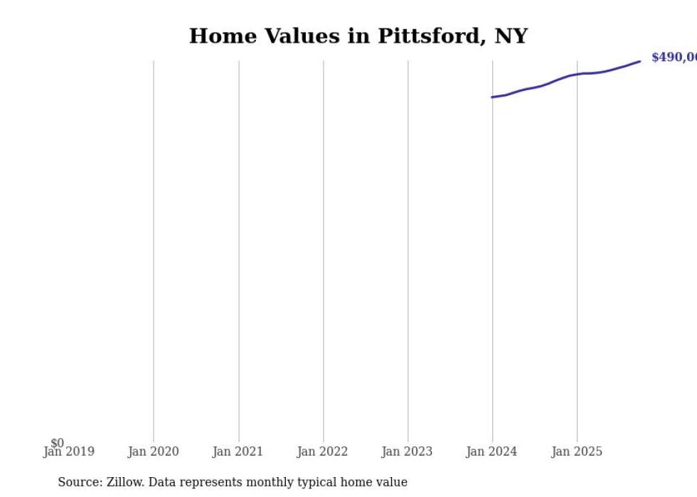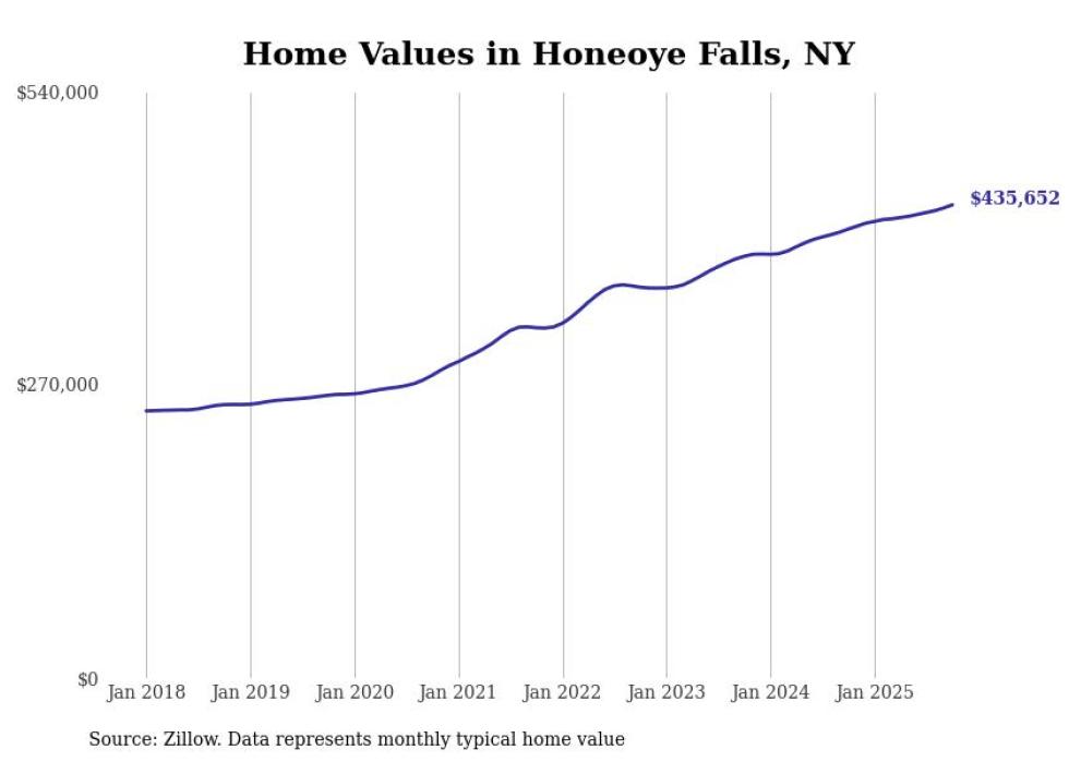 Stacker compiled a list of cities with the most expensive homes in the Rochester, NY metro area using data from Zillow. Charts show the monthly typical home value since January 2018.
