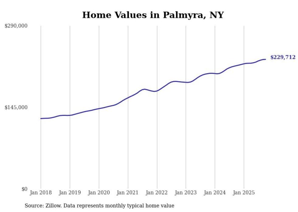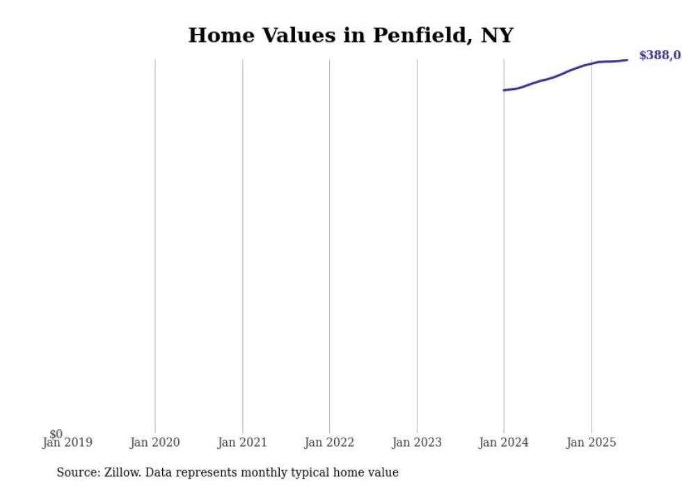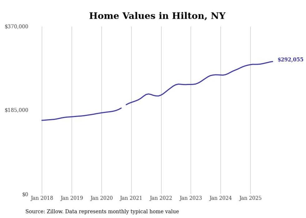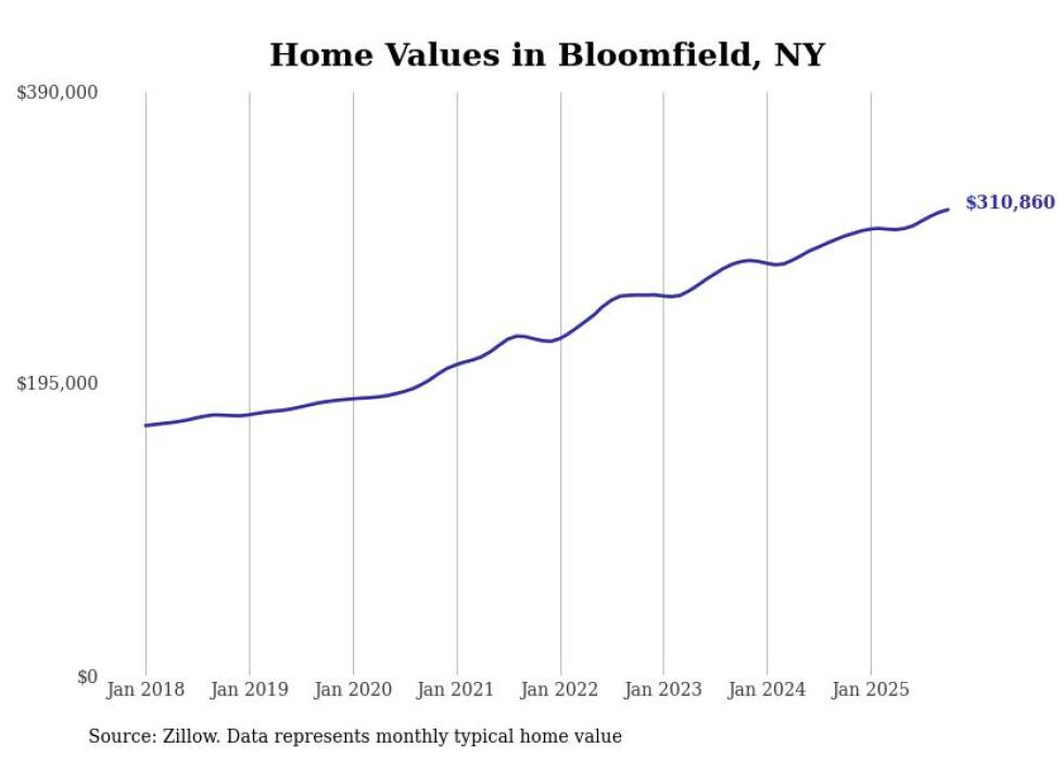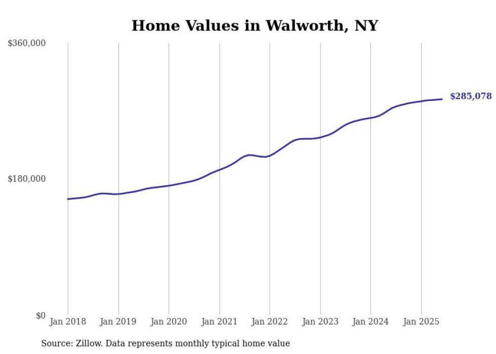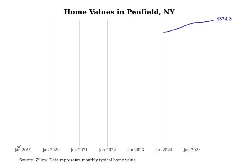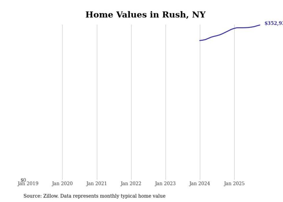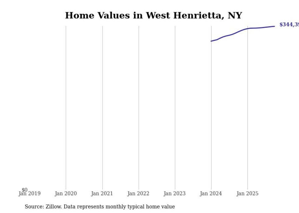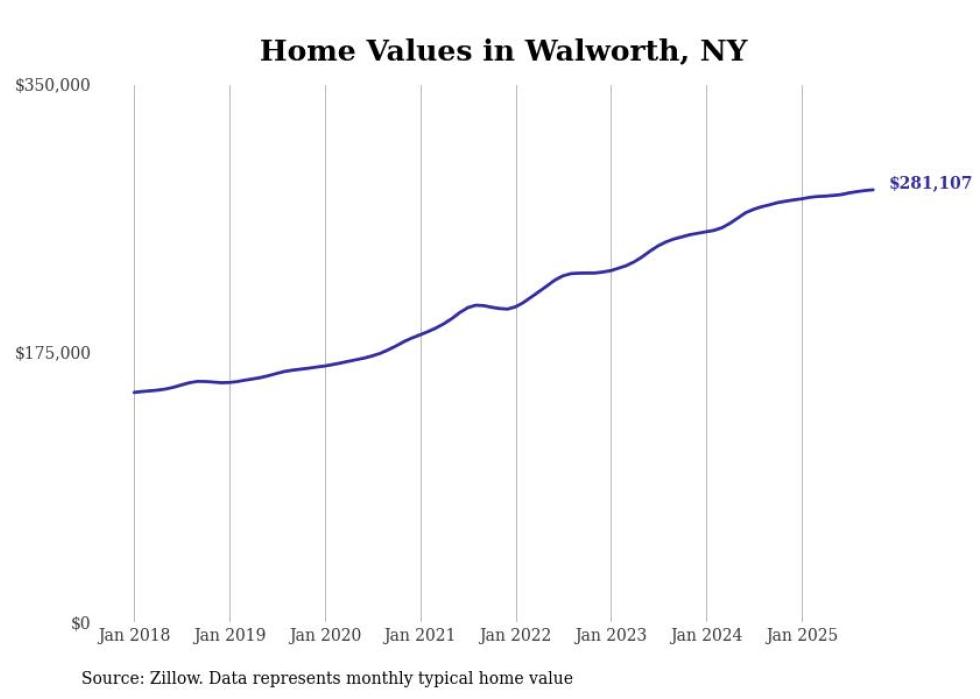 Stacker compiled a list of cities with the most expensive homes in the Rochester, NY metro area using data from Zillow. Charts show the monthly typical home value since January 2018.
