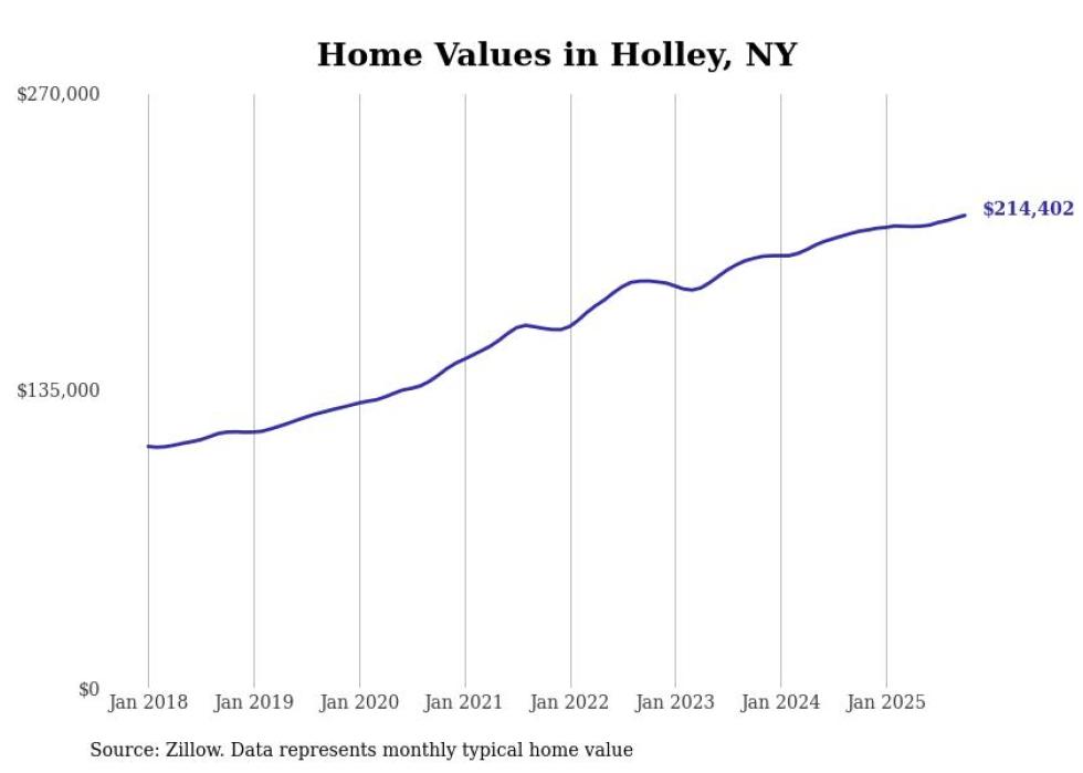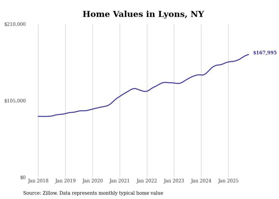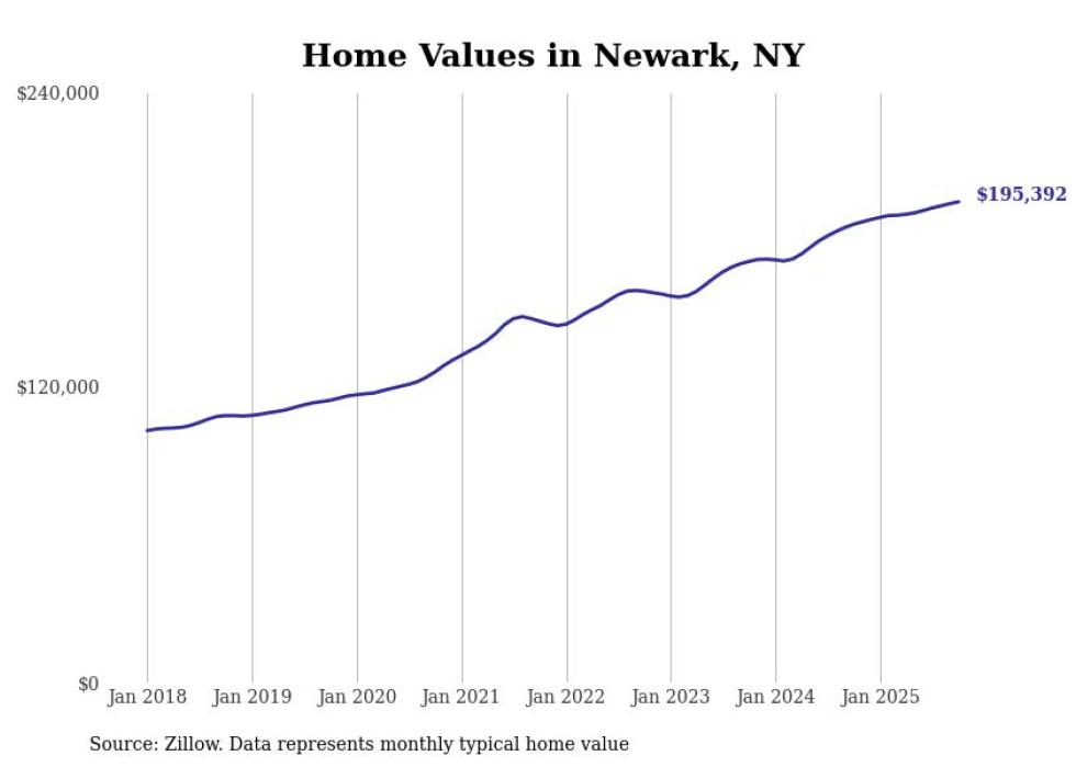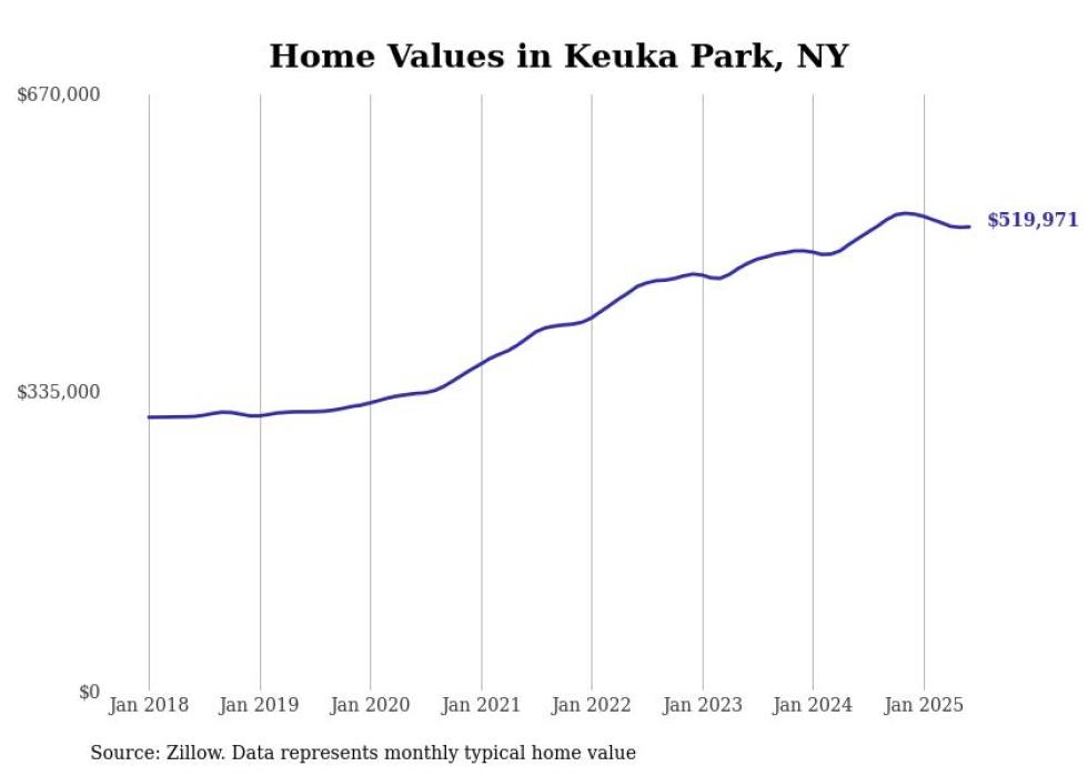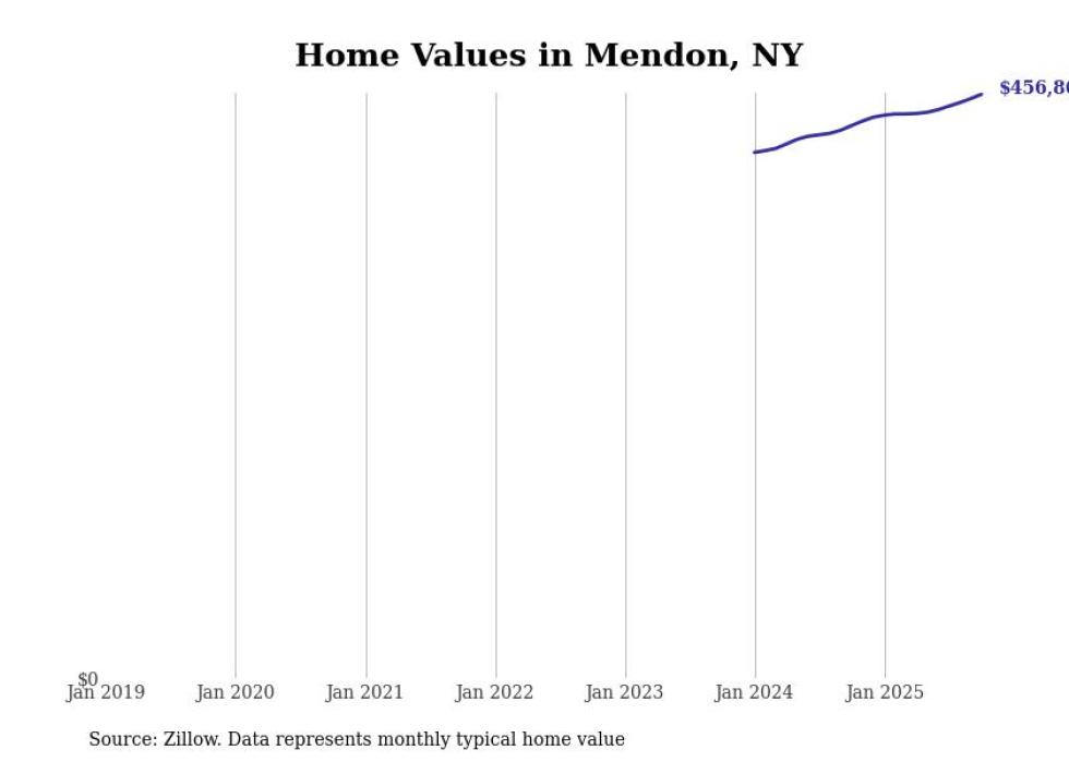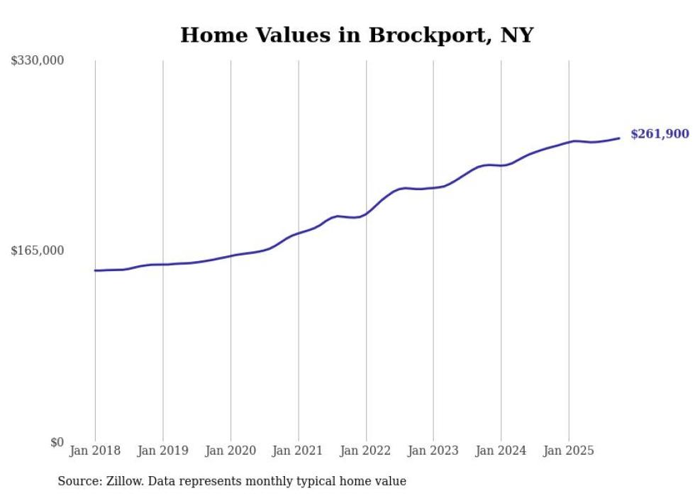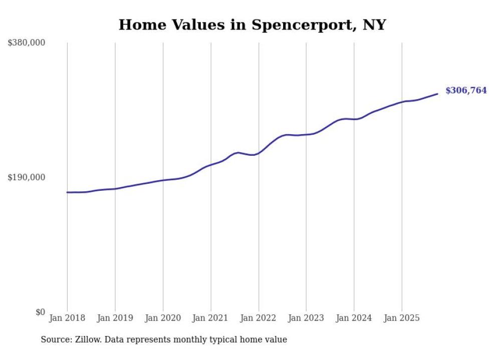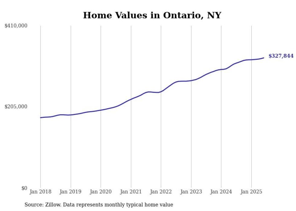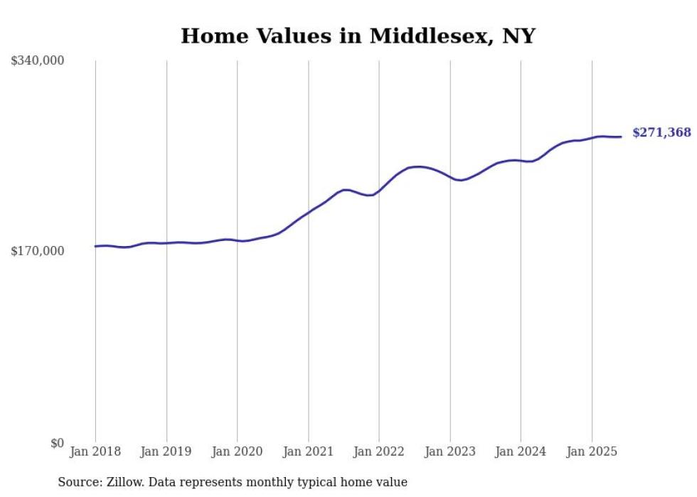 Stacker compiled a list of cities with the most expensive homes in the Rochester, NY metro area using data from Zillow. Charts show the monthly typical home value since January 2018.