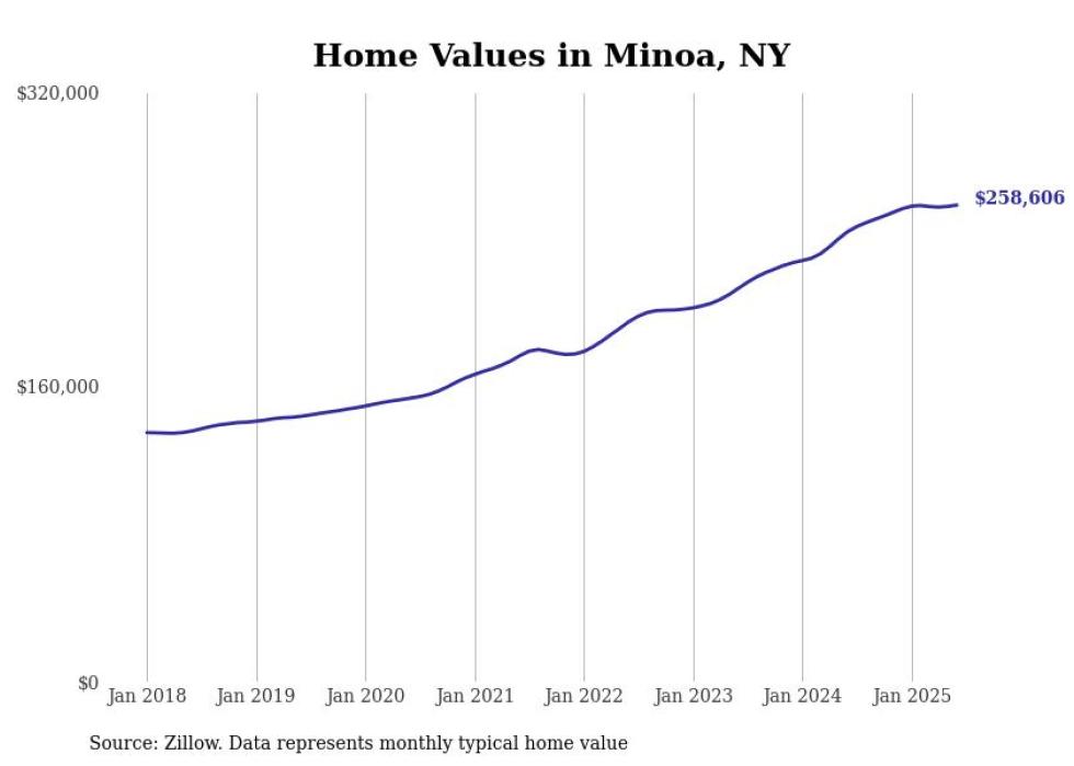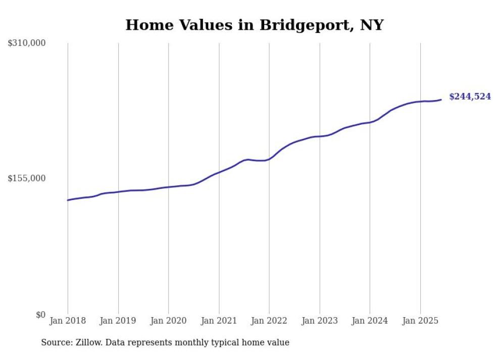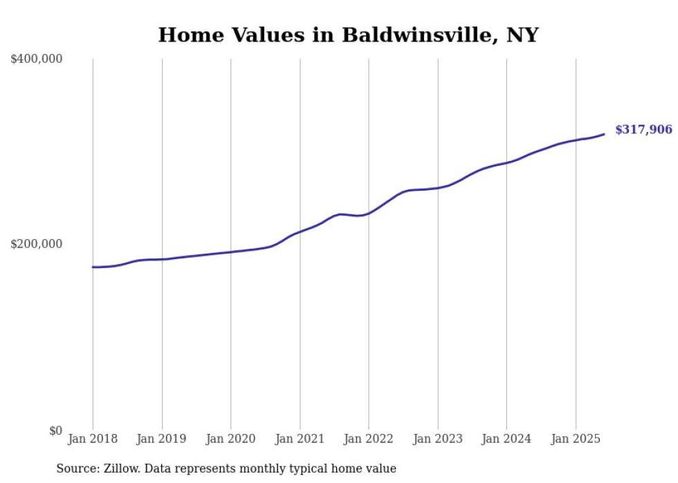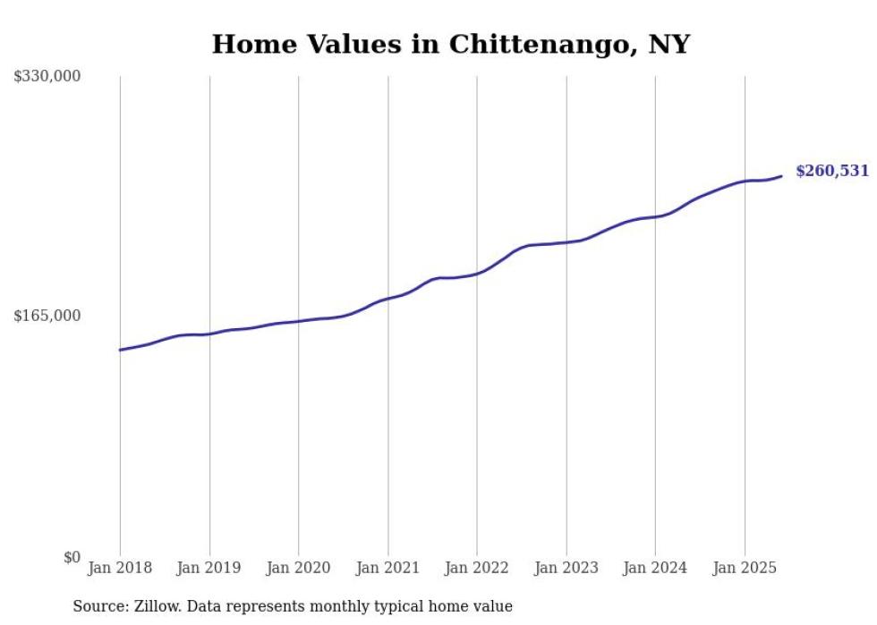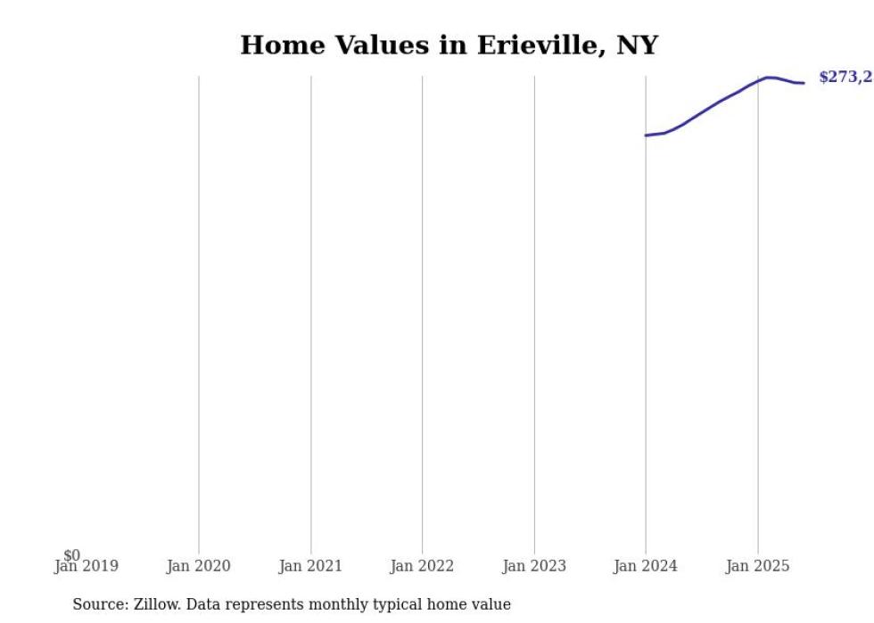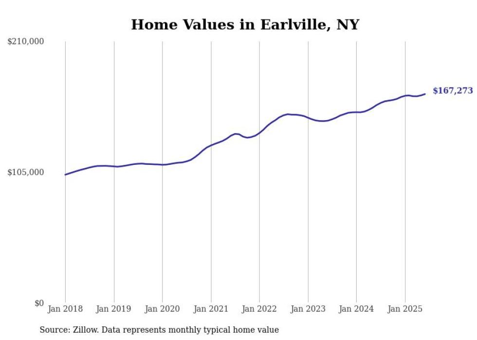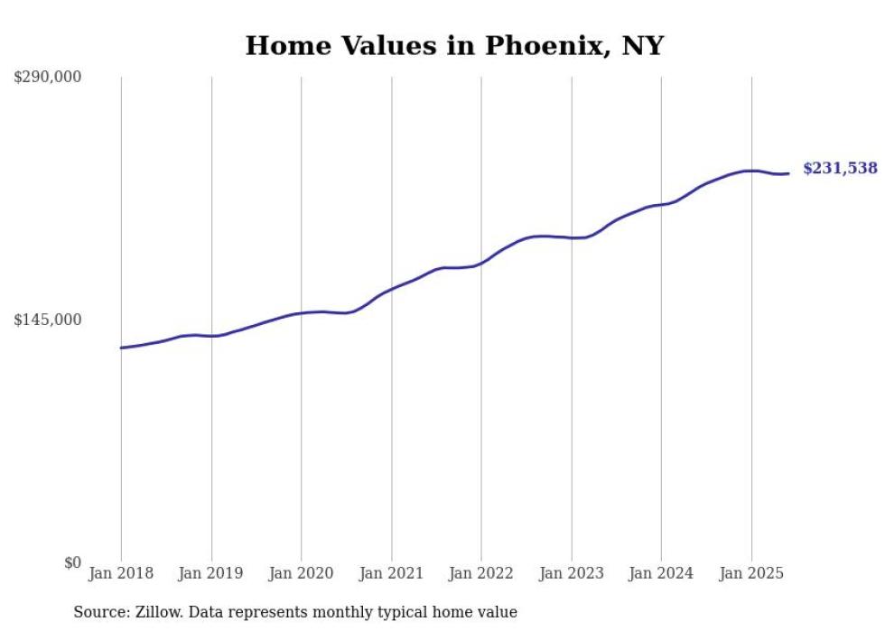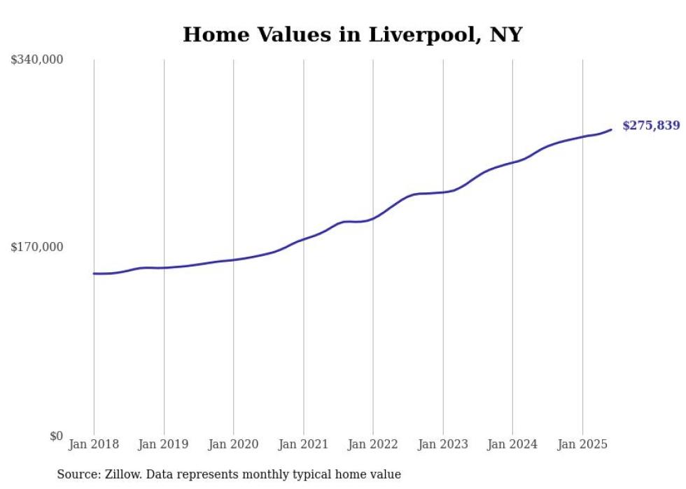 Stacker compiled a list of cities with the most expensive homes in the Syracuse, NY metro area using data from Zillow. Charts show the monthly typical home value since January 2018.