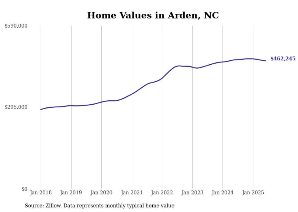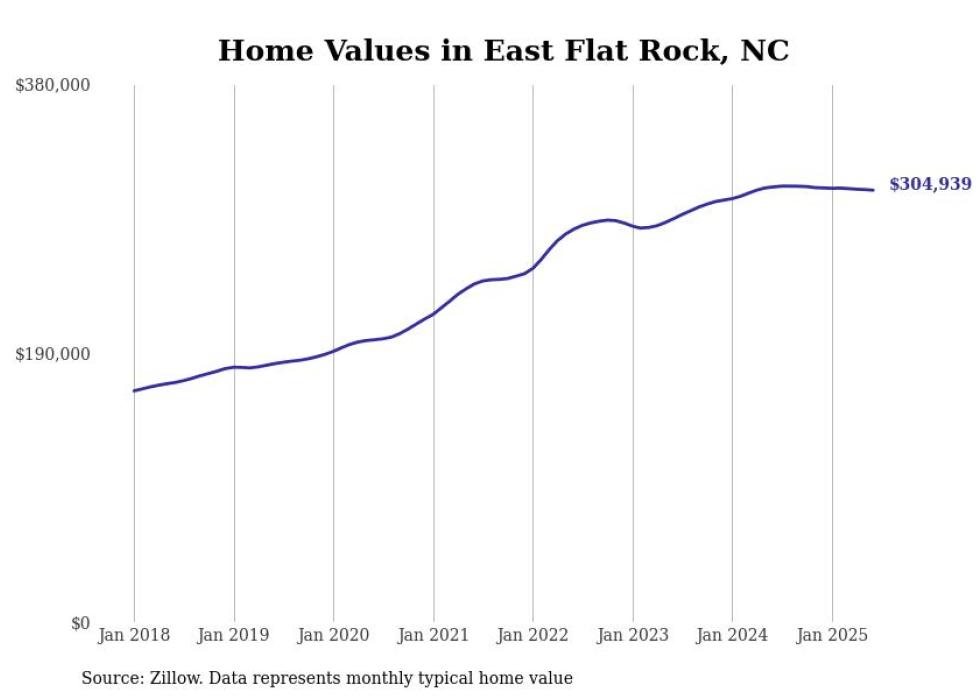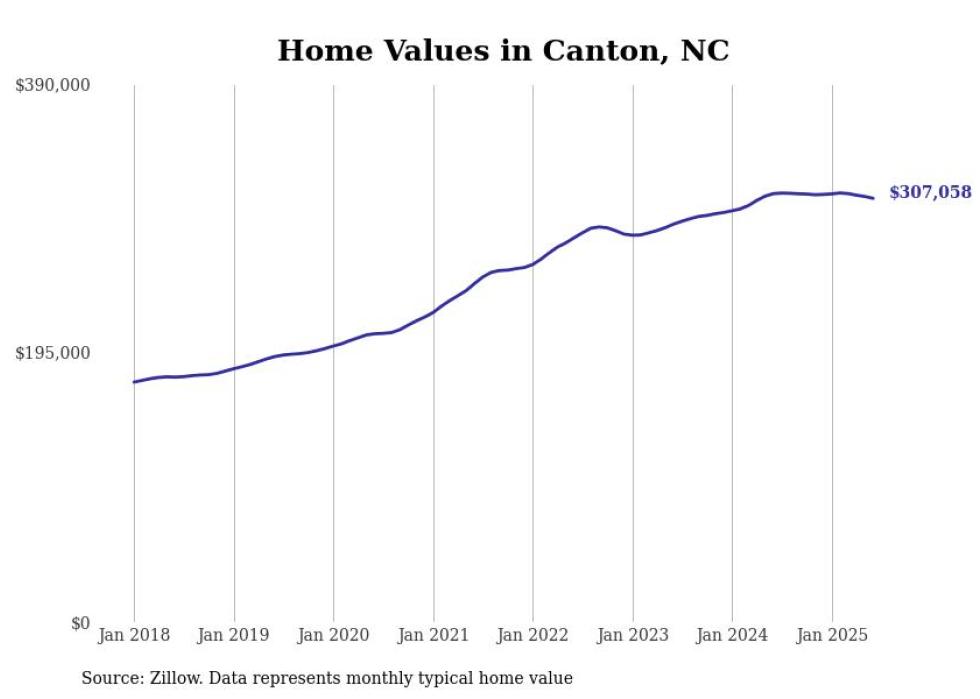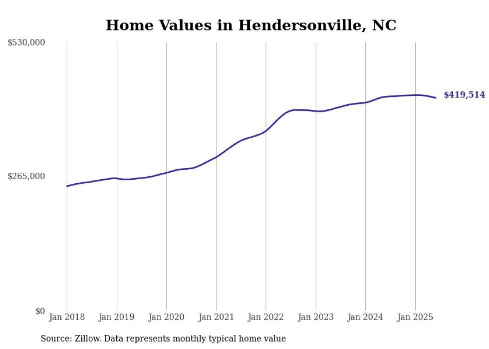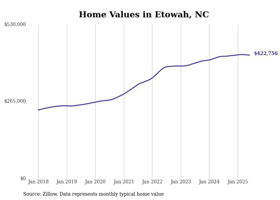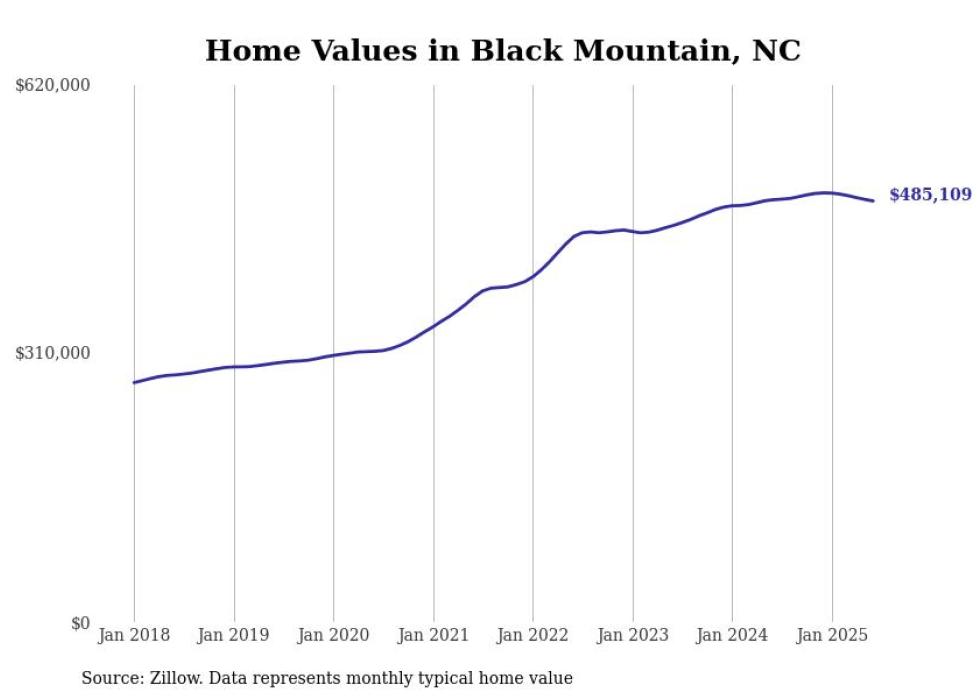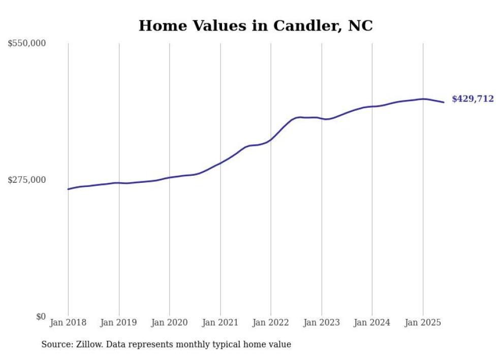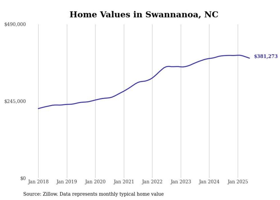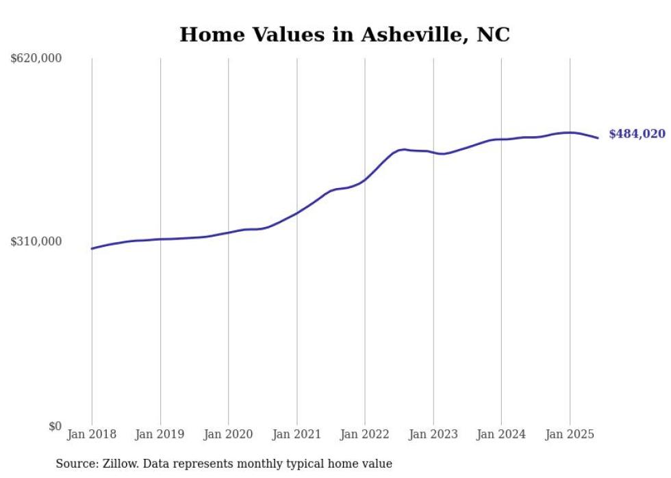 Stacker compiled a list of cities with the most expensive homes in the Asheville, NC metro area using data from Zillow. Charts show the monthly typical home value since January 2018.