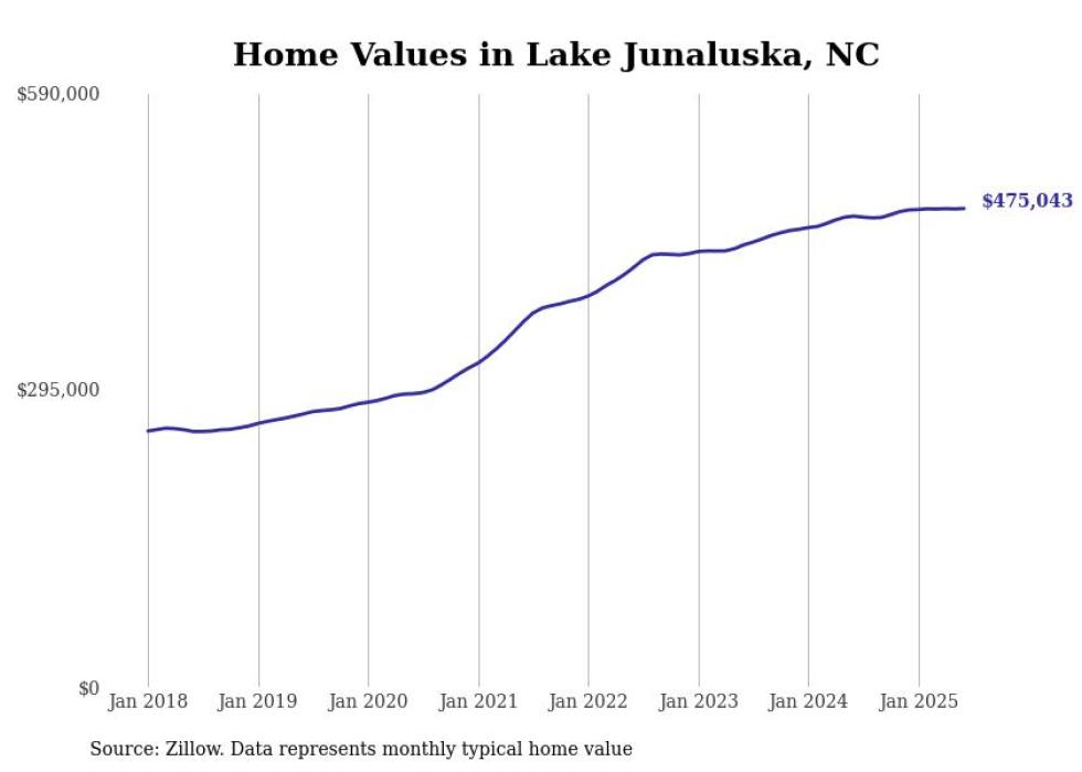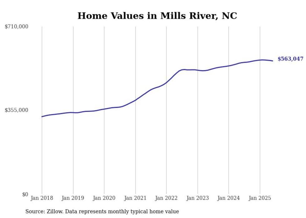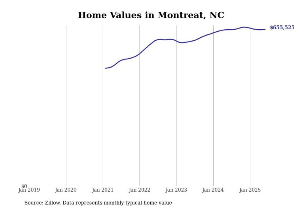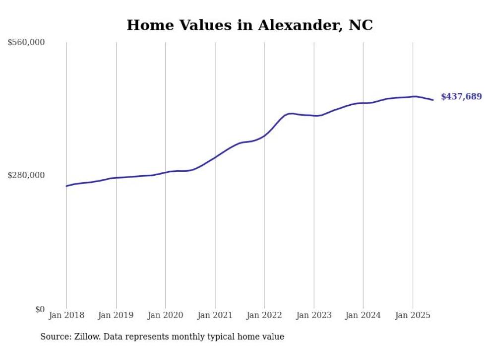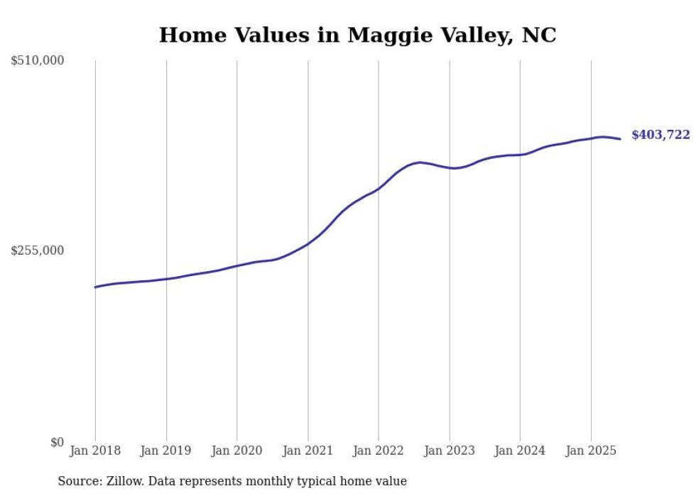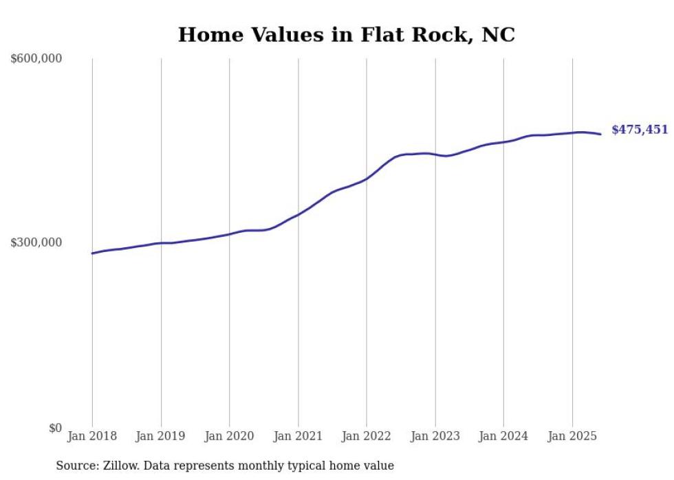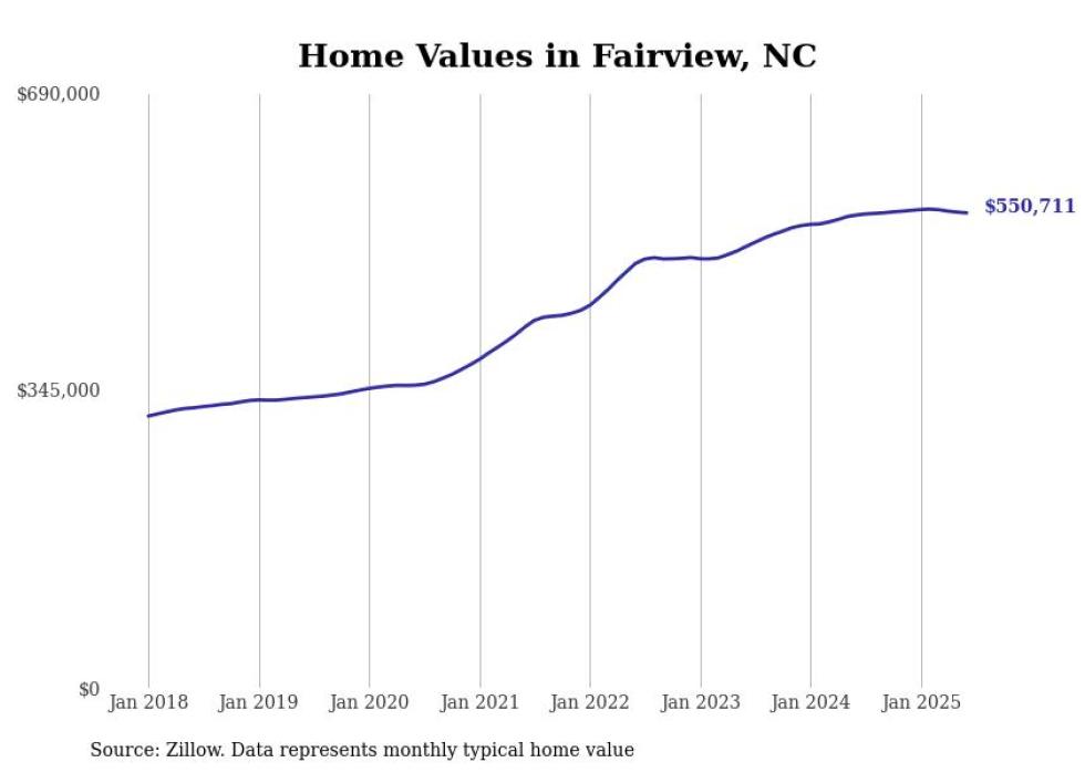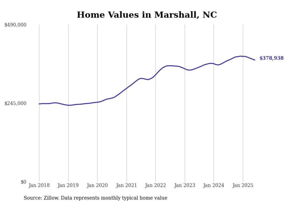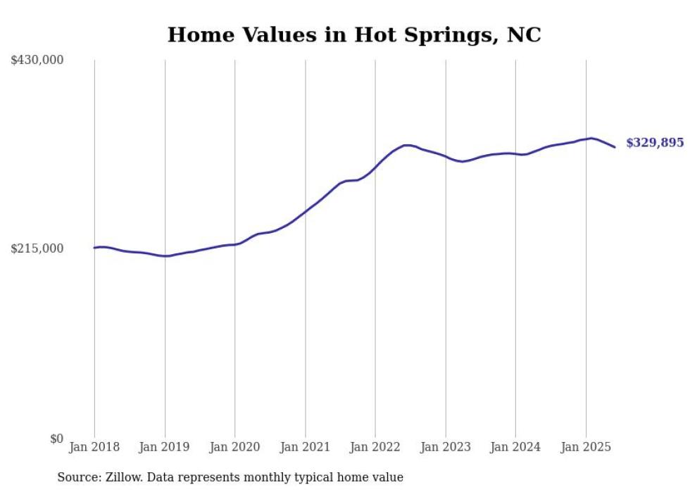 Stacker compiled a list of cities with the most expensive homes in the Asheville, NC metro area using data from Zillow. Charts show the monthly typical home value since January 2018.
