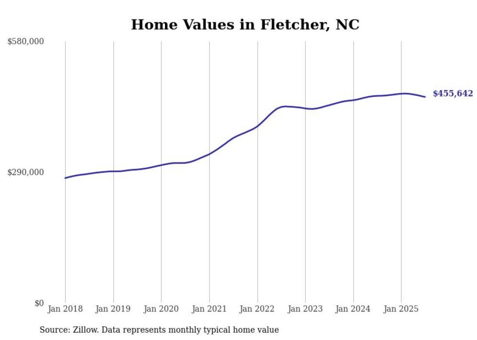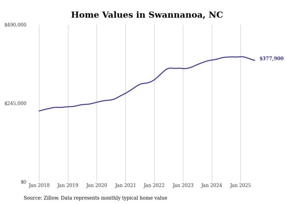 Stacker compiled a list of cities with the most expensive homes in the Asheville metro area using data from Zillow. Charts show the monthly typical home value since January 2018. Data was available for 31 cities and towns.