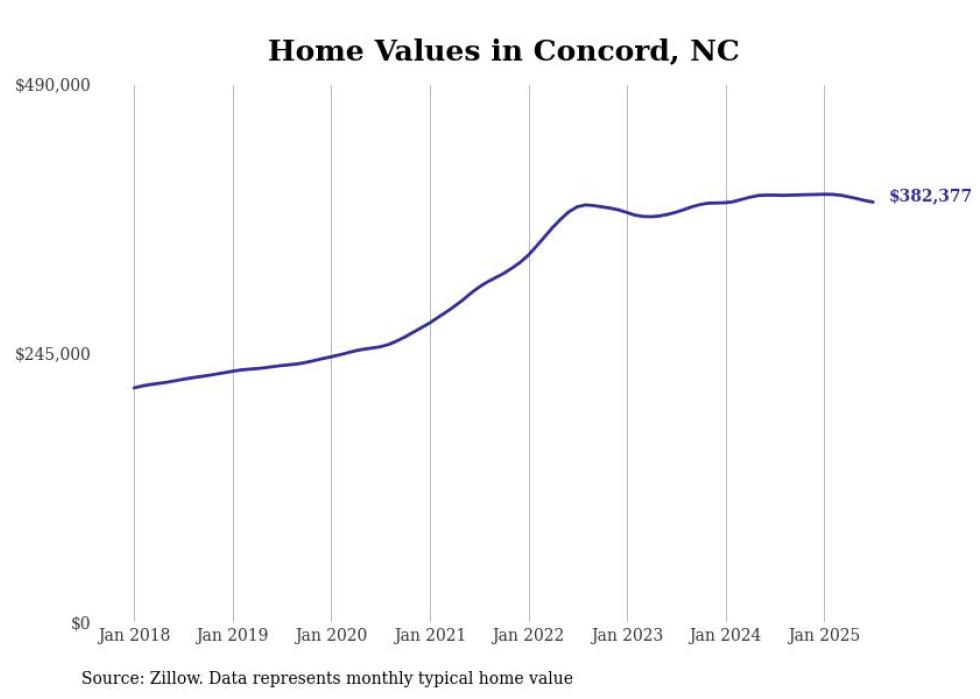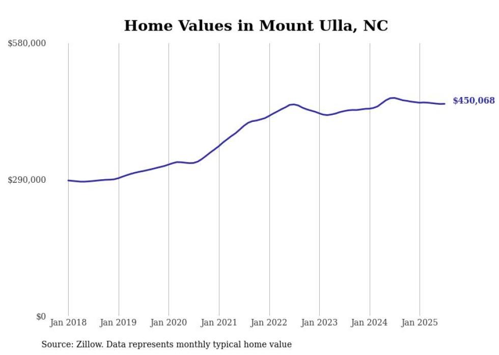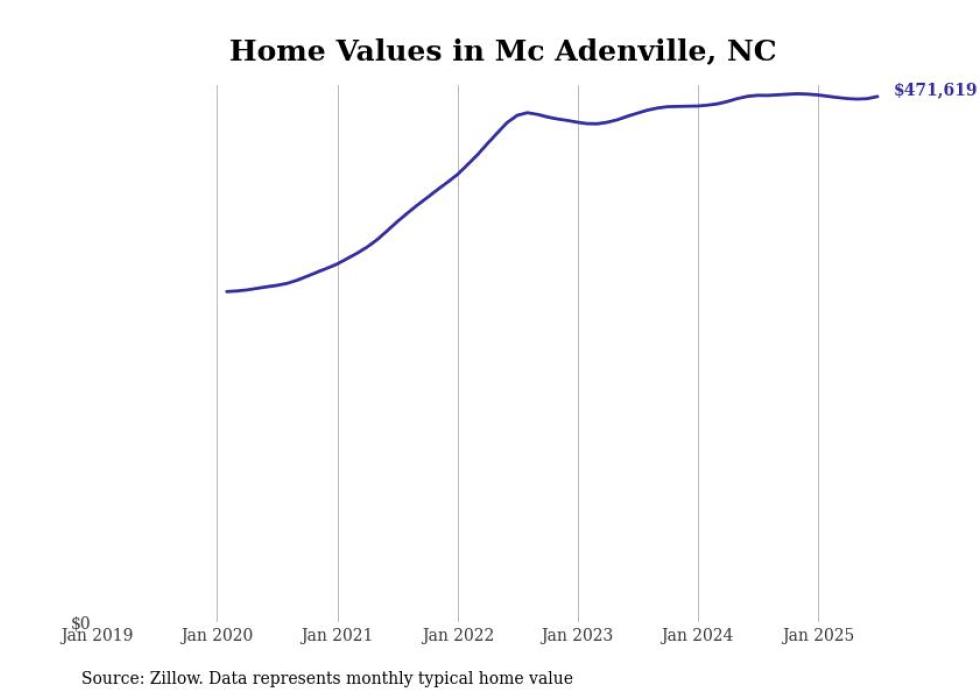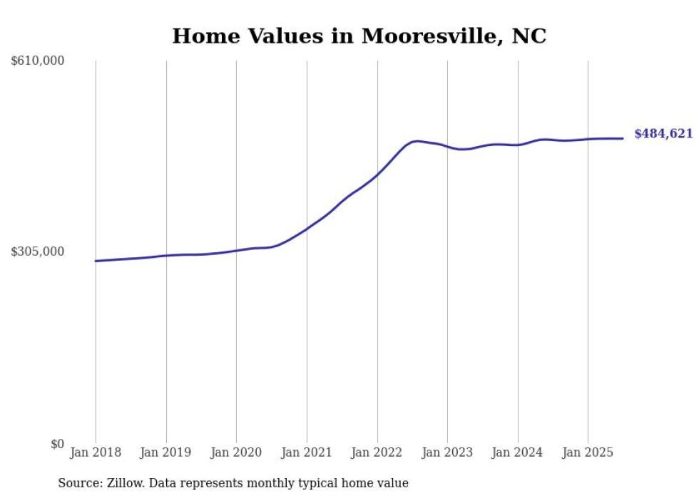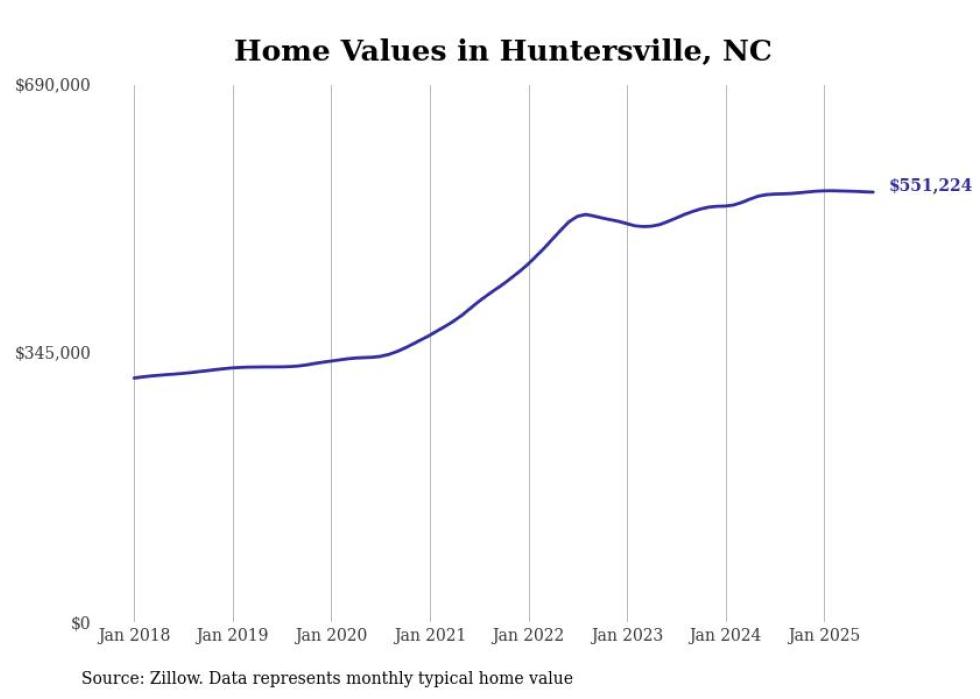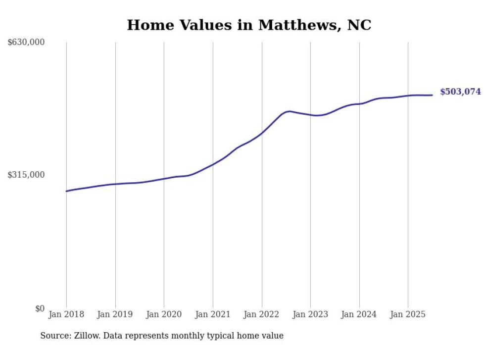Stacker compiled a list of cities with the most expensive homes in the Charlotte metro area using data from Zillow. Charts show the monthly typical home value since January 2018. Data was available for 86 cities and towns.