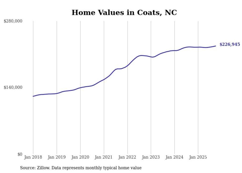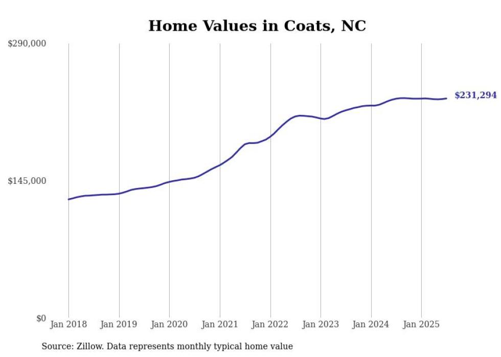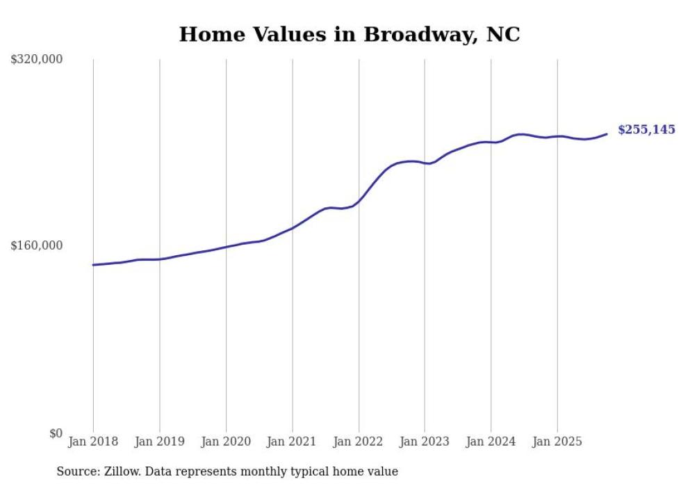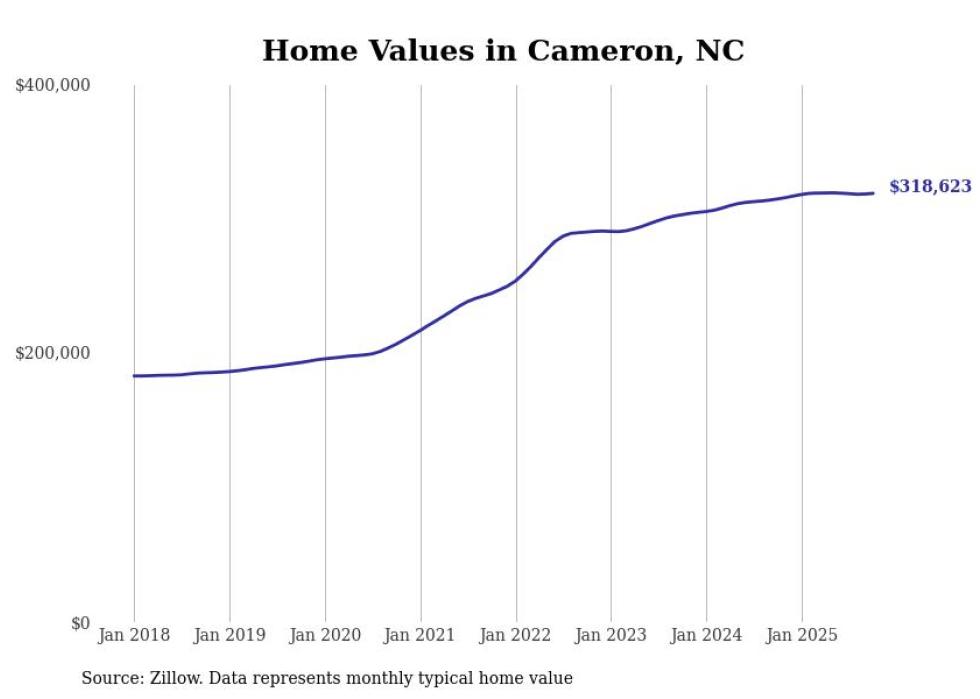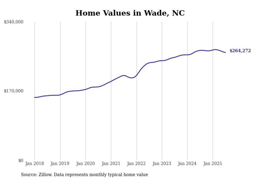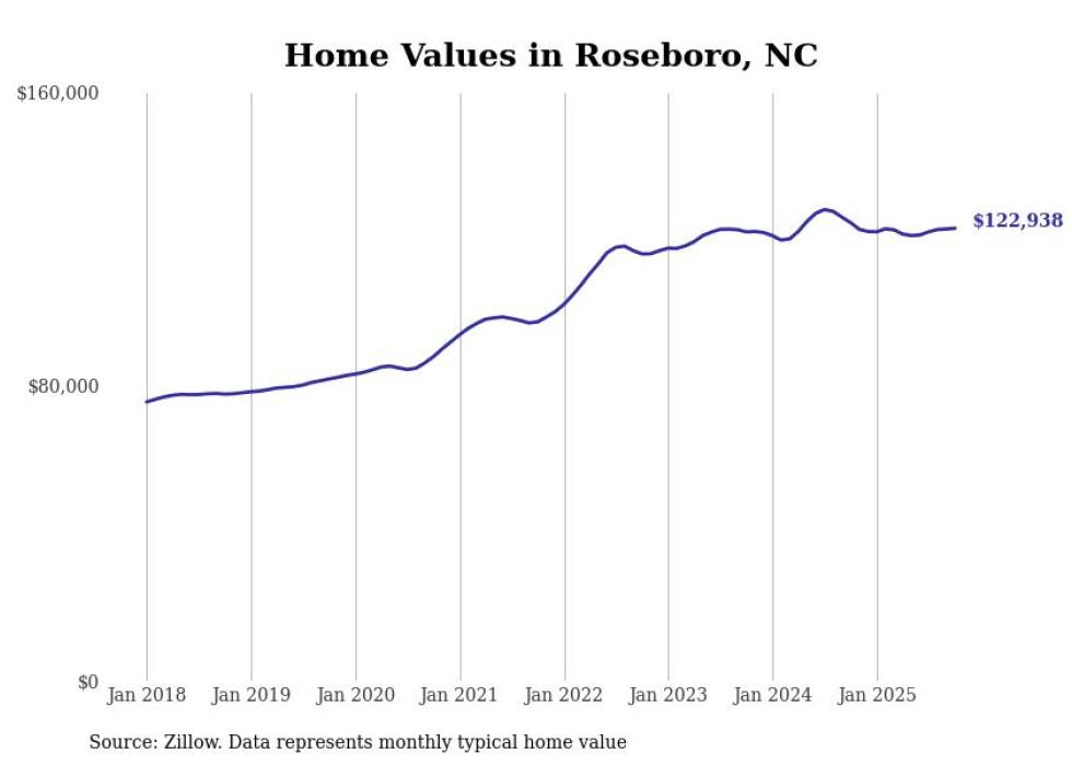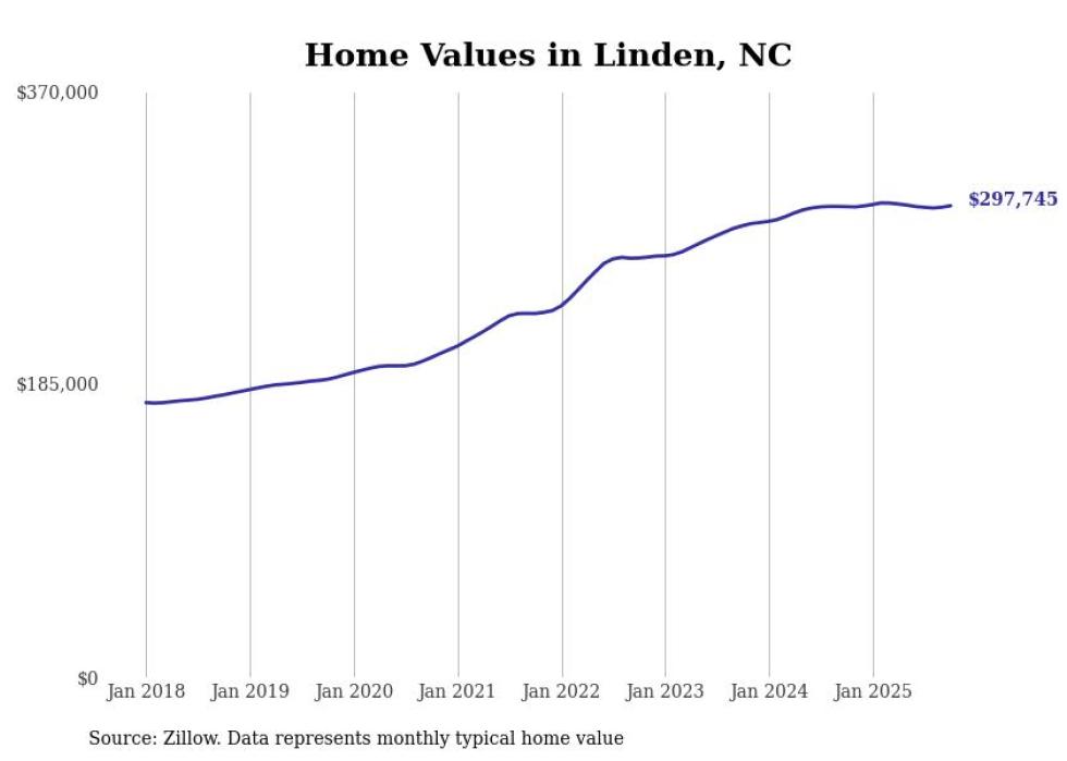 Stacker compiled a list of cities with the most expensive homes in the Fayetteville, North Carolina metro area using data from Zillow. Charts show the monthly typical home value since January 2018. All 20 cities and towns with data available were included in the list.