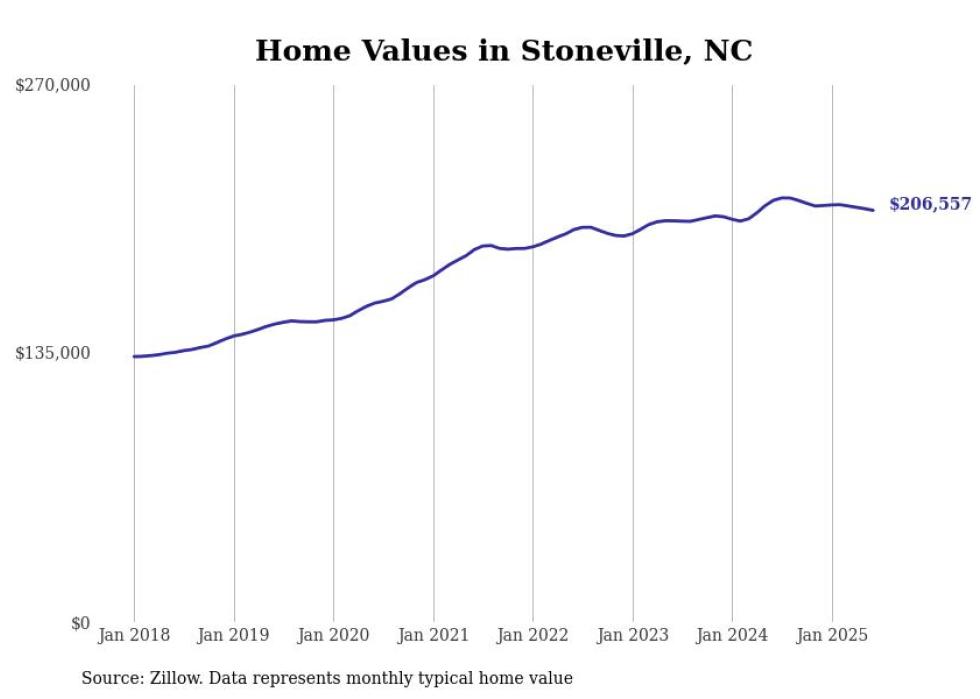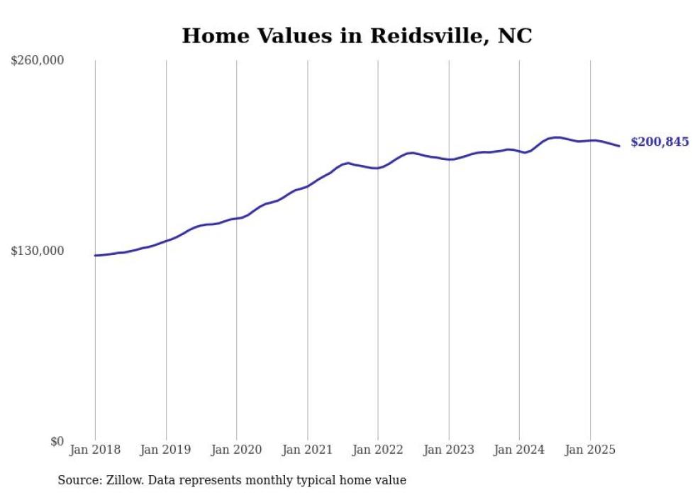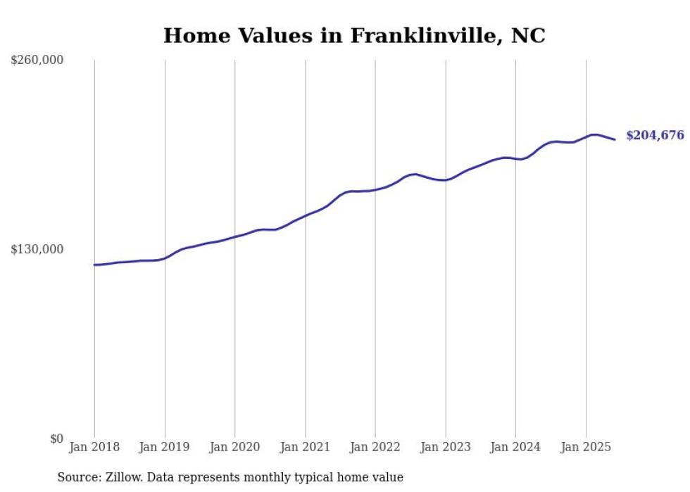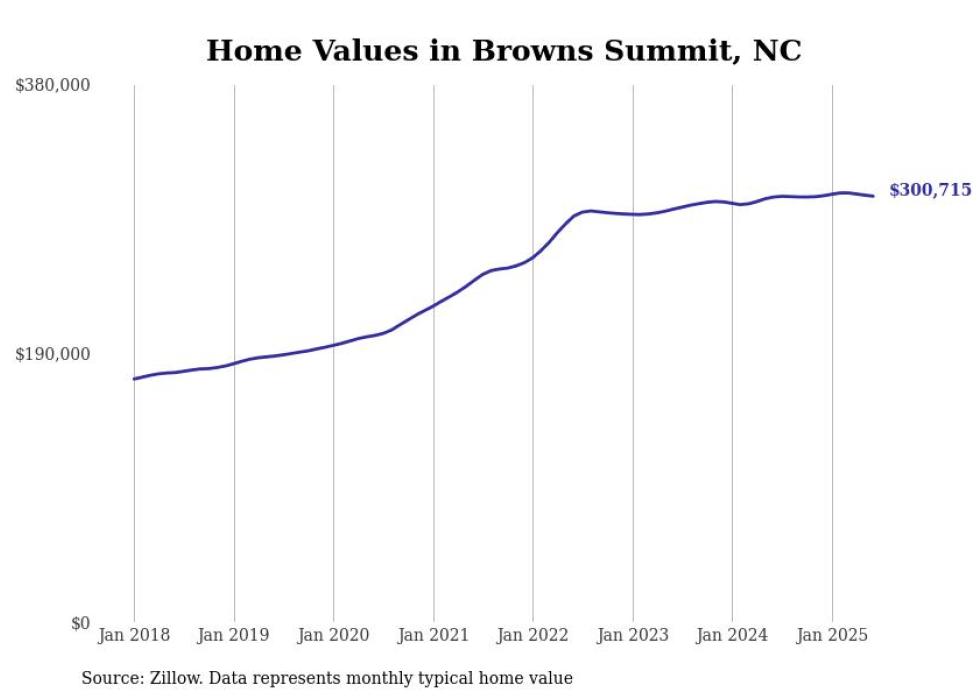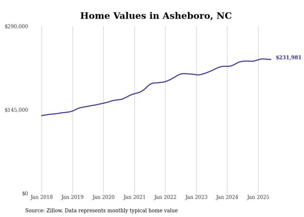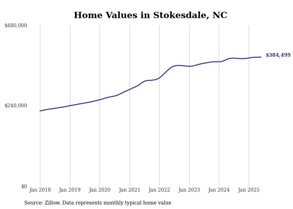 Stacker compiled a list of cities with the most expensive homes in the Greensboro-High Point, NC metro area using data from Zillow. Charts show the monthly typical home value since January 2018.