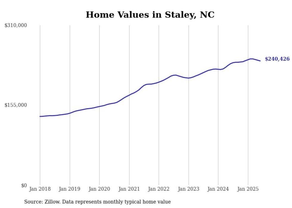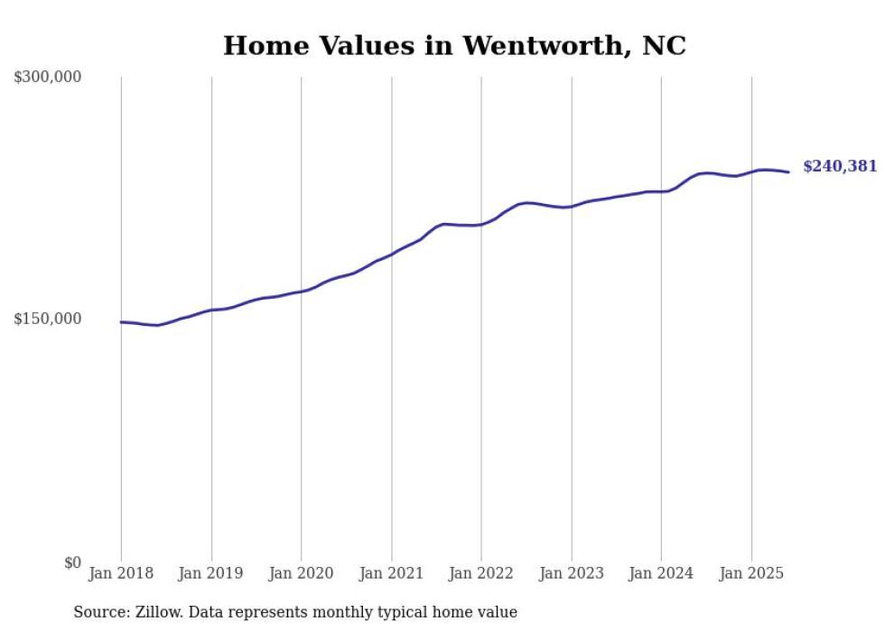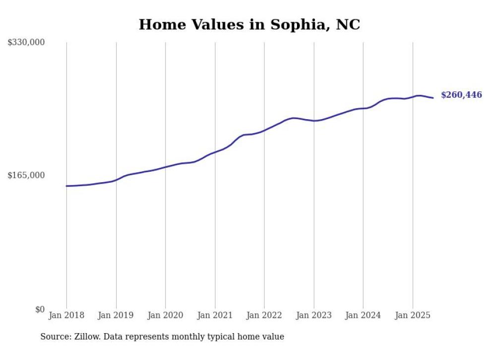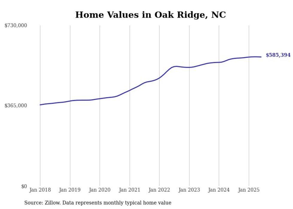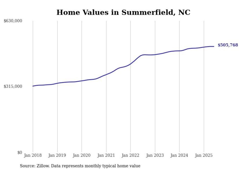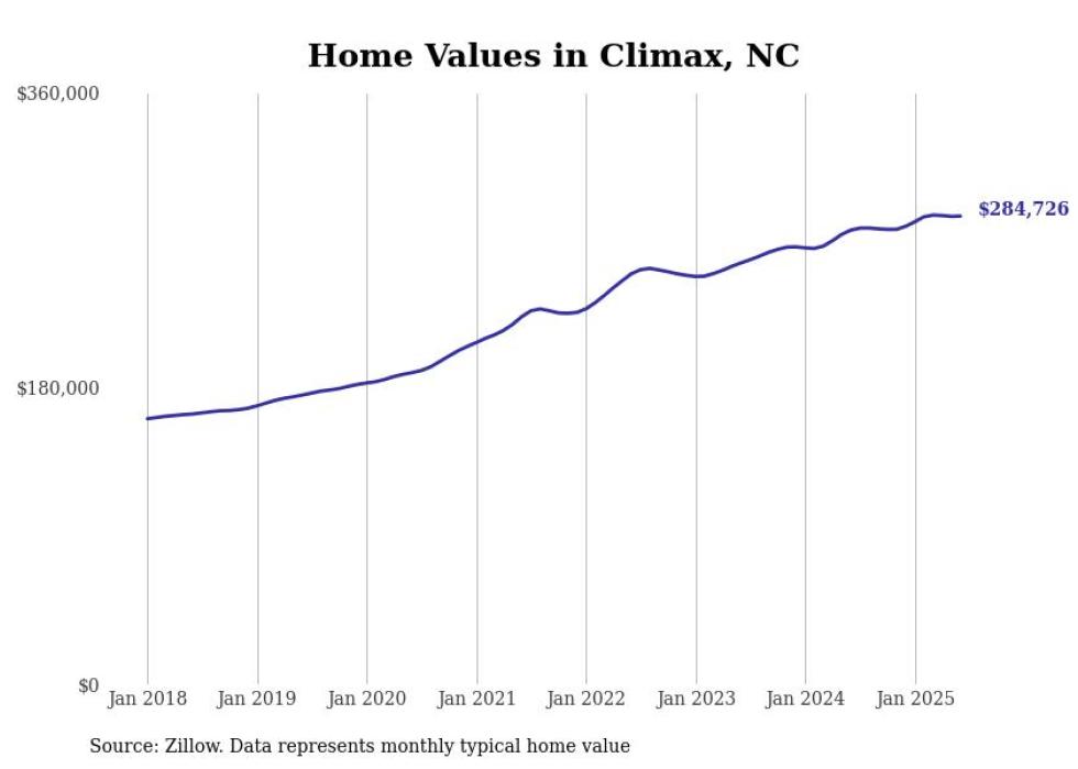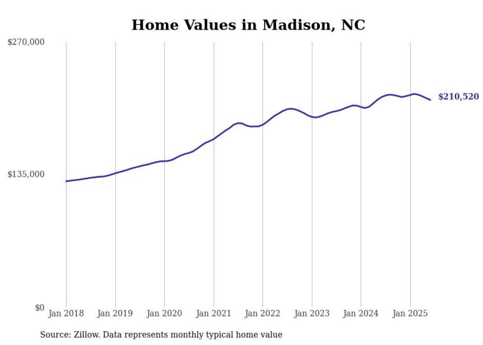 Stacker compiled a list of cities with the most expensive homes in the Greensboro-High Point, NC metro area using data from Zillow. Charts show the monthly typical home value since January 2018.