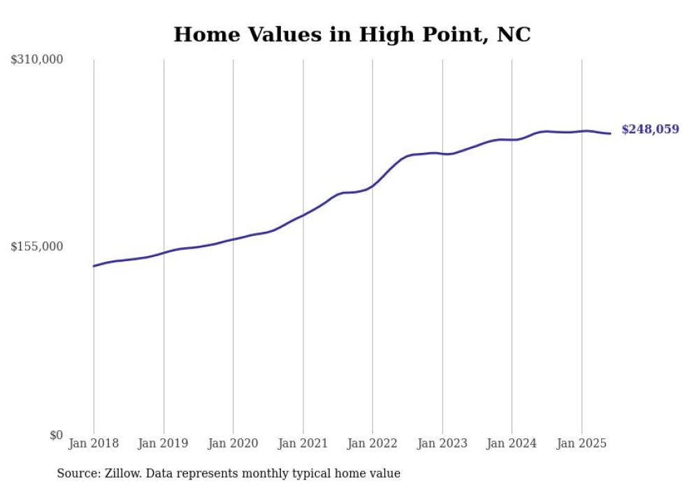 Cities with the fastest-growing home prices in the Greensboro metro area