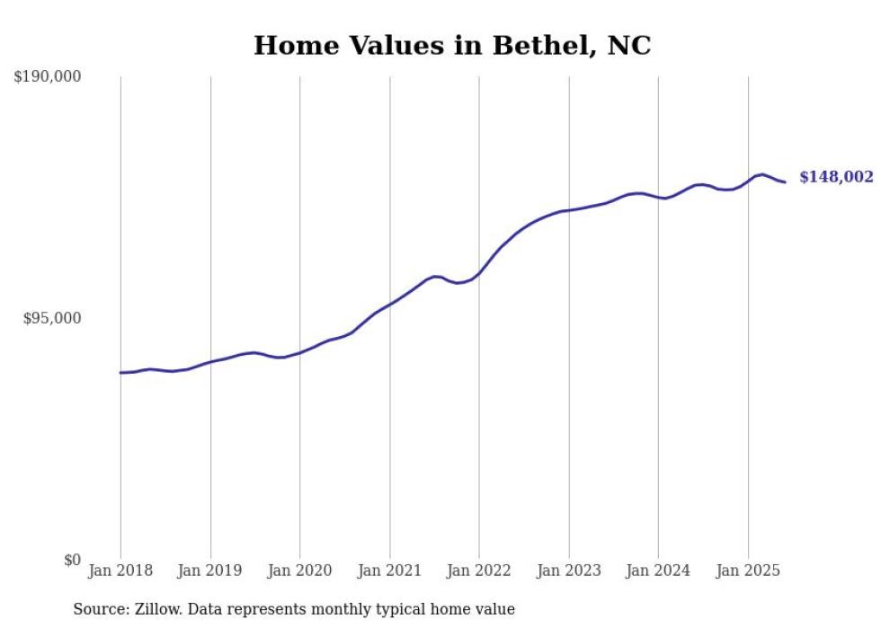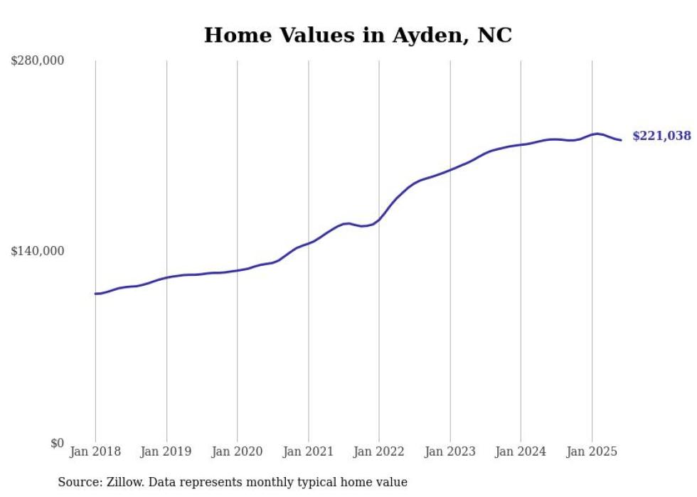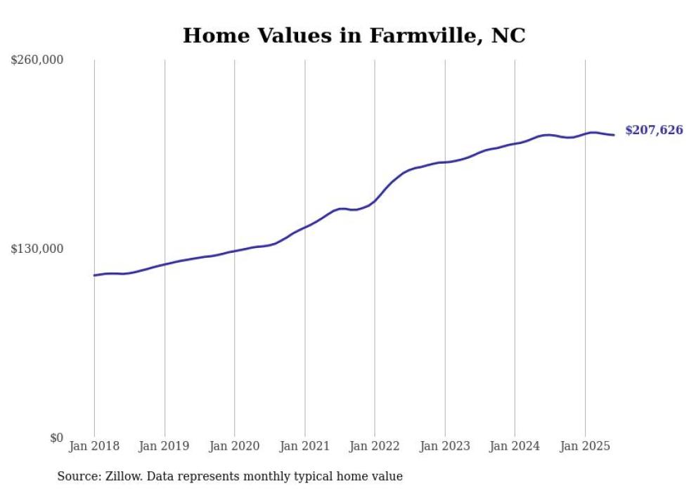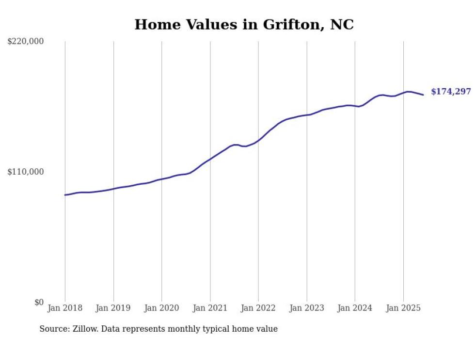 Stacker compiled a list of cities with the most expensive homes in the Greenville, NC metro area using data from Zillow. Charts show the monthly typical home value since January 2018.
