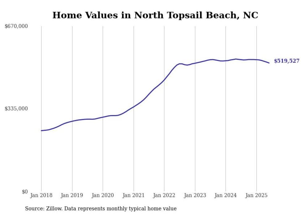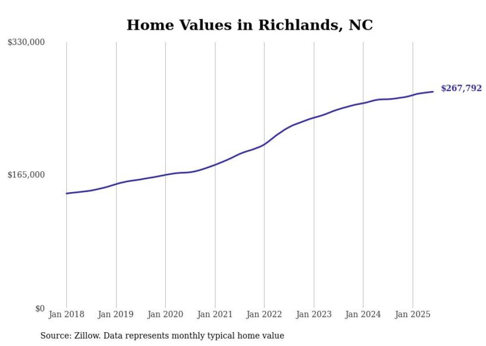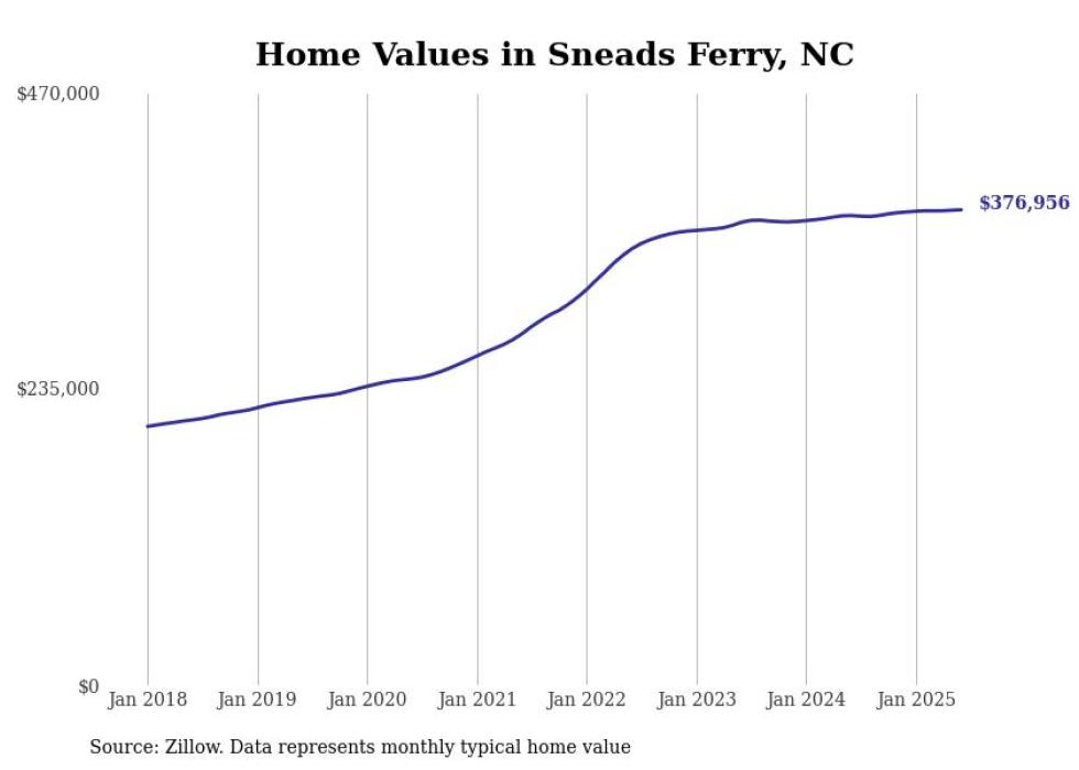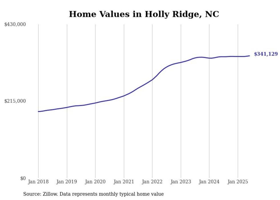 Cities with the fastest-growing home prices in the Jacksonville, North Carolina metro area