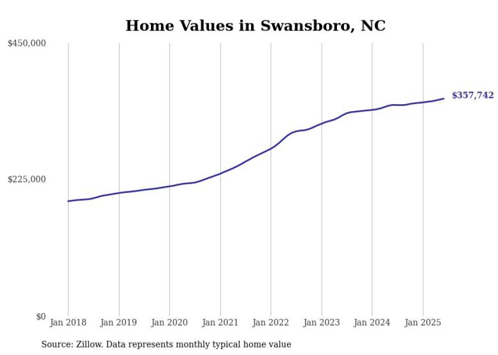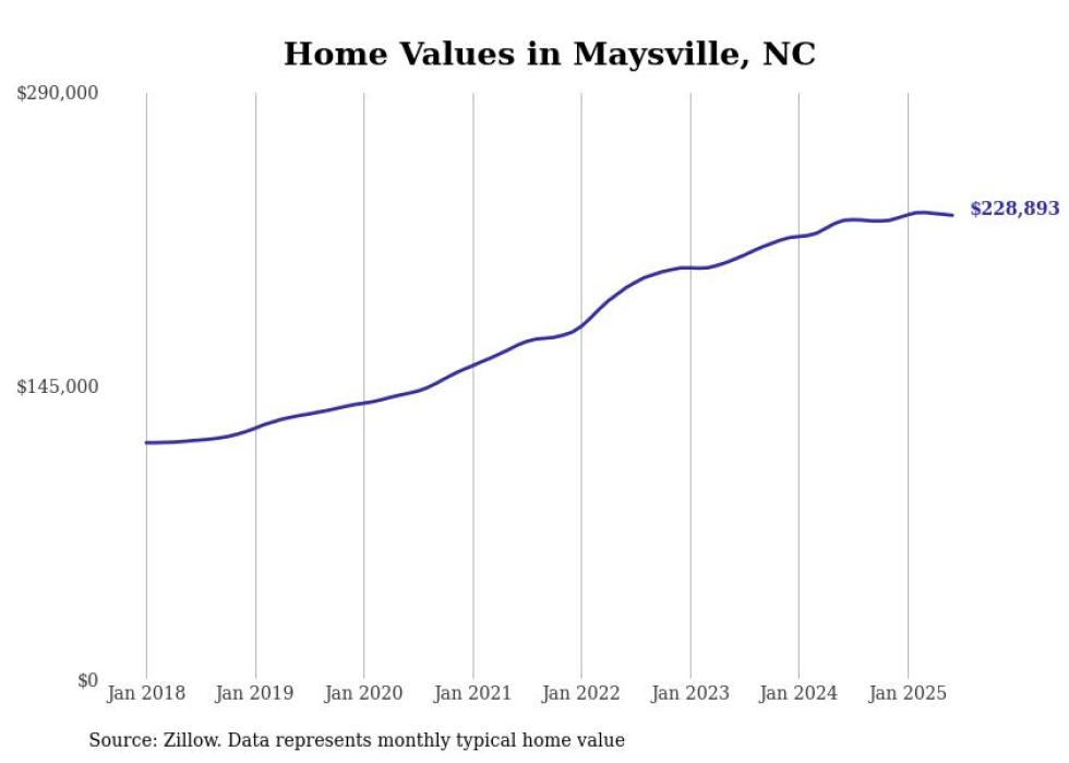 Stacker compiled a list of cities with the most expensive homes in the Jacksonville, NC metro area using data from Zillow. Charts show the monthly typical home value since January 2018.