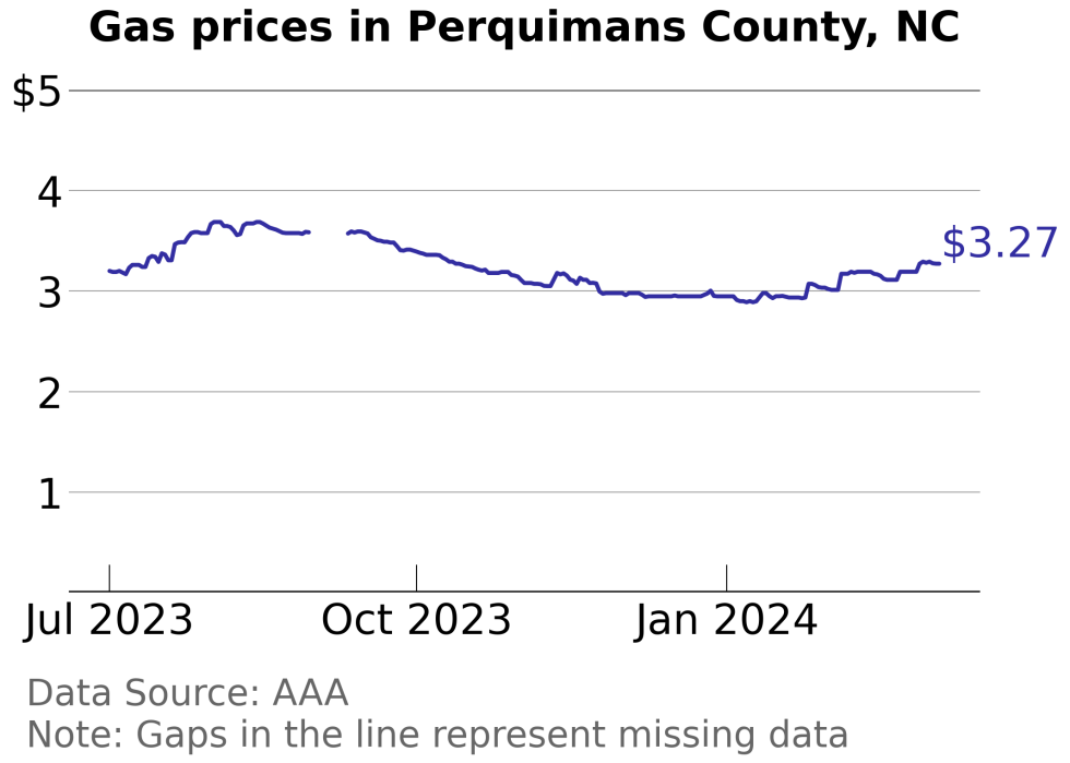 How gas prices have changed in Perquimans County, North Carolina in the last week