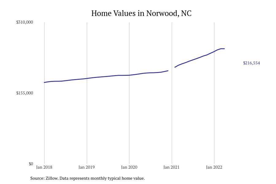 Stacker compiled a list of places with the most expensive homes in Stanly County, NC using data from Zillow. Places are ranked by the Zillow Home Values Index for all homes as of August 2022. The ZVHI represents a seasonally adjusted price for the middle market for all homes. All 4 cities and towns with data available were included in the list. Charts for each place show the monthly typical home value since January 2018.