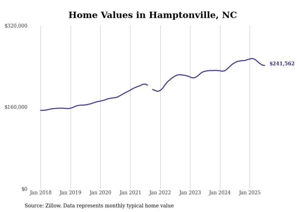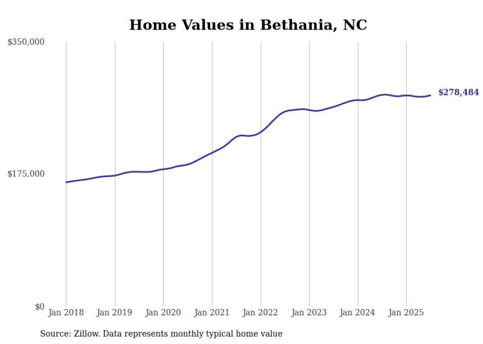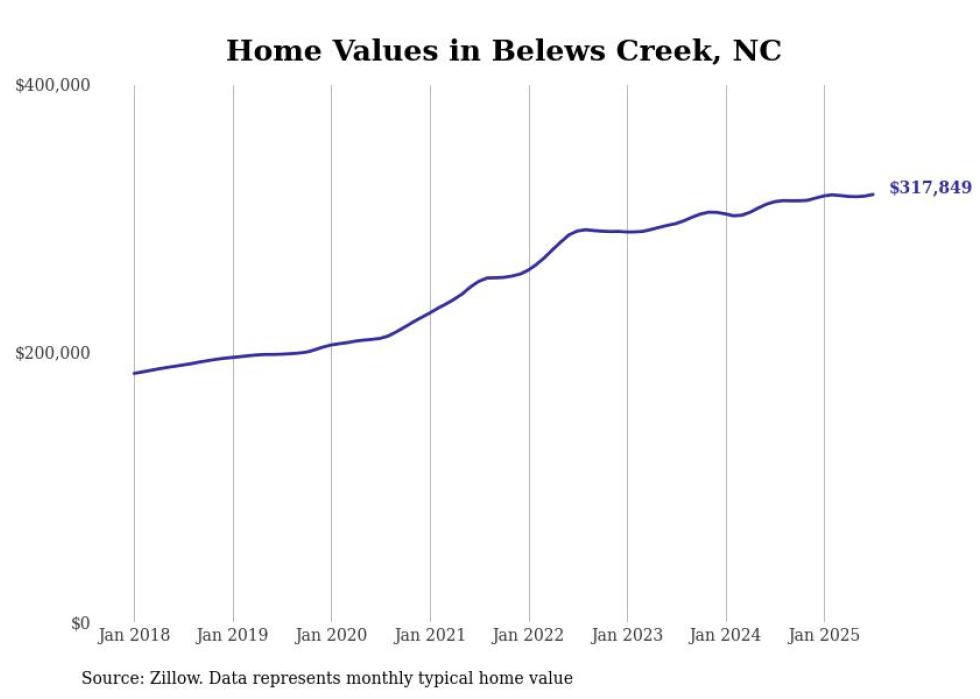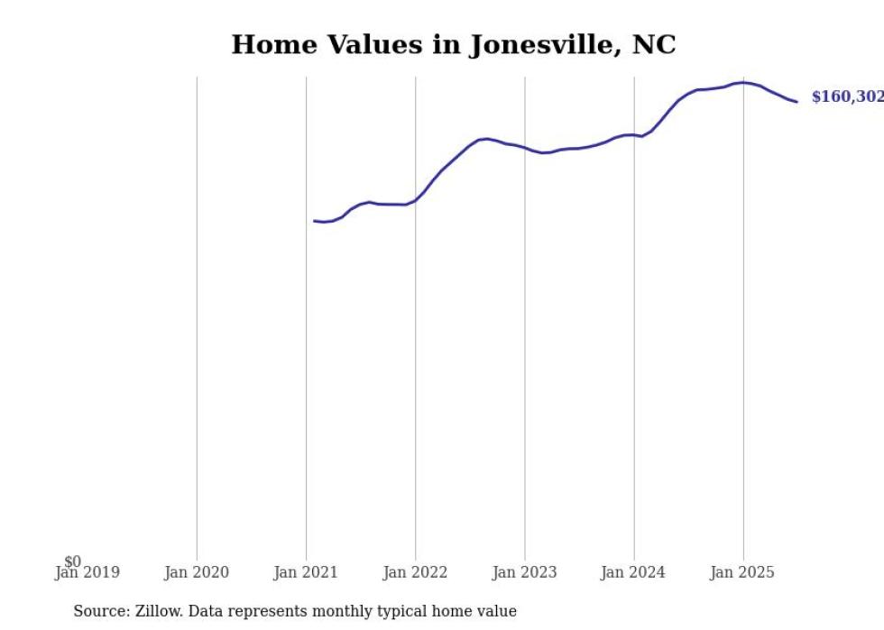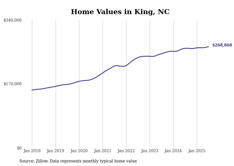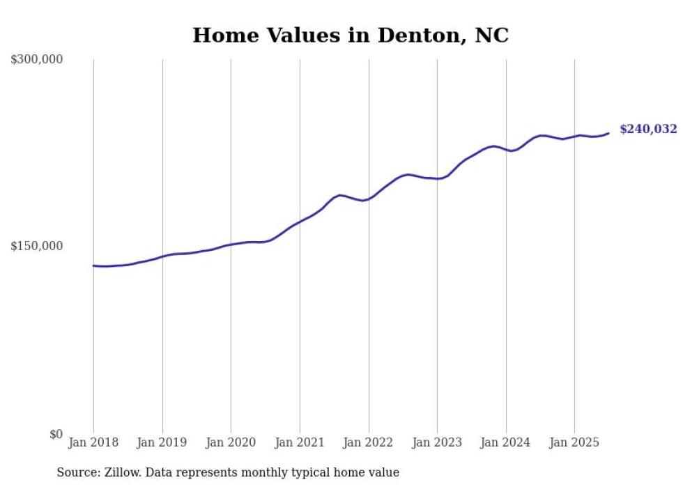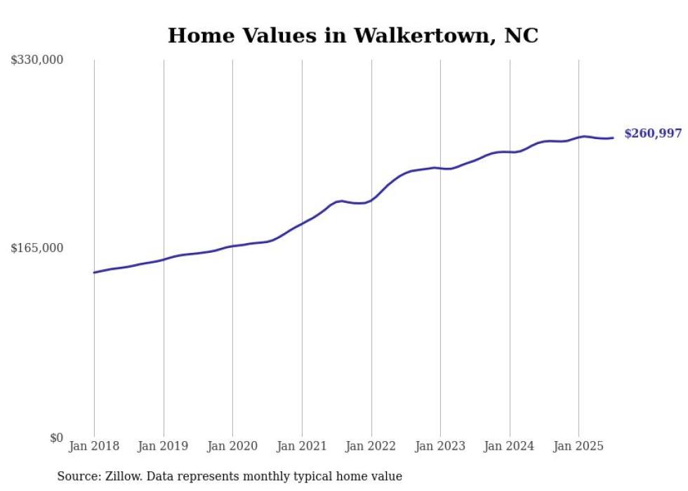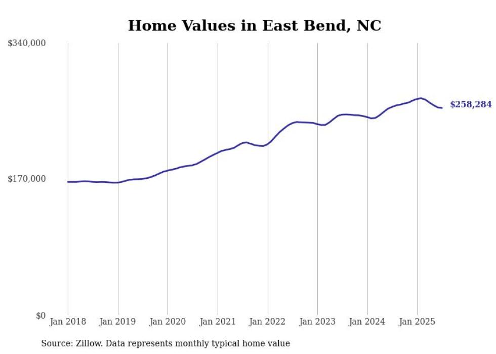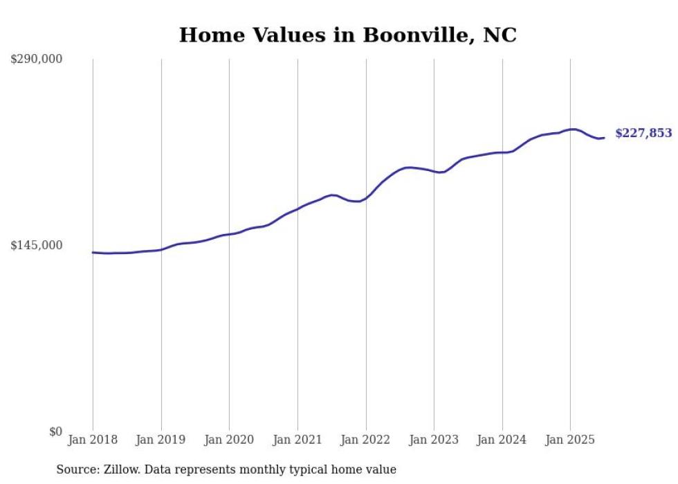 Stacker compiled a list of cities with the most expensive homes in the Winston-Salem metro area using data from Zillow. Charts show the monthly typical home value since January 2018. All 28 cities and towns with data available were included in the list.
