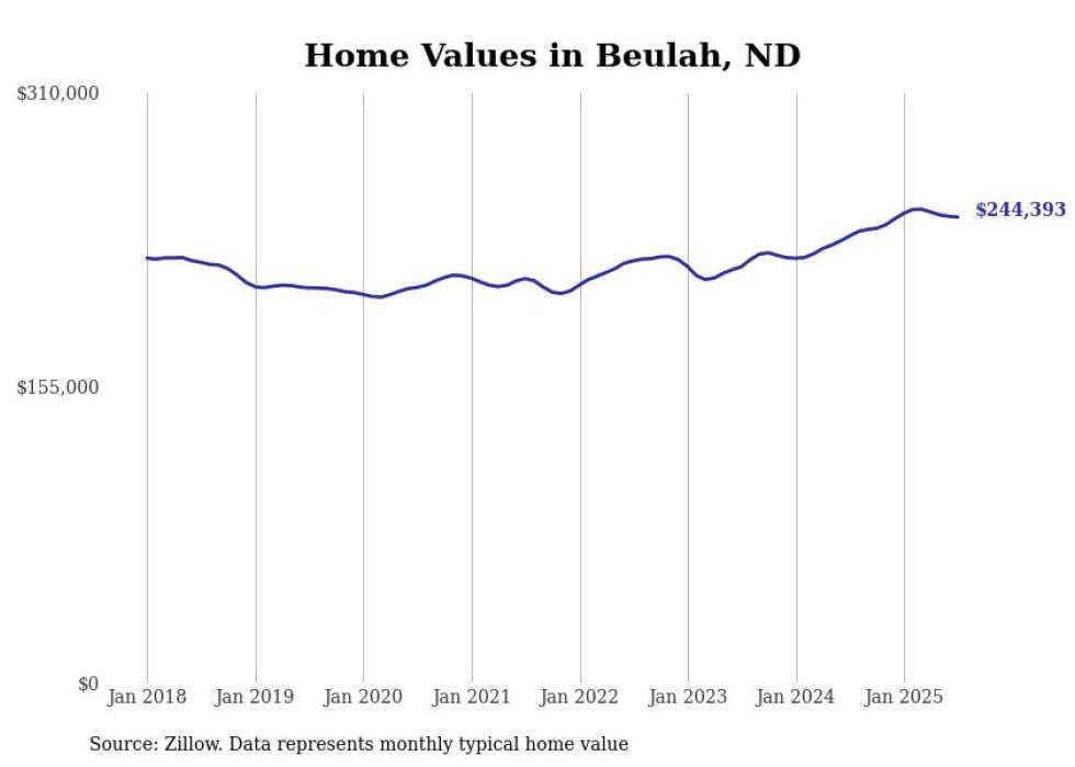 Stacker compiled a list of cities with the most expensive homes in the Bismarck metro area using data from Zillow. Charts show the monthly typical home value since January 2018. All 10 cities and towns with data available were included in the list.