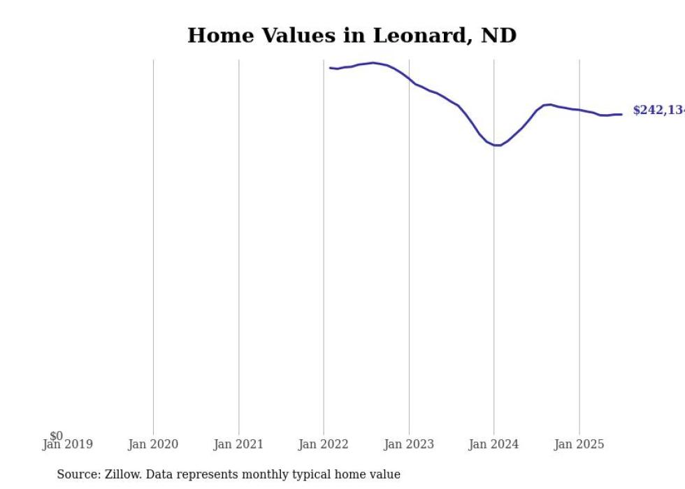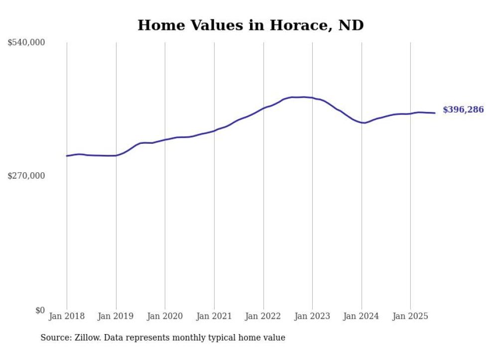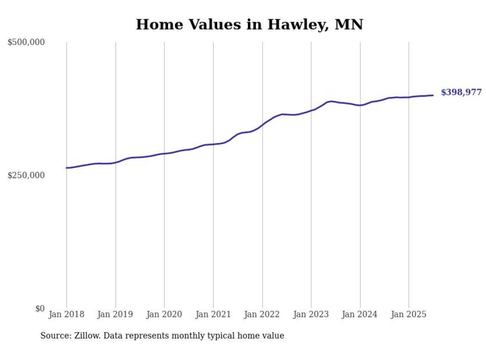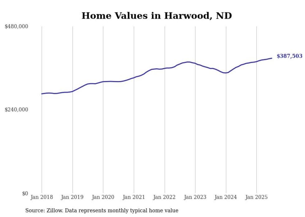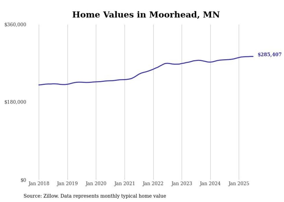 Stacker compiled a list of cities with the most expensive homes in the Fargo metro area using data from Zillow. Charts show the monthly typical home value since January 2018. All 24 cities and towns with data available were included in the list.