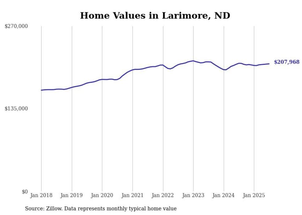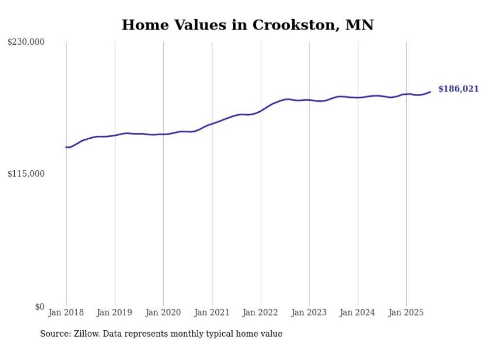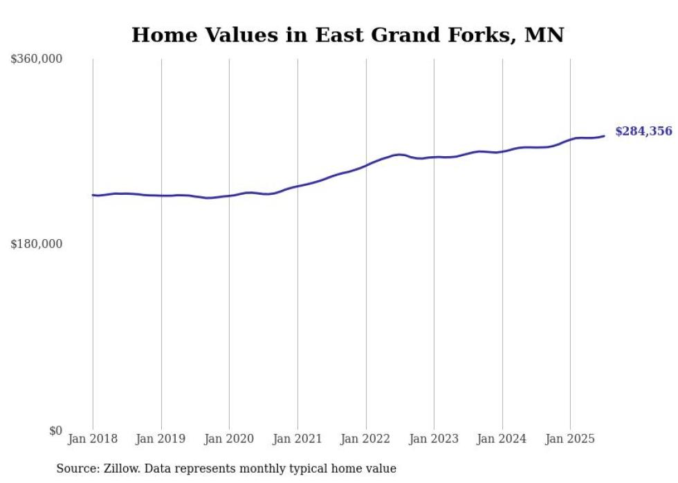 Stacker compiled a list of cities with the most expensive homes in the Grand Forks metro area using data from Zillow. Charts show the monthly typical home value since January 2018. All 27 cities and towns with data available were included in the list.