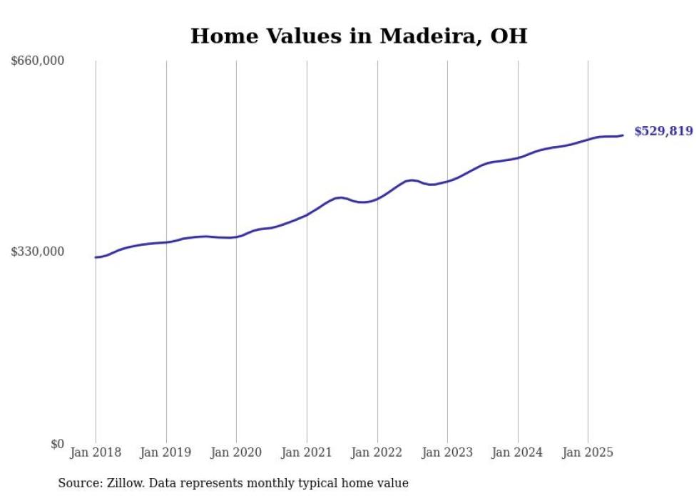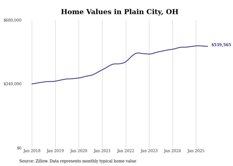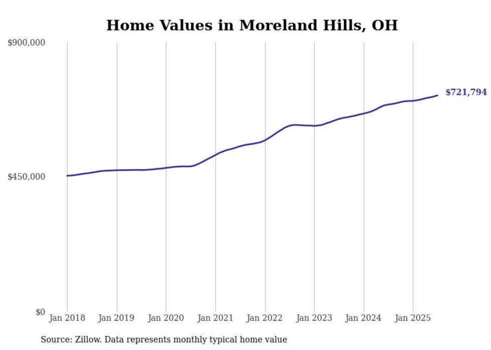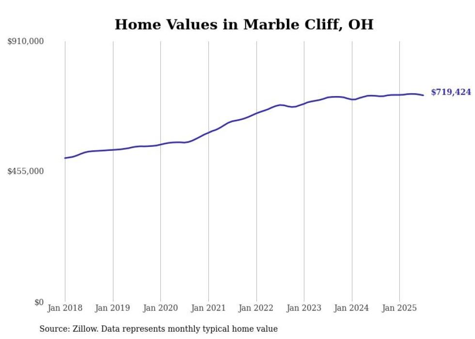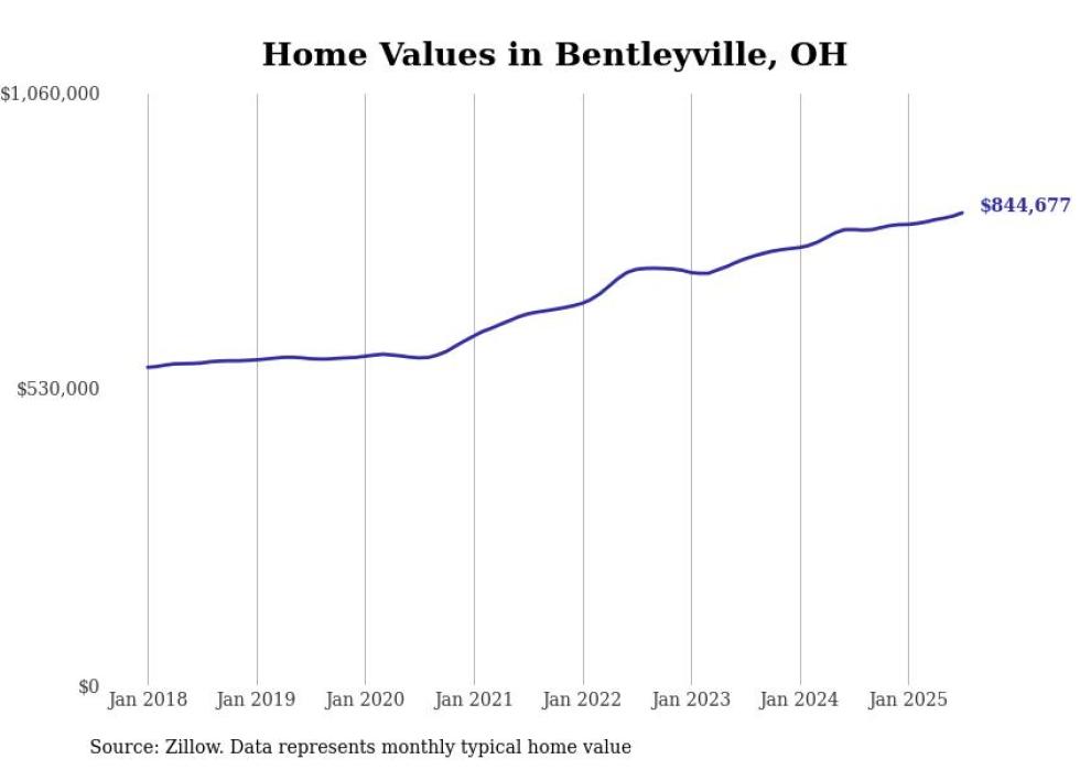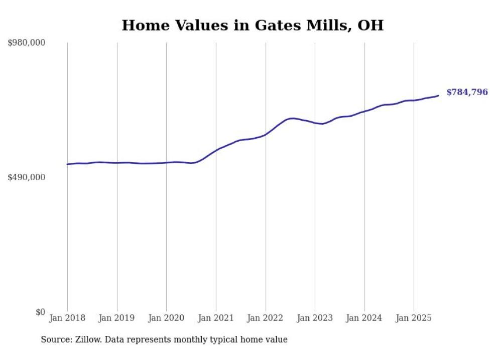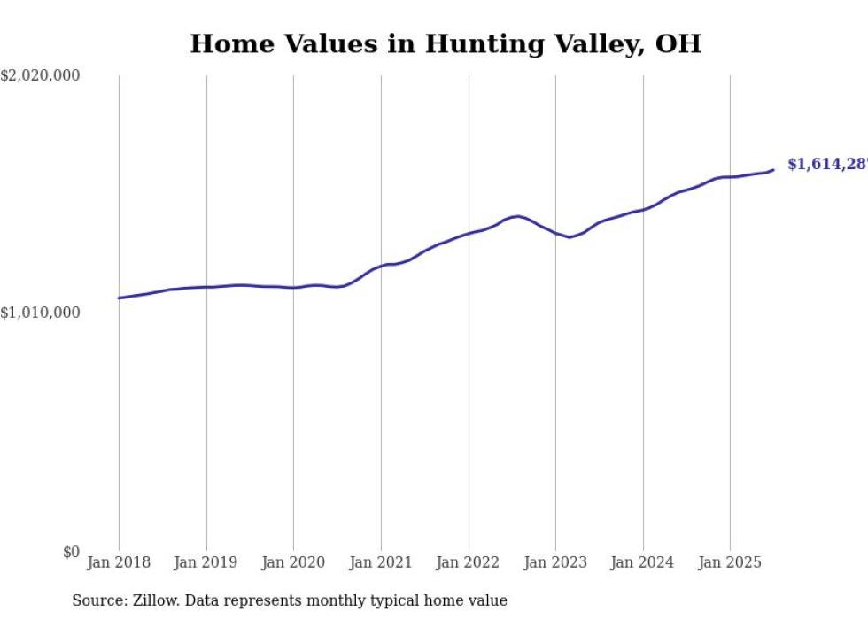 Stacker compiled a list of cities with the most expensive homes in Ohio using data from Zillow. Cities are ranked by the Zillow Home Values Index for all homes as of July 2025. The charts in this story were created automatically using Matplotlib.