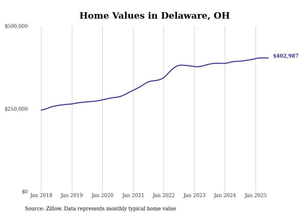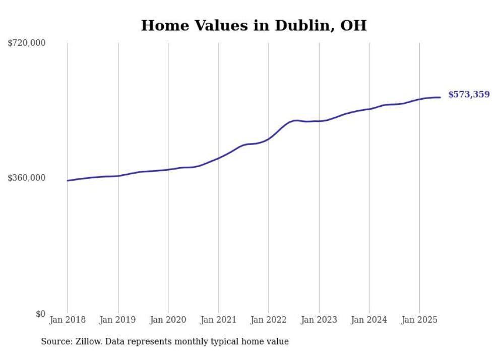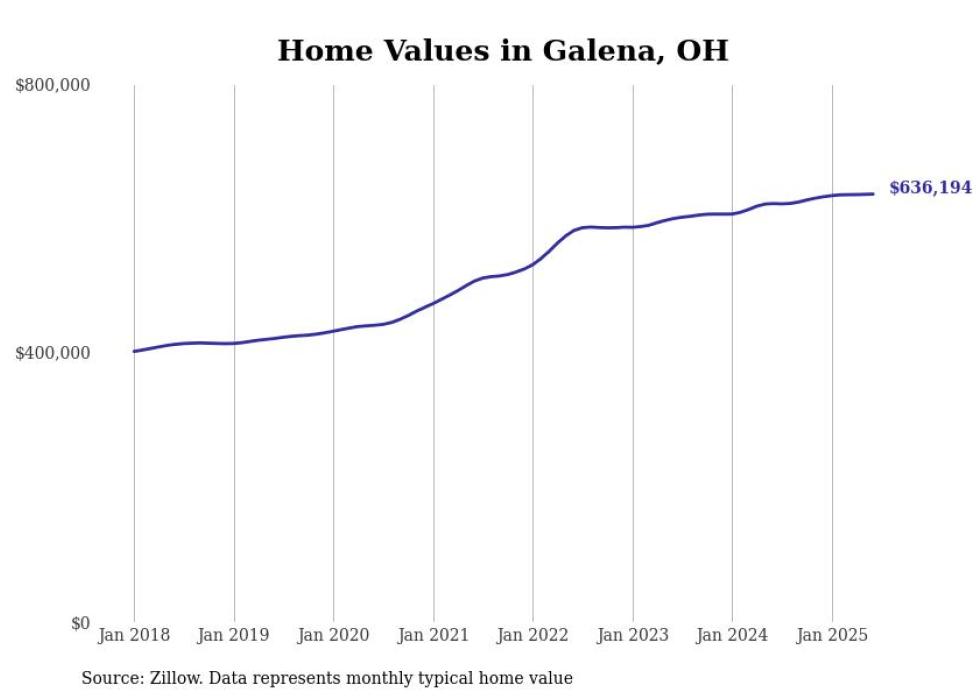 Stacker compiled a list of cities with the most expensive homes in the Columbus, OH metro area using data from Zillow. Charts show the monthly typical home value since January 2018.