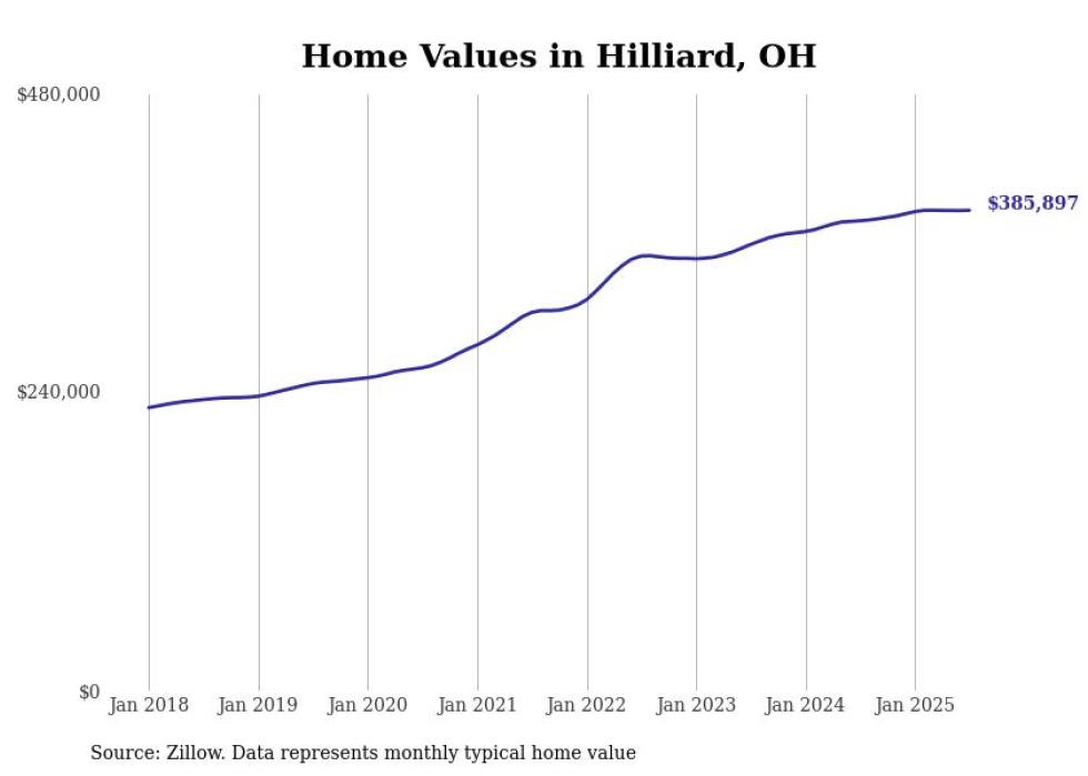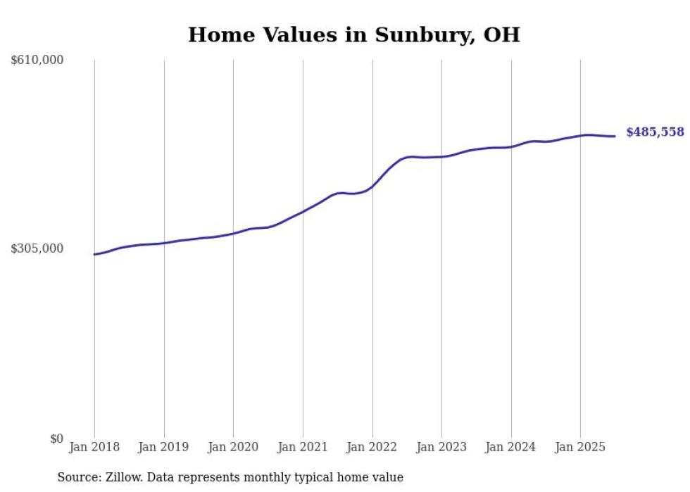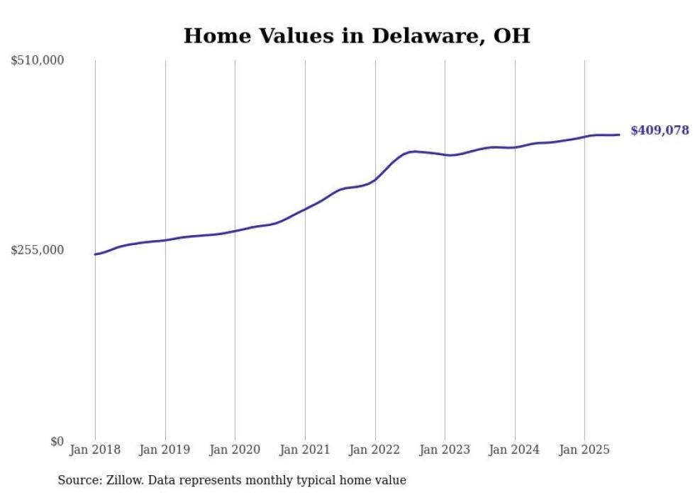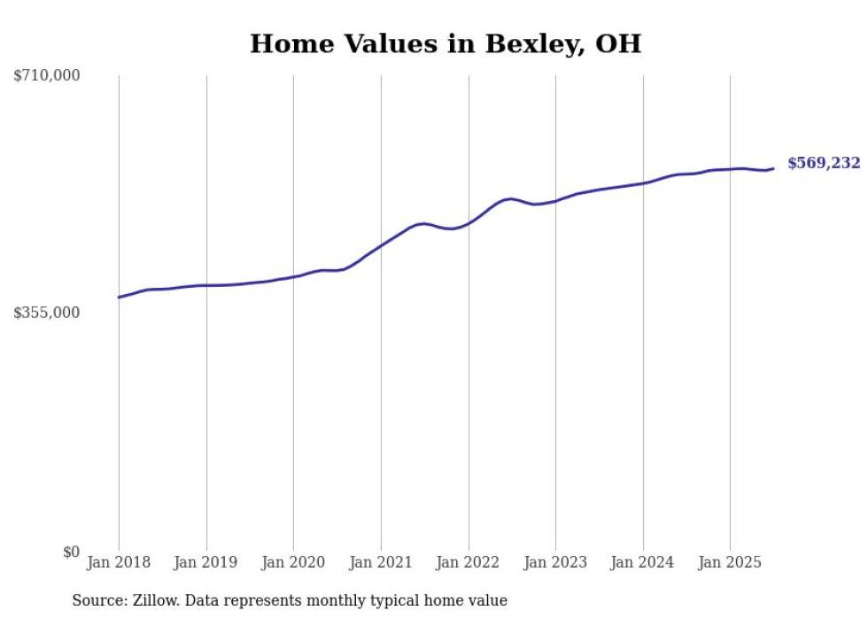 Stacker compiled a list of cities with the most expensive homes in the Columbus metro area using data from Zillow. Charts show the monthly typical home value since January 2018. Data was available for 98 cities and towns.