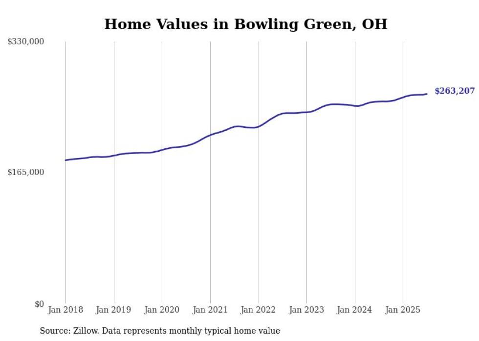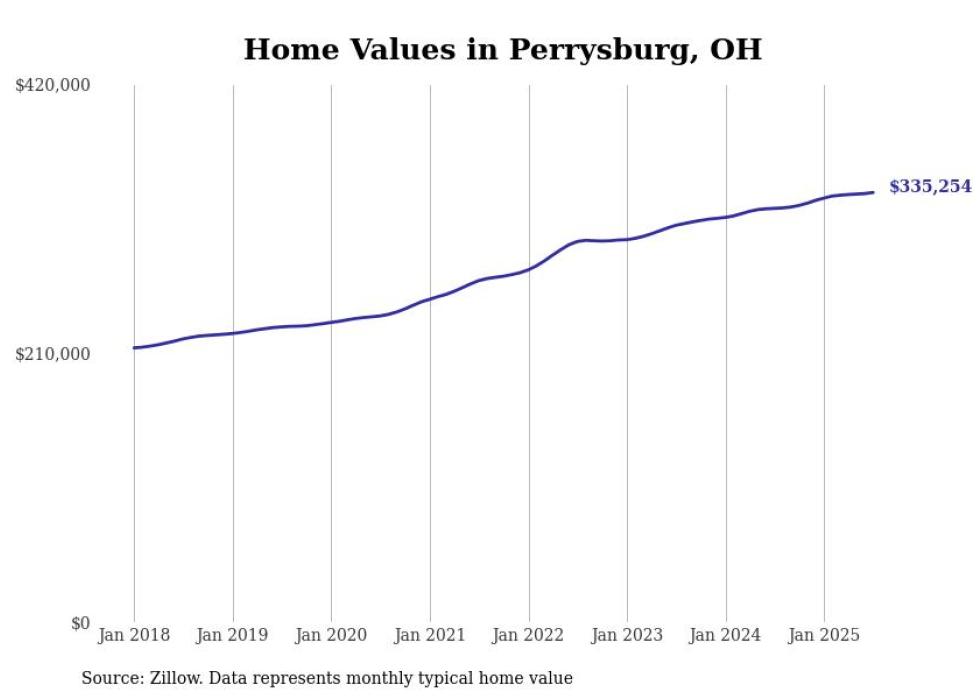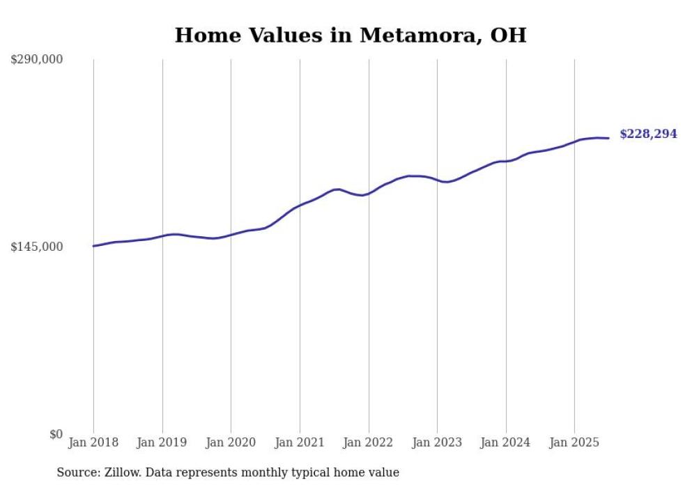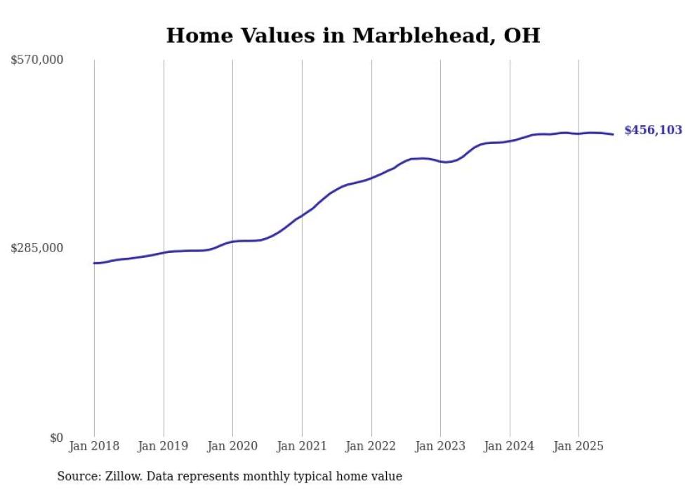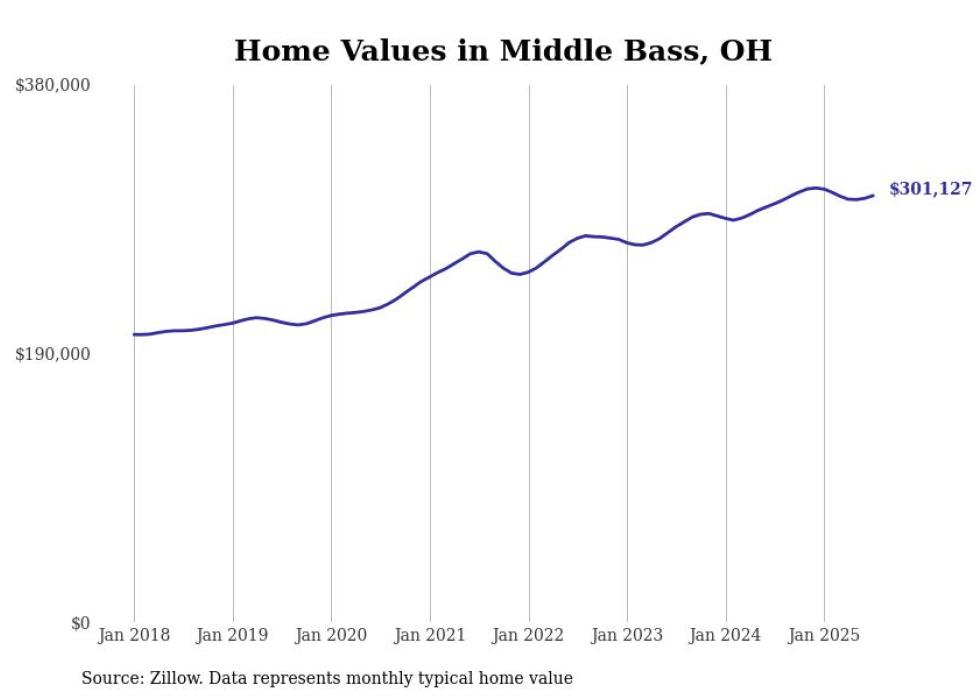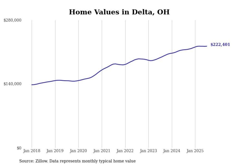 Stacker compiled a list of cities with the most expensive homes in the Toledo metro area using data from Zillow. Charts show the monthly typical home value since January 2018. Data was available for 49 cities and towns.