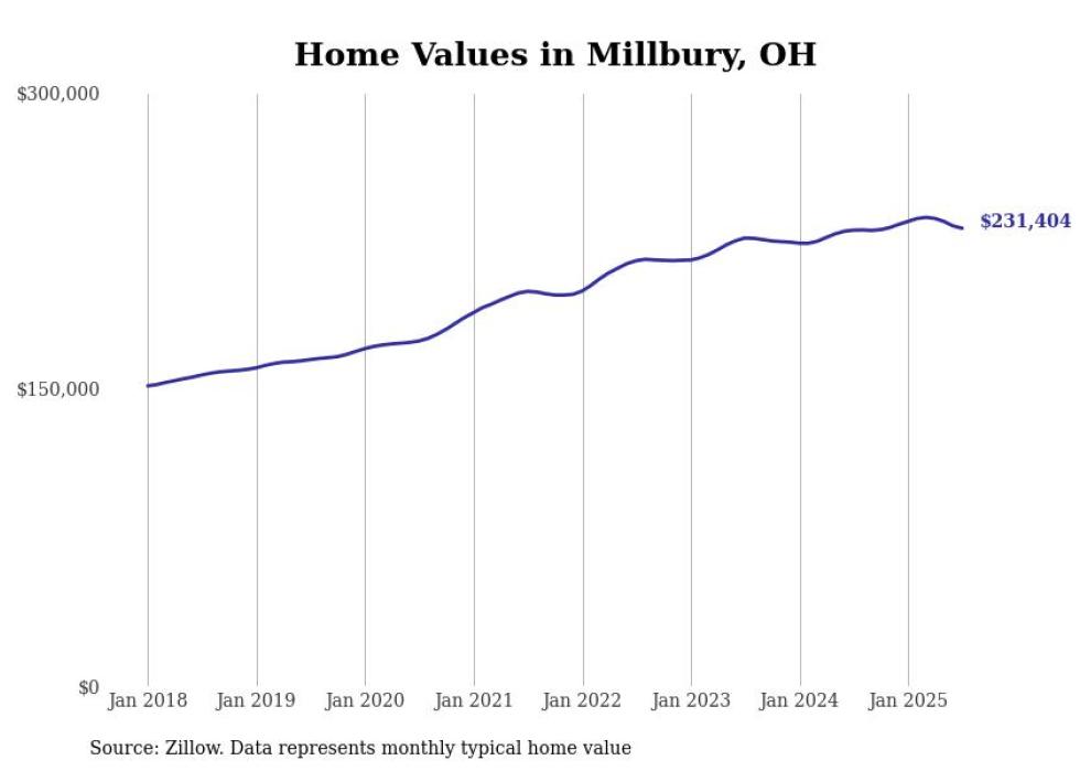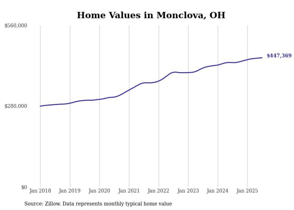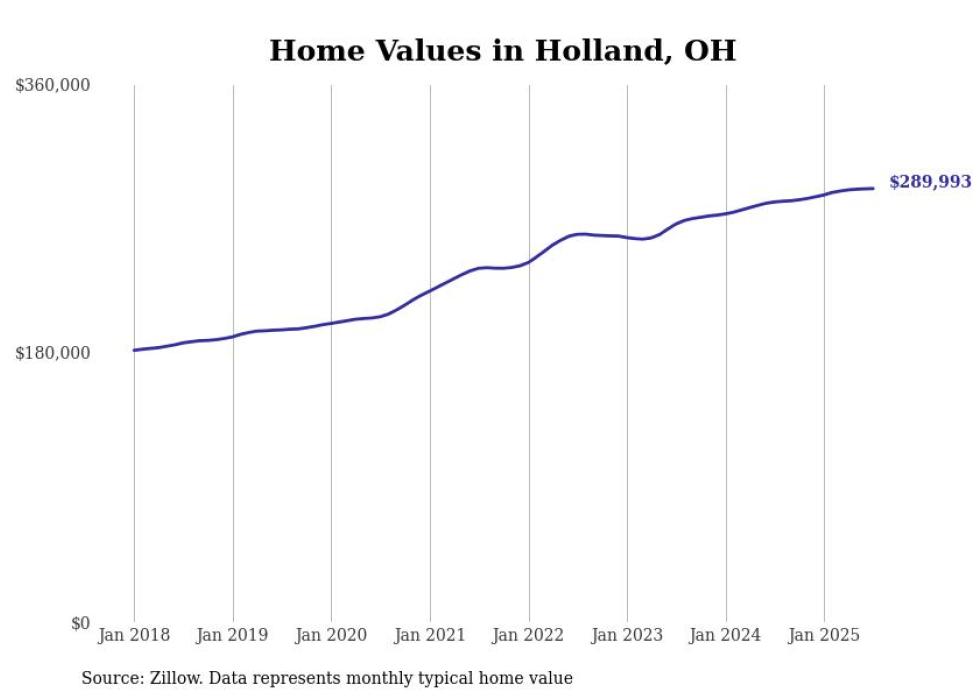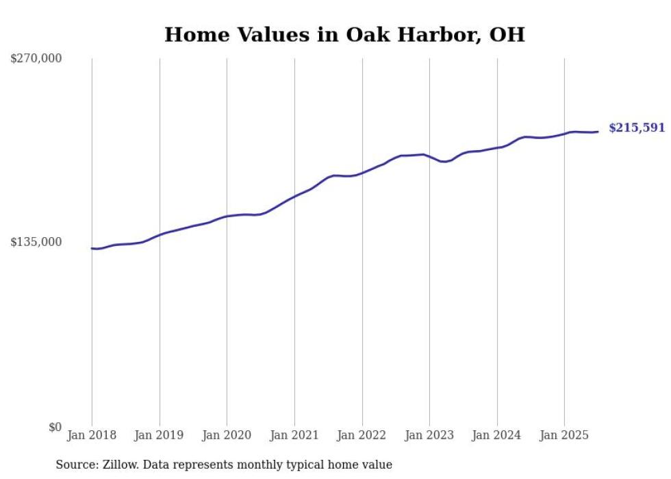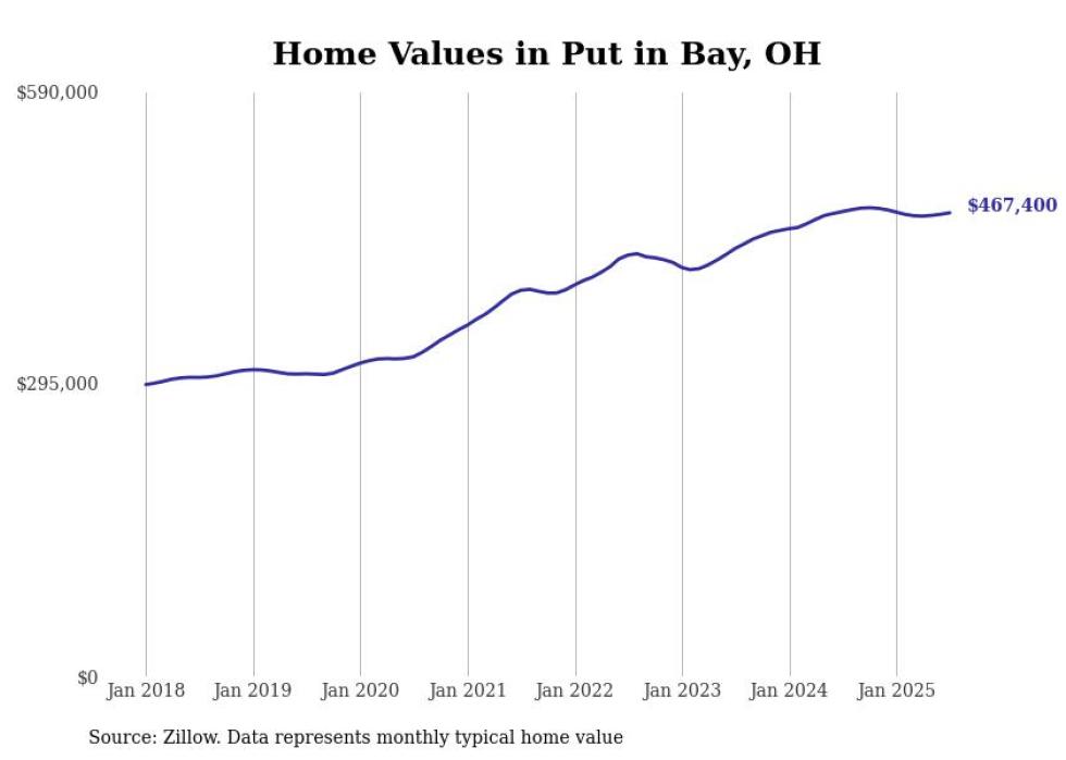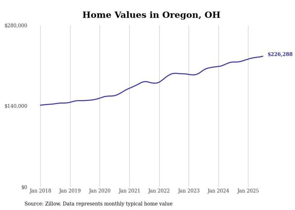 Stacker compiled a list of cities with the most expensive homes in the Toledo metro area using data from Zillow. Charts show the monthly typical home value since January 2018. Data was available for 49 cities and towns.
