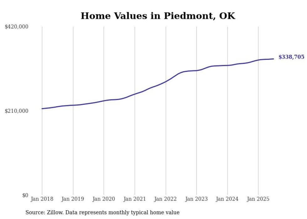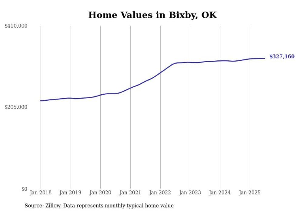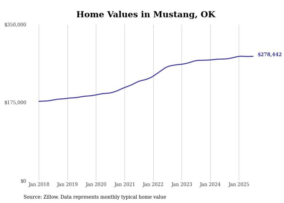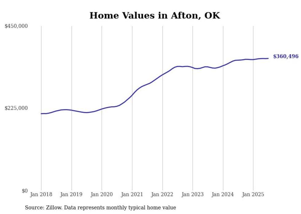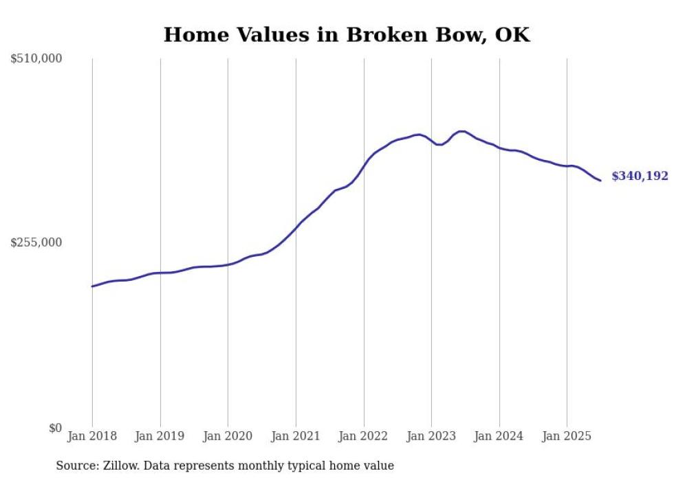 Stacker compiled a list of cities with the most expensive homes in Oklahoma using data from Zillow. Cities are ranked by the Zillow Home Values Index for all homes as of July 2025. The charts in this story were created automatically using Matplotlib.