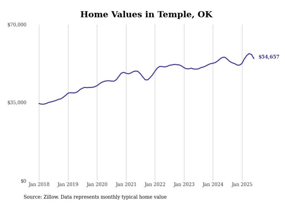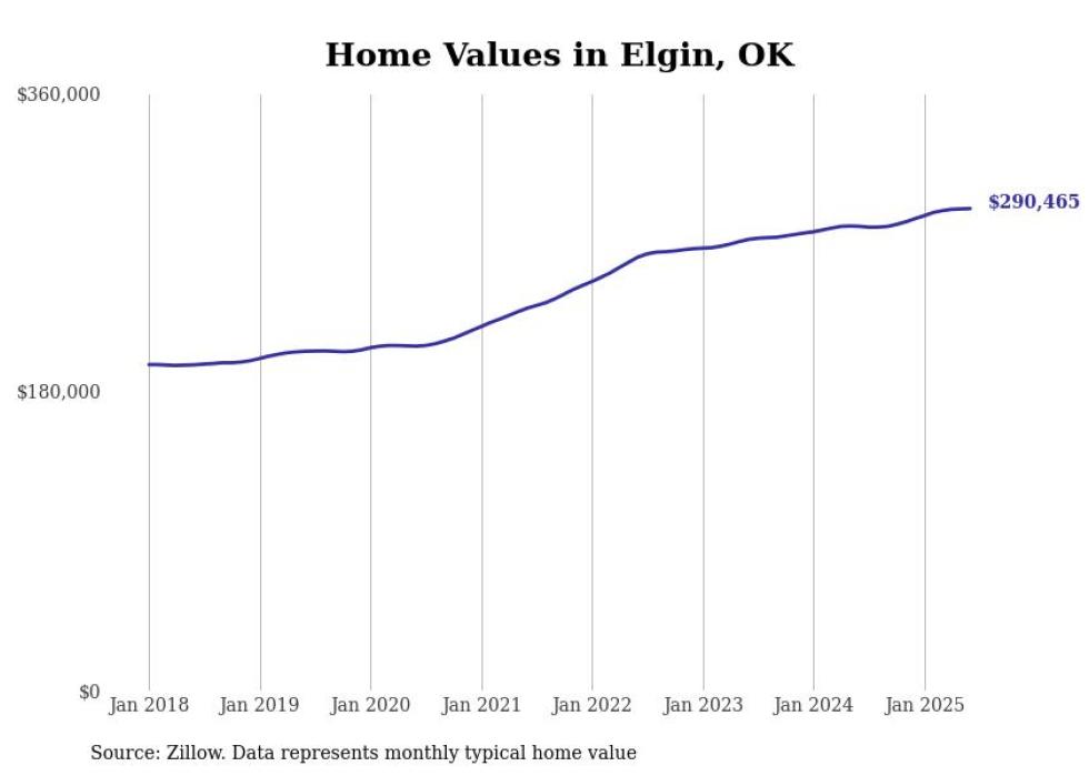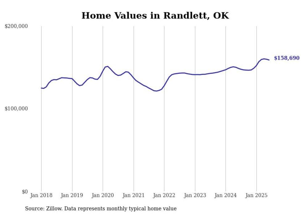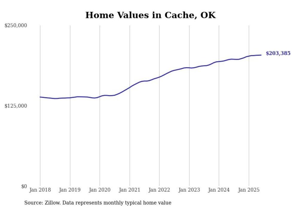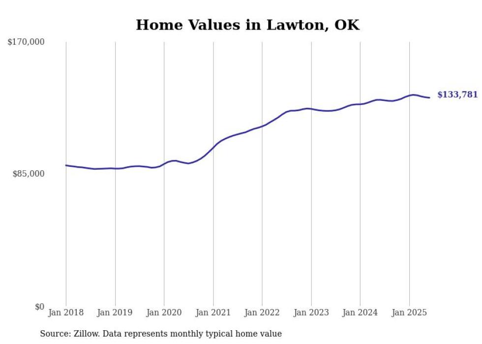 Stacker compiled a list of cities with the most expensive homes in the Lawton, OK metro area using data from Zillow. Charts show the monthly typical home value since January 2018.