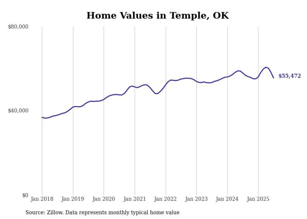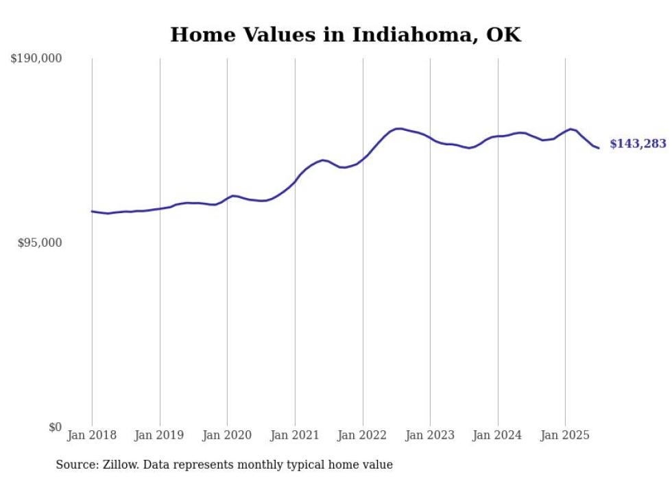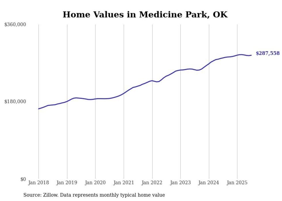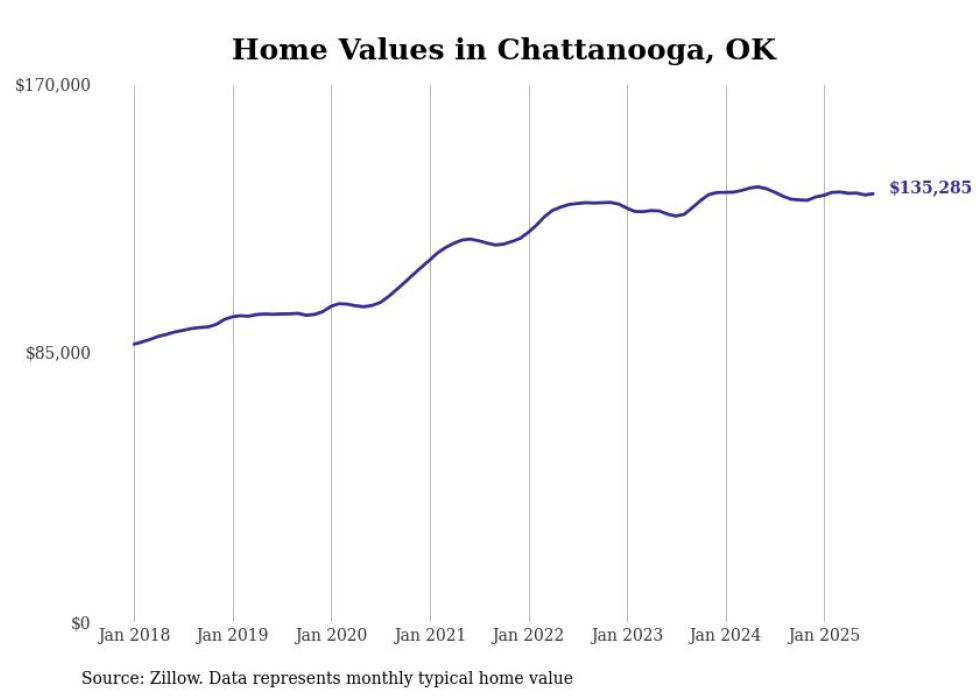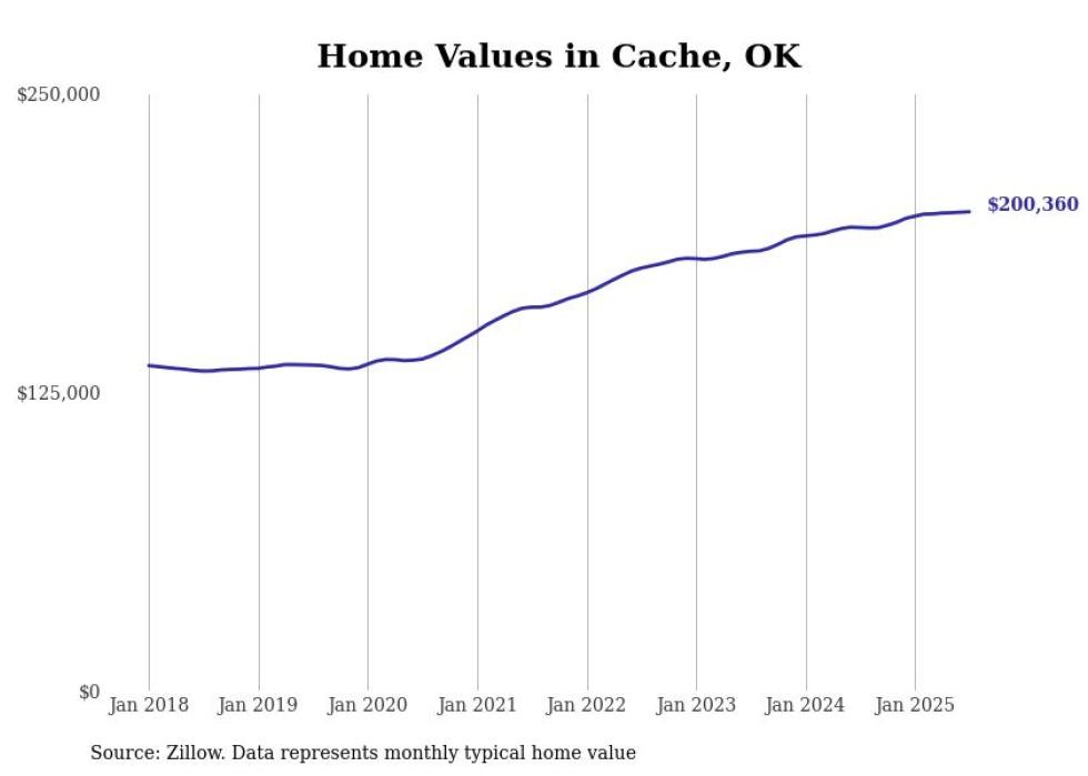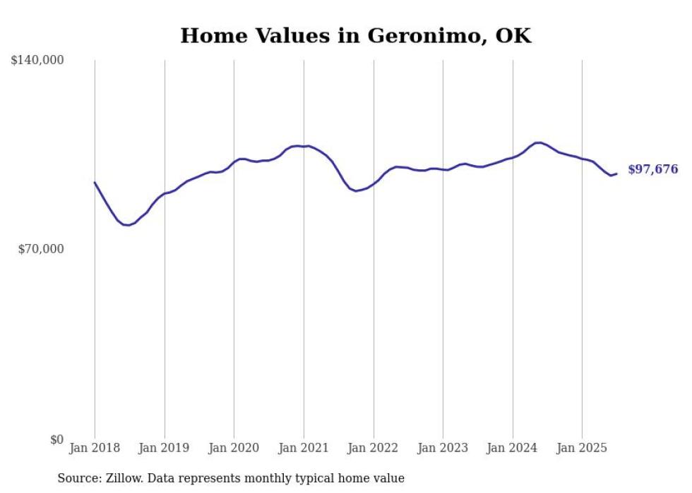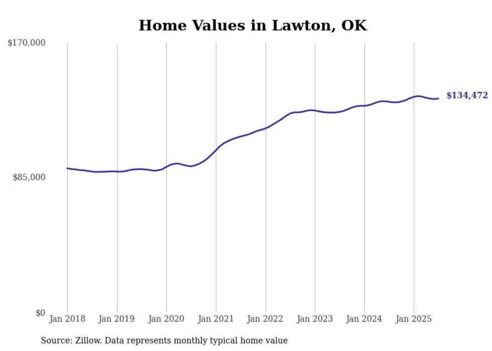 Stacker compiled a list of cities with the most expensive homes in the Lawton metro area using data from Zillow. Charts show the monthly typical home value since January 2018. All 13 cities and towns with data available were included in the list.